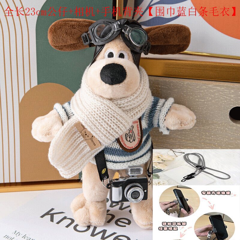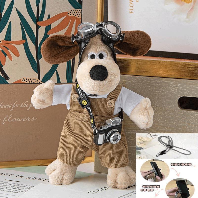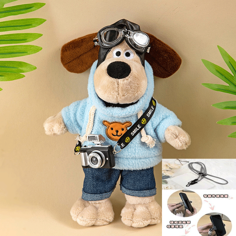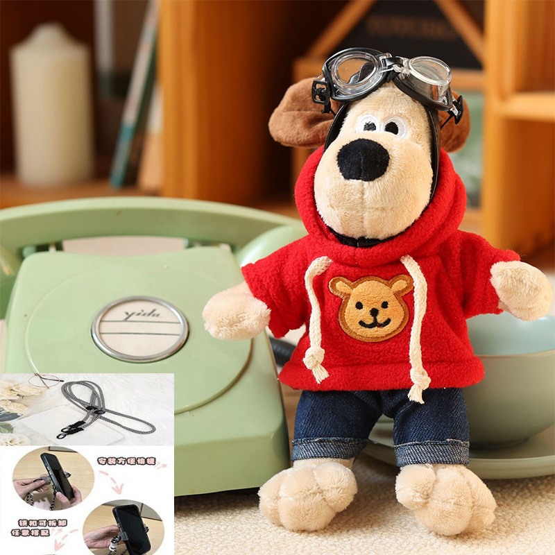 抖音爆款掌门狗手机背夹斜挎背带链条女款可爱卡通飞狗狗公仔挂件
