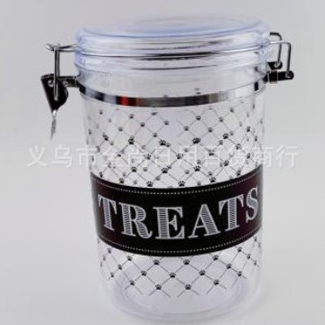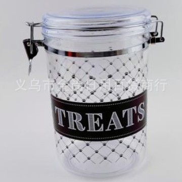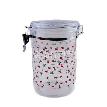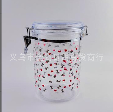 跨境印花厨房收纳密封盒塑料圆形铁扣密封罐储物罐