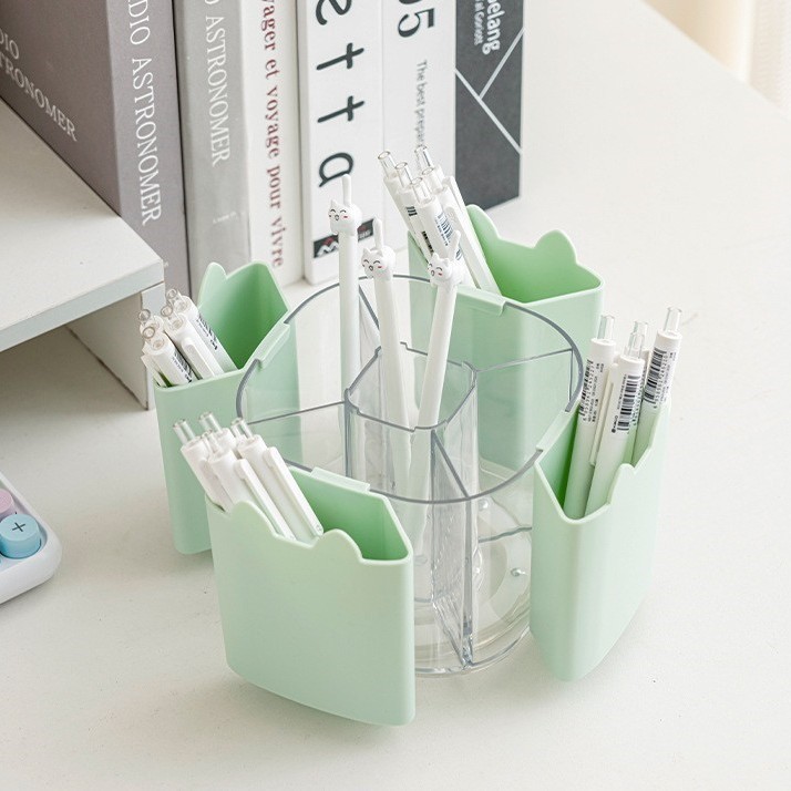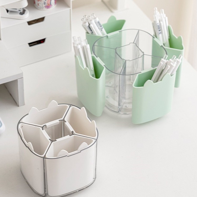 高级感办公用品轻奢旋转学生笔筒化妆刷收纳桌面大容量分格收纳盒