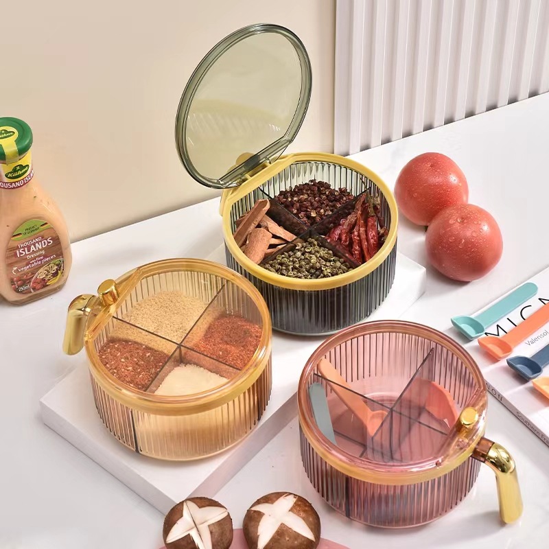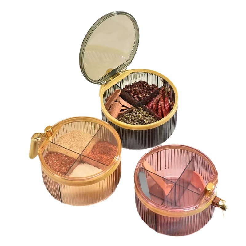 圆形四合一调料盒组合套装家用厨房盐味精四格可拆收纳多格调味罐