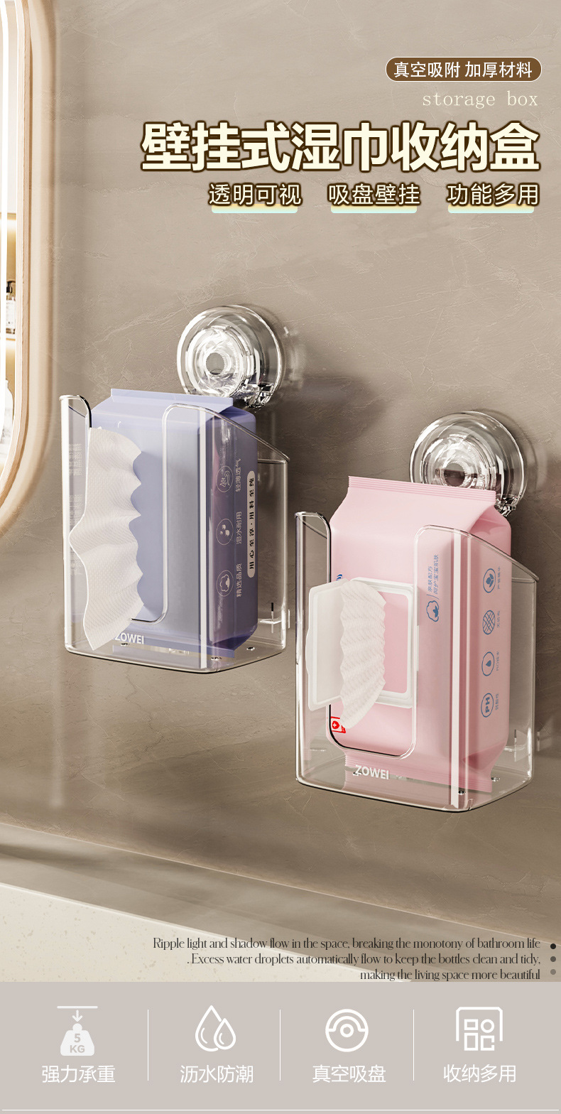 吸盘湿纸巾收纳盒免打孔卫生间抽纸盒湿巾盒壁挂收纳盒厕所纸巾盒