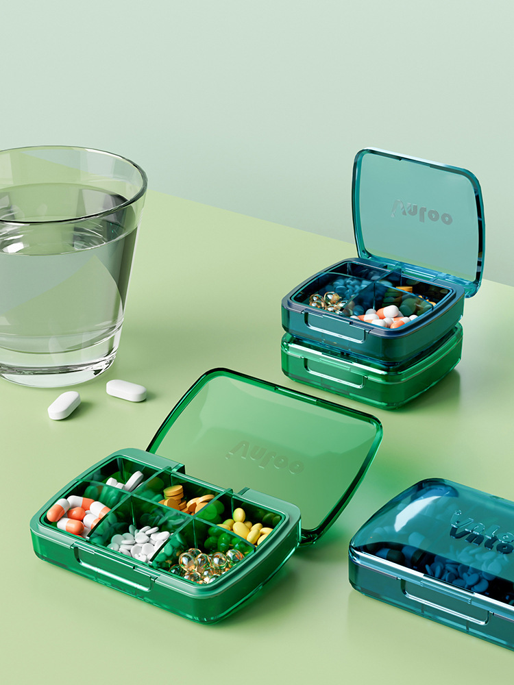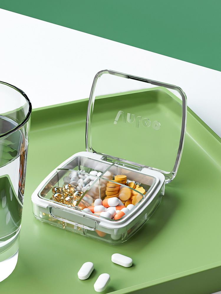便携式分装药盒大容量旅行药品密封盒家用透明桌面随身家庭医药箱