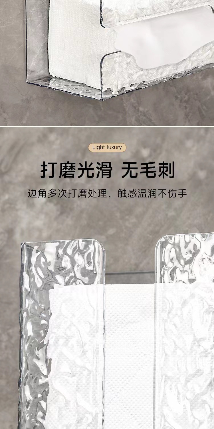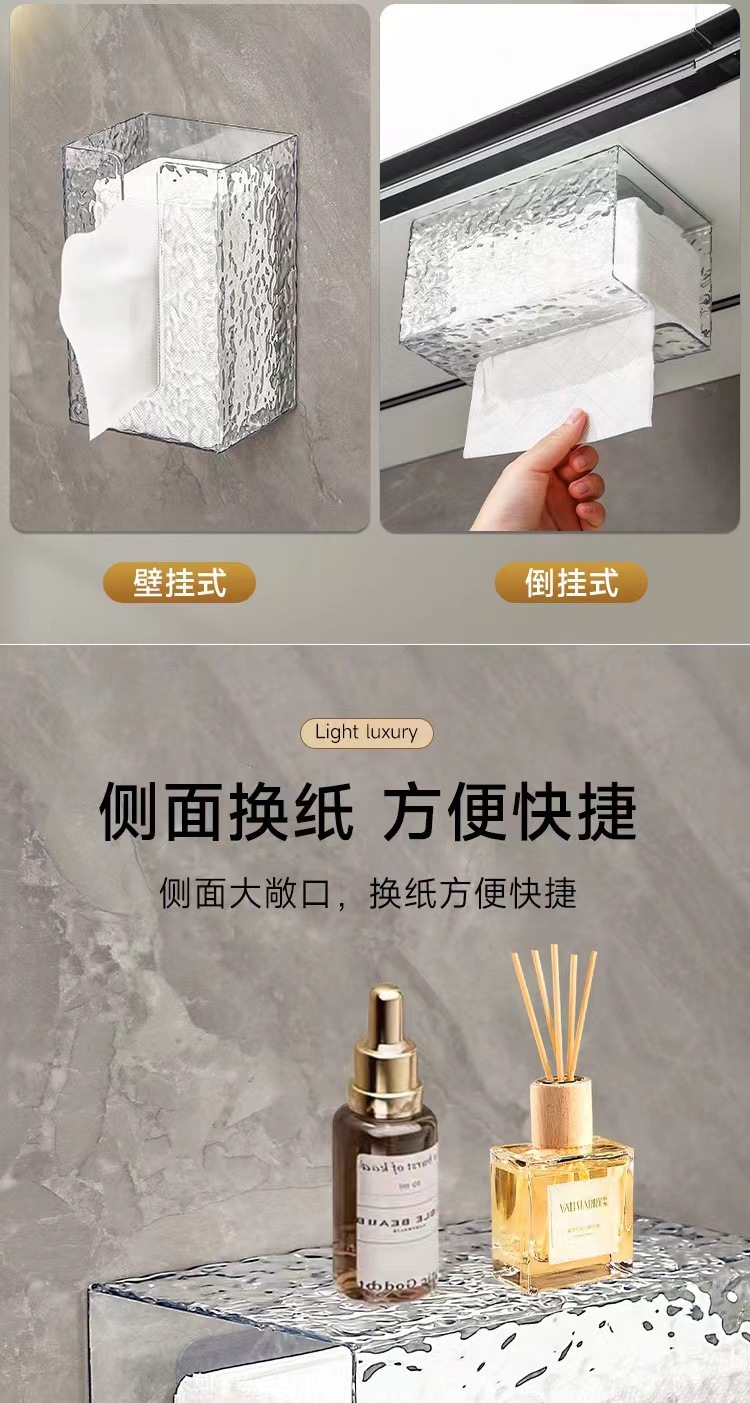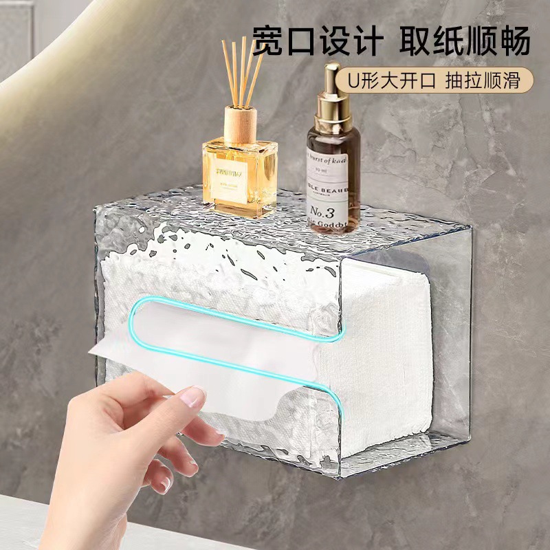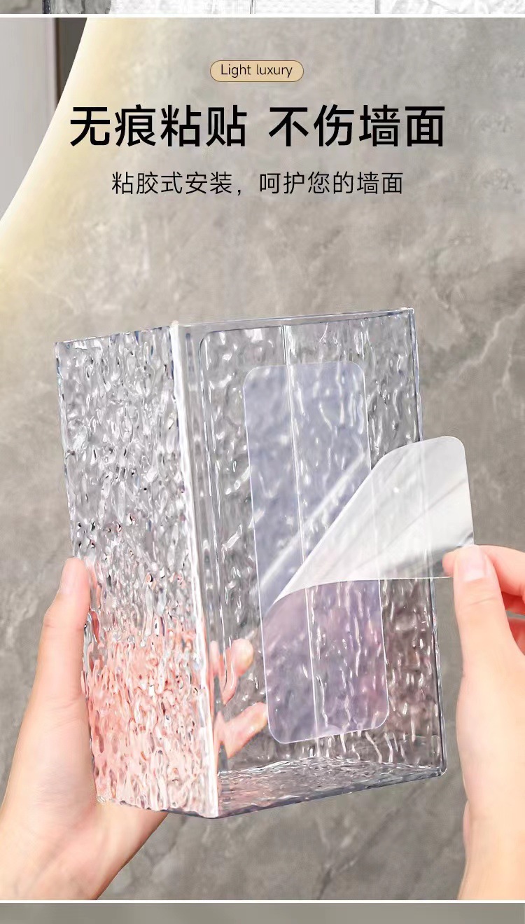 轻奢冰川透明纹透明纸巾盒洗脸巾收纳盒卫生间多功能壁挂式抽纸盒