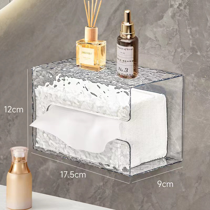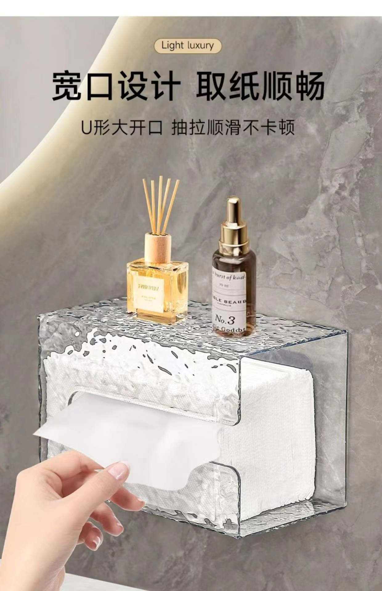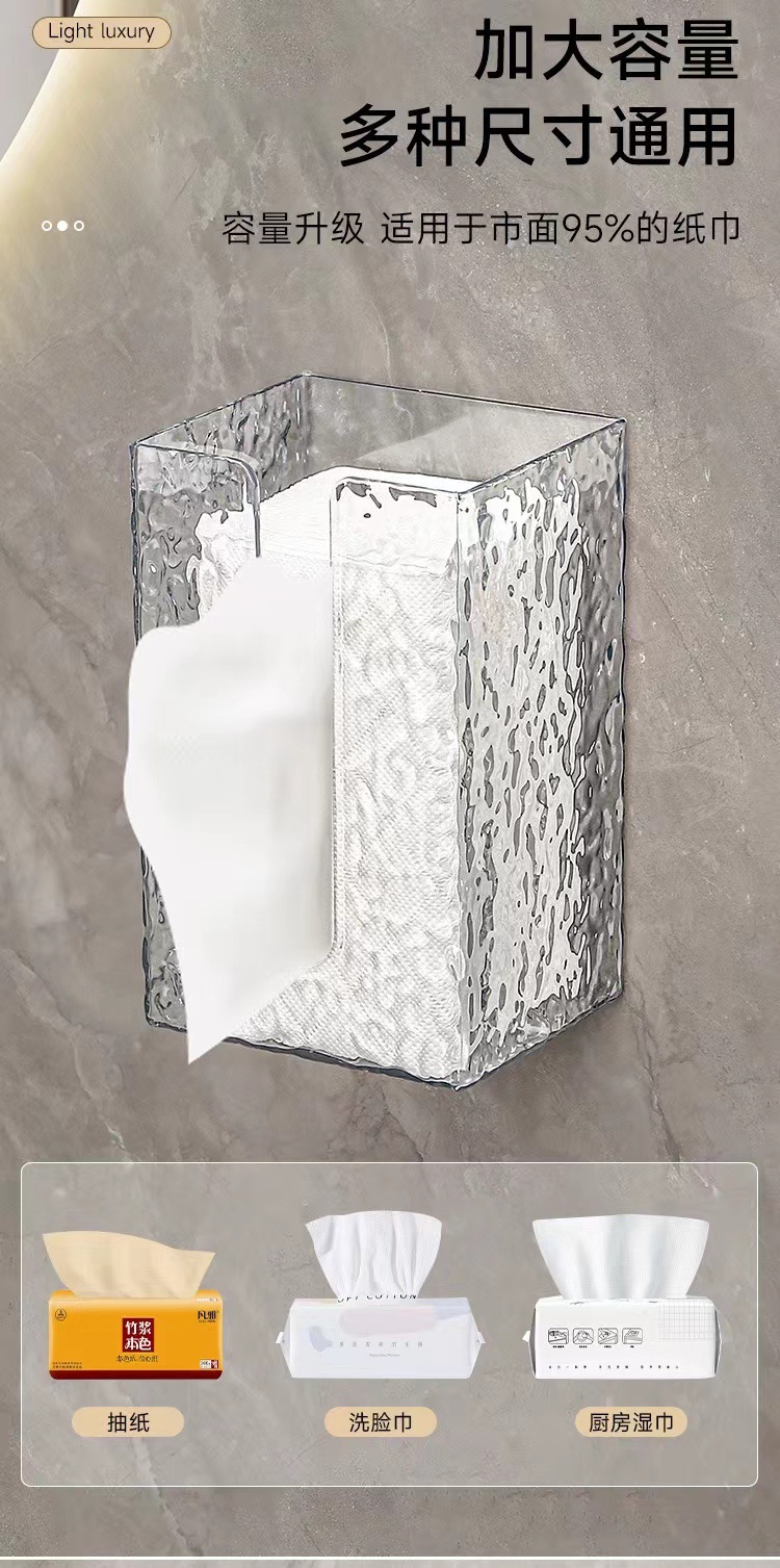 轻奢冰川透明纹透明纸巾盒洗脸巾收纳盒卫生间多功能壁挂式抽纸盒