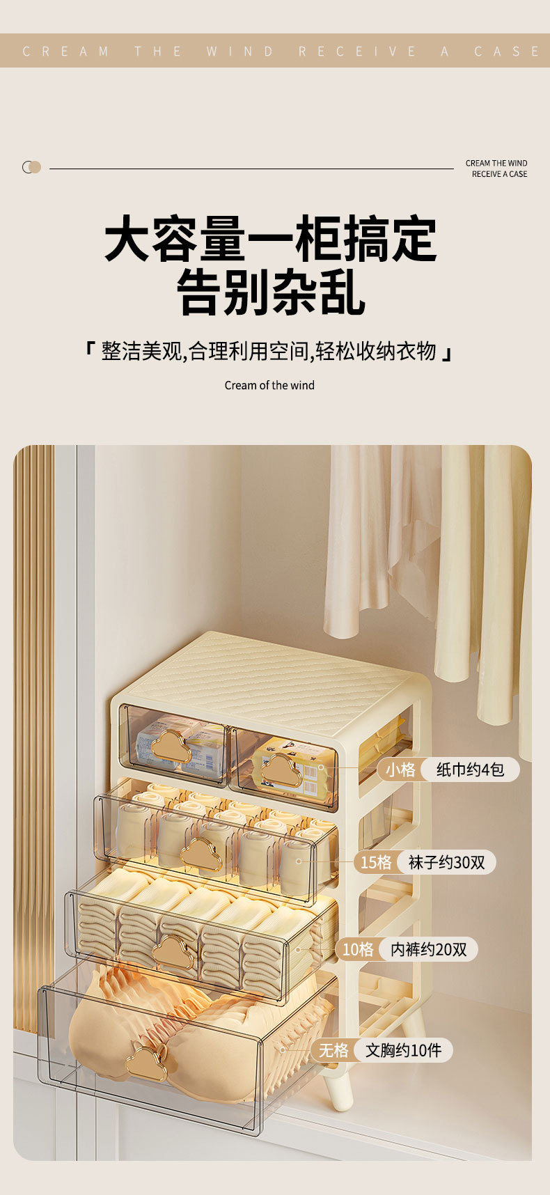 卧室衣柜内衣内裤收纳盒多层抽屉式带盖防尘儿童袜子分格收纳柜