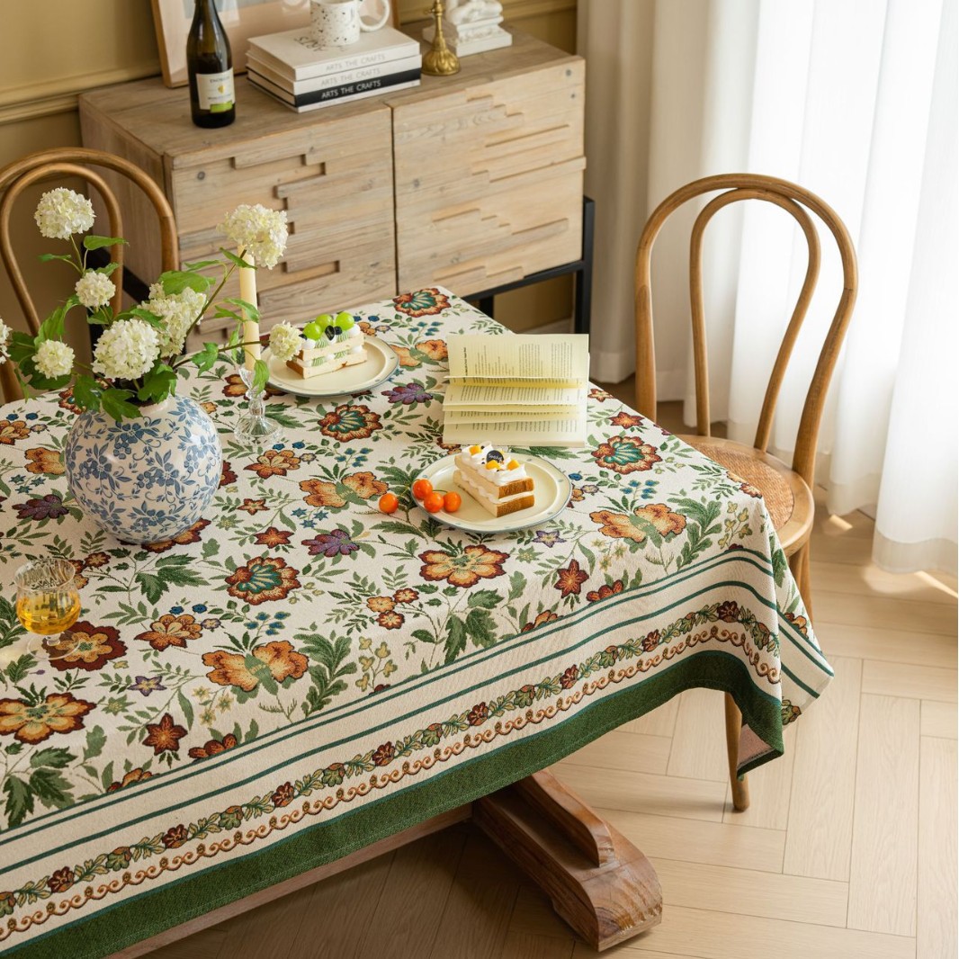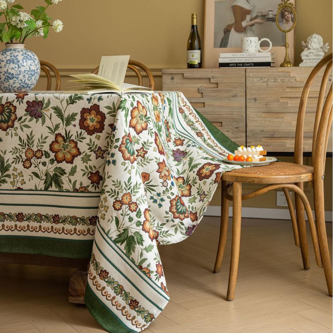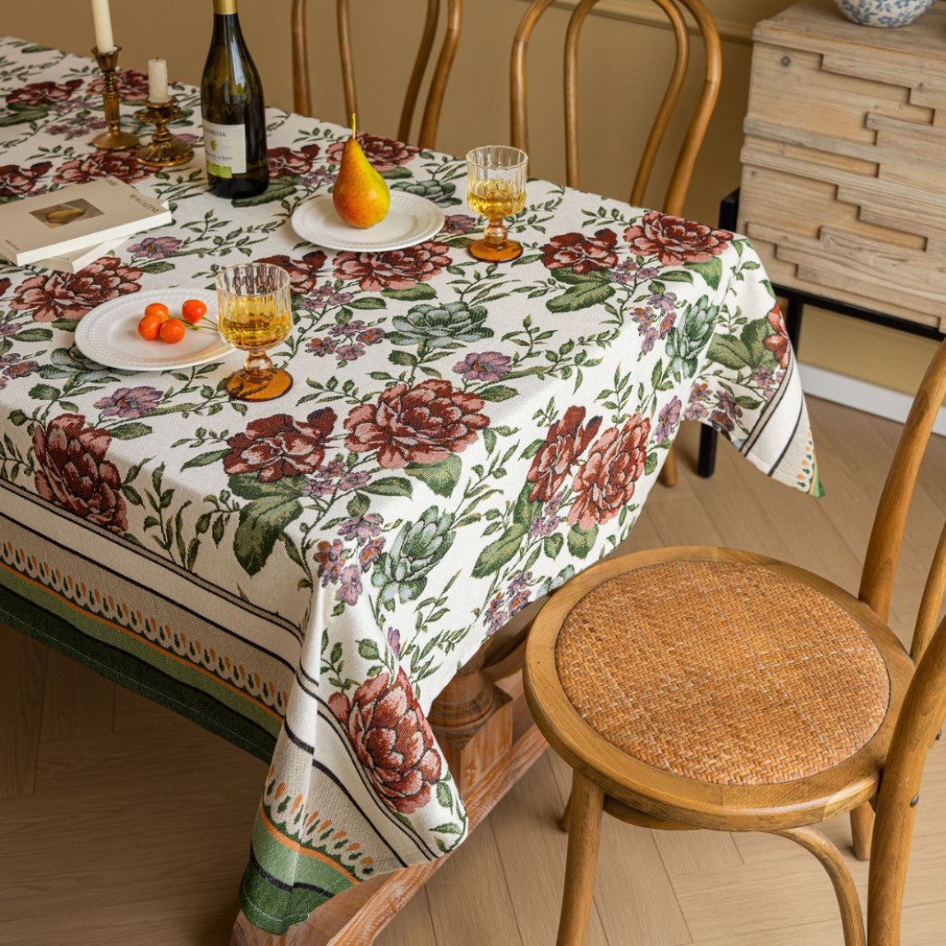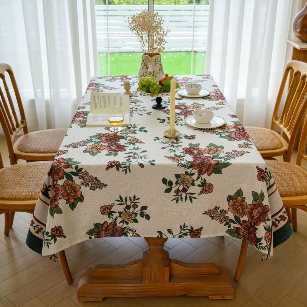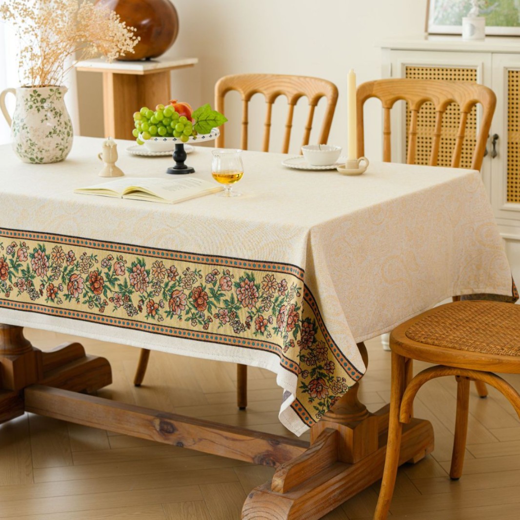 聚家家纺ins风茶几桌布布艺风铃草花卉提花卷边文艺长方形餐桌布