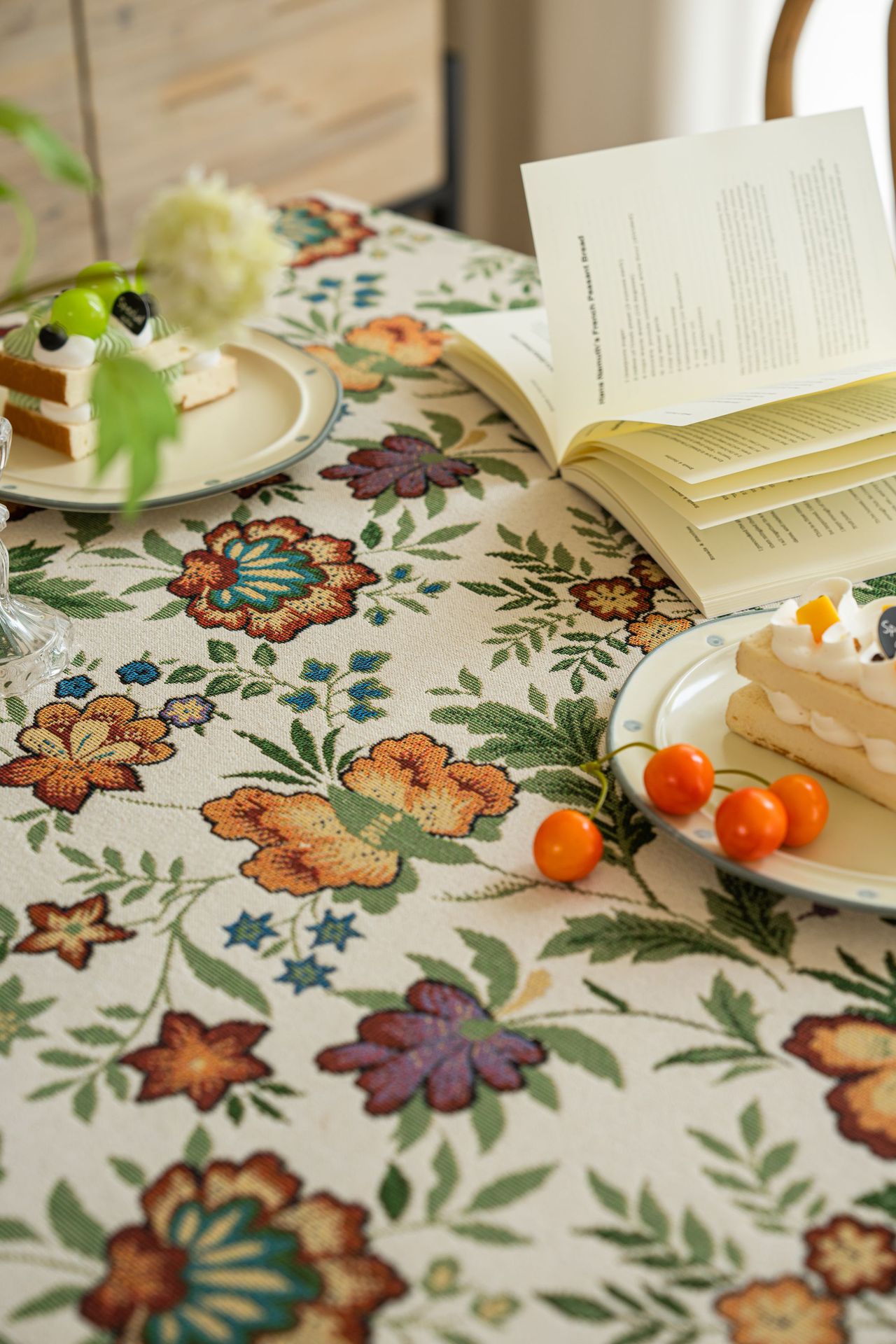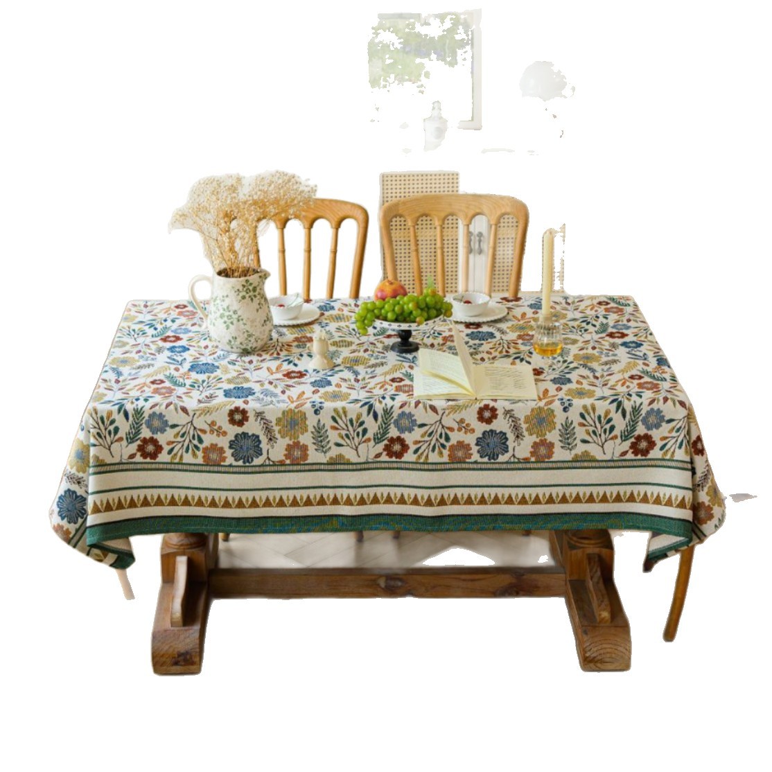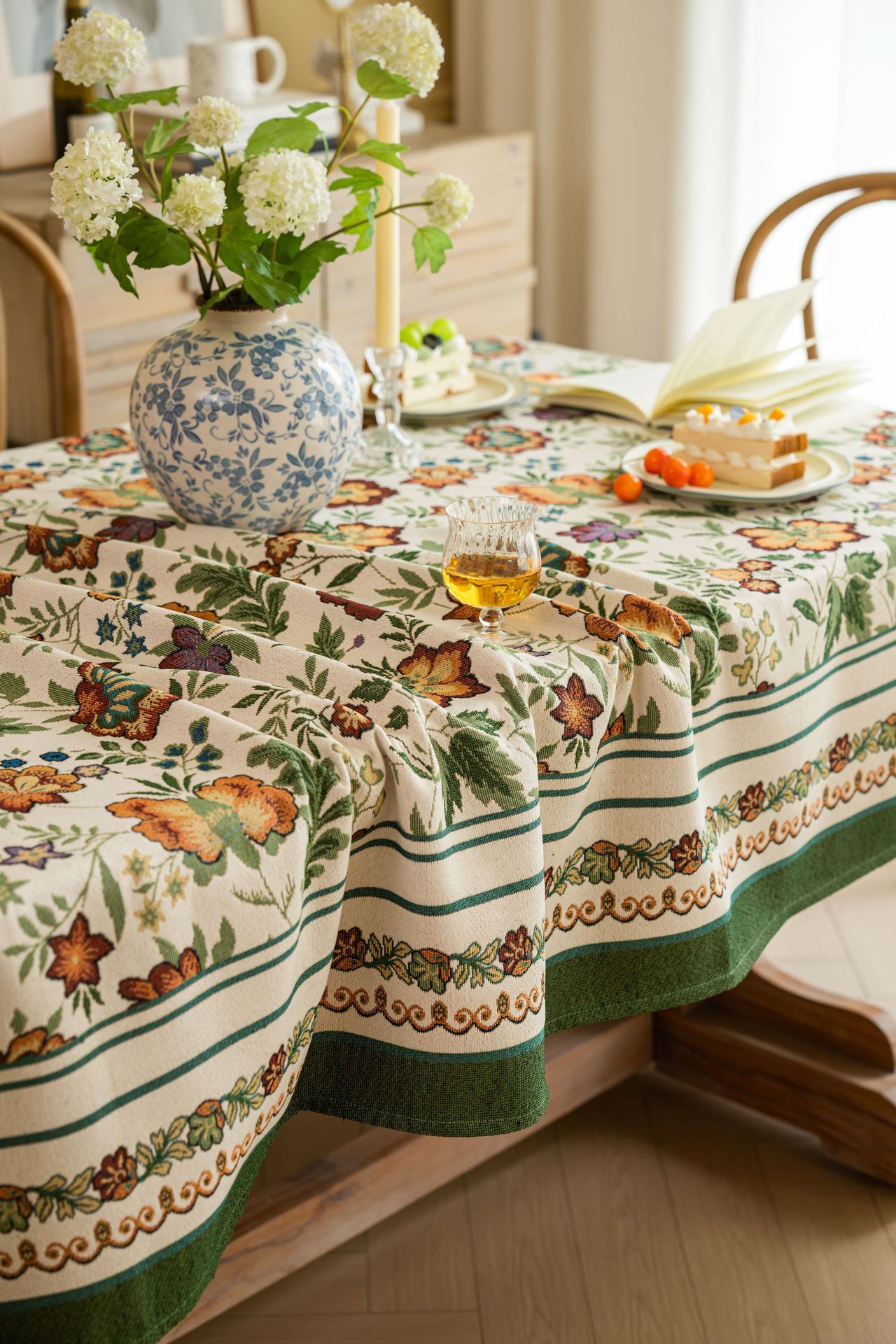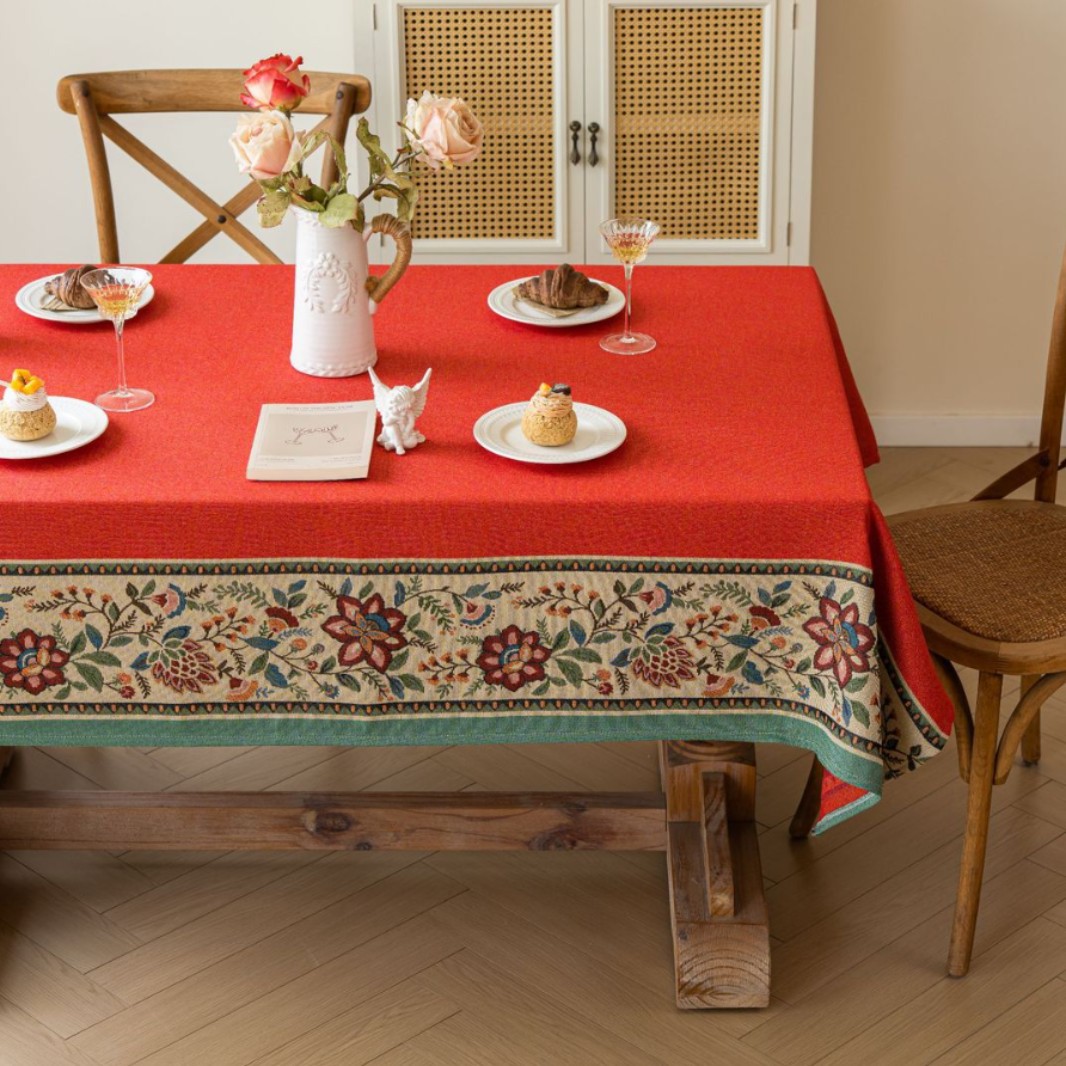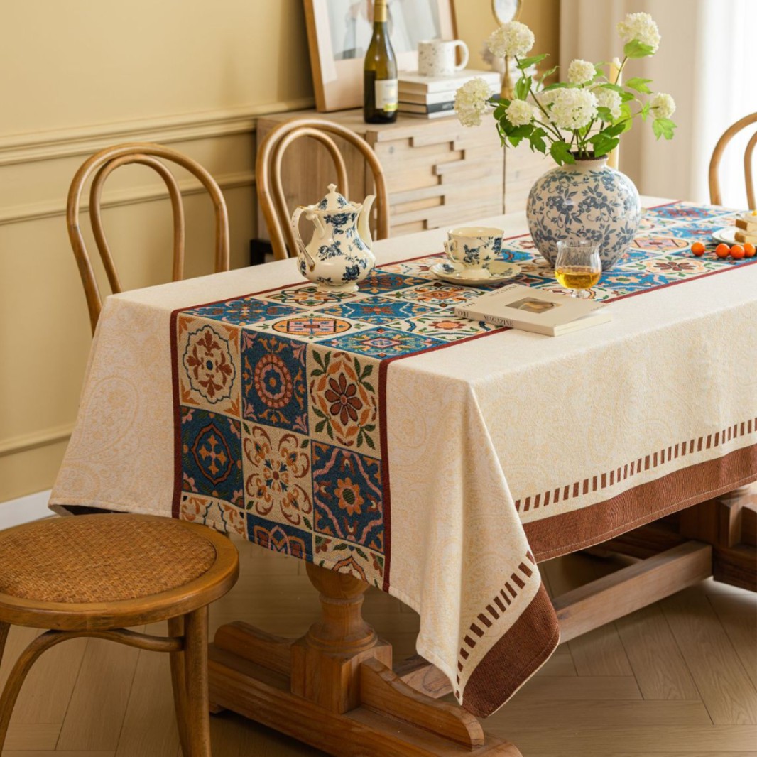 聚家家纺ins风茶几桌布布艺风铃草花卉提花卷边文艺长方形餐桌布