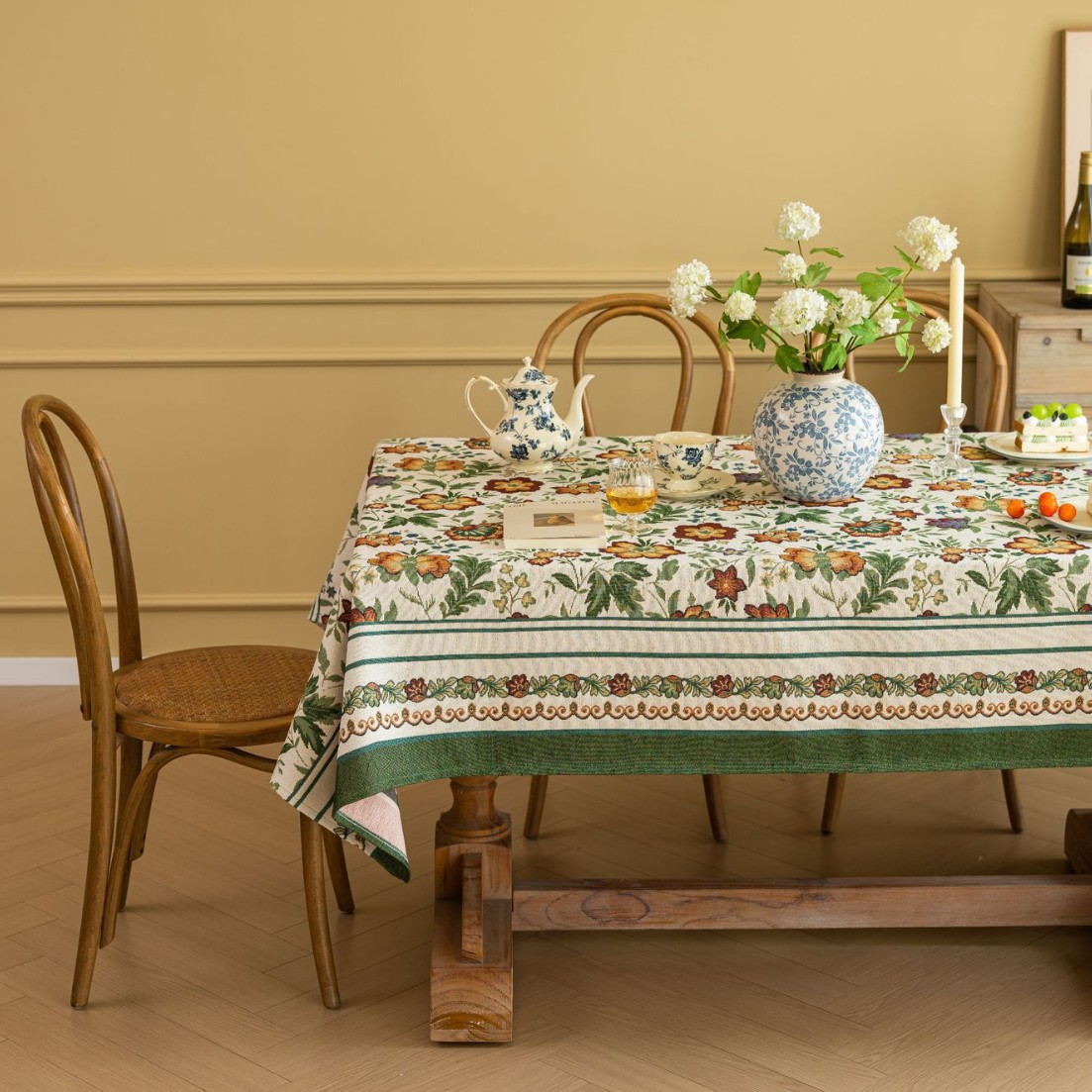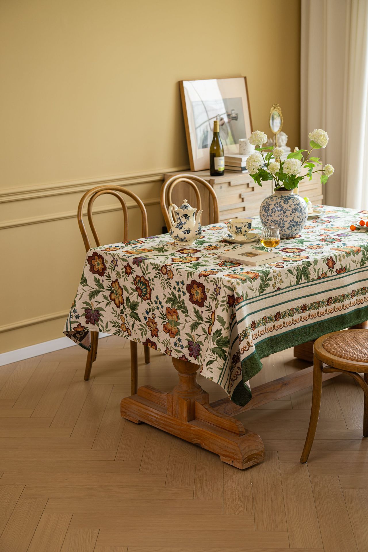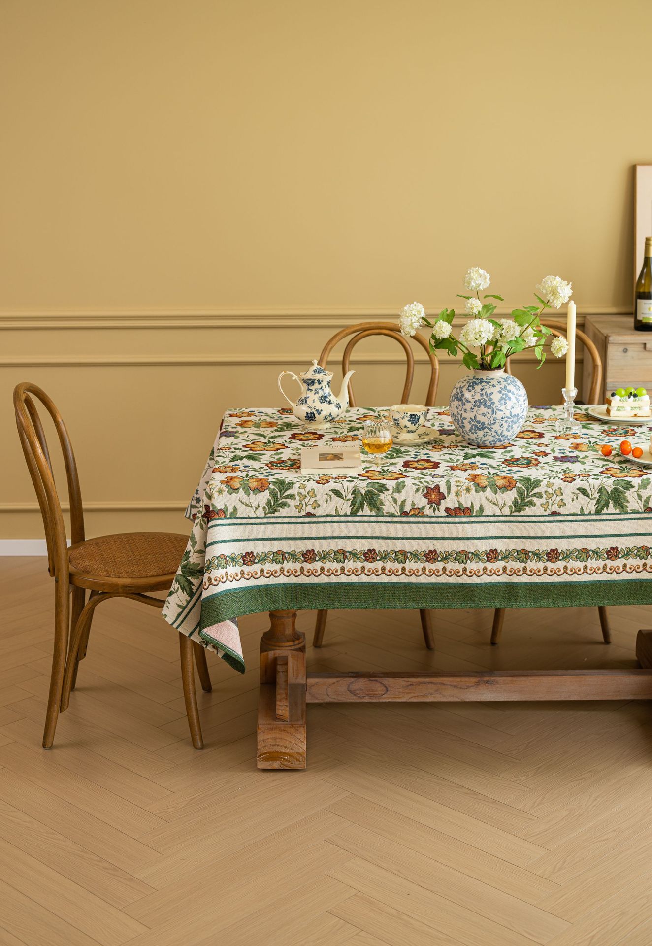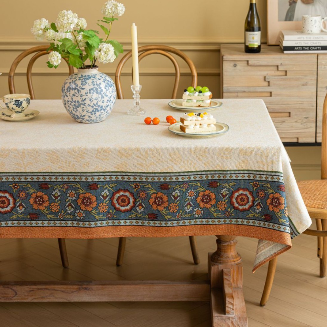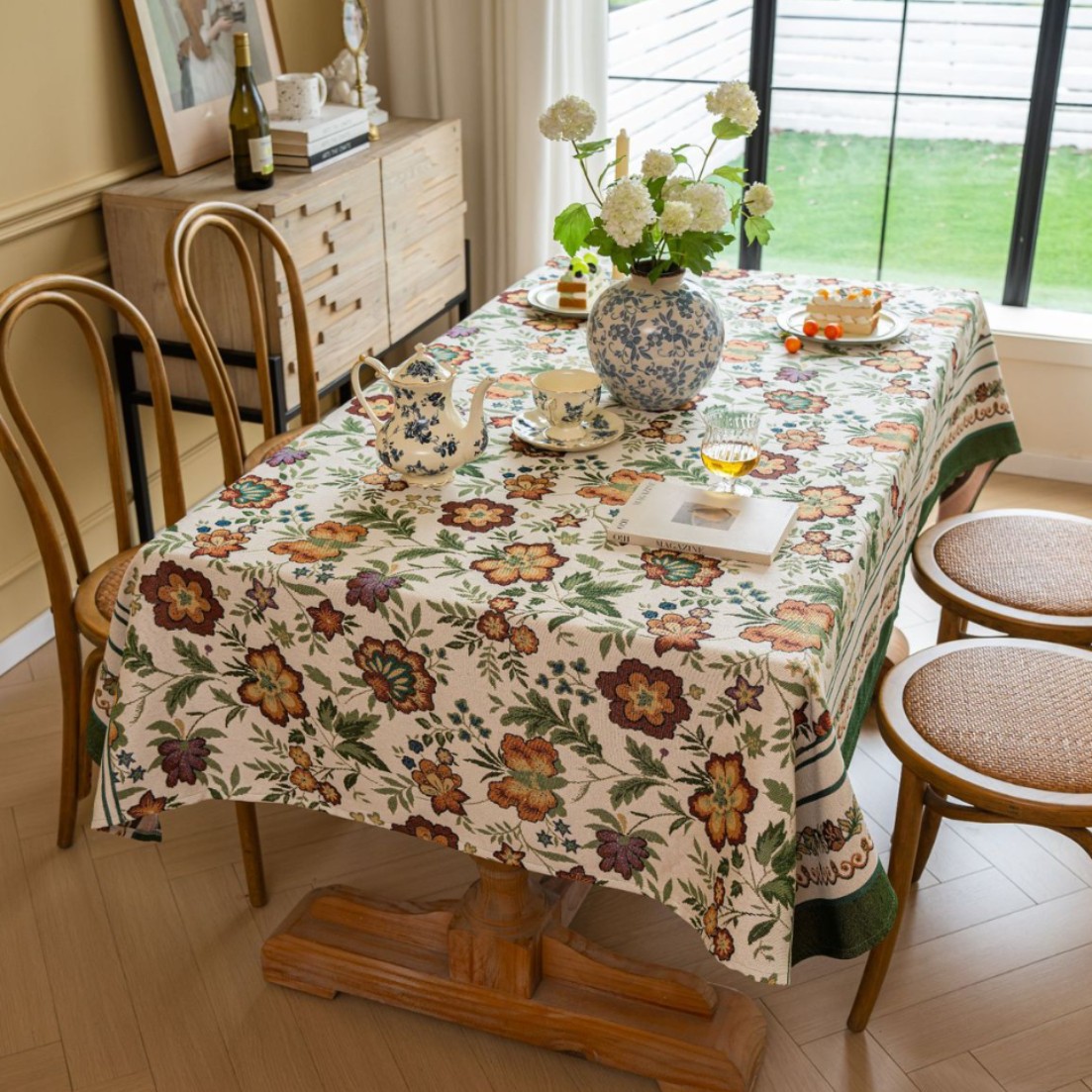 聚家家纺ins风茶几桌布布艺风铃草花卉提花卷边文艺长方形餐桌布