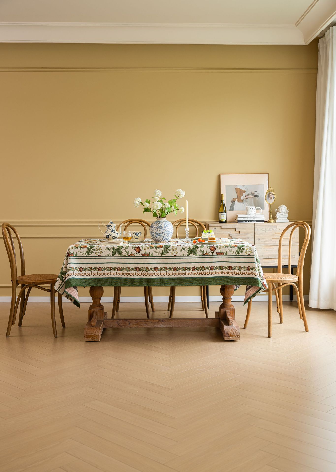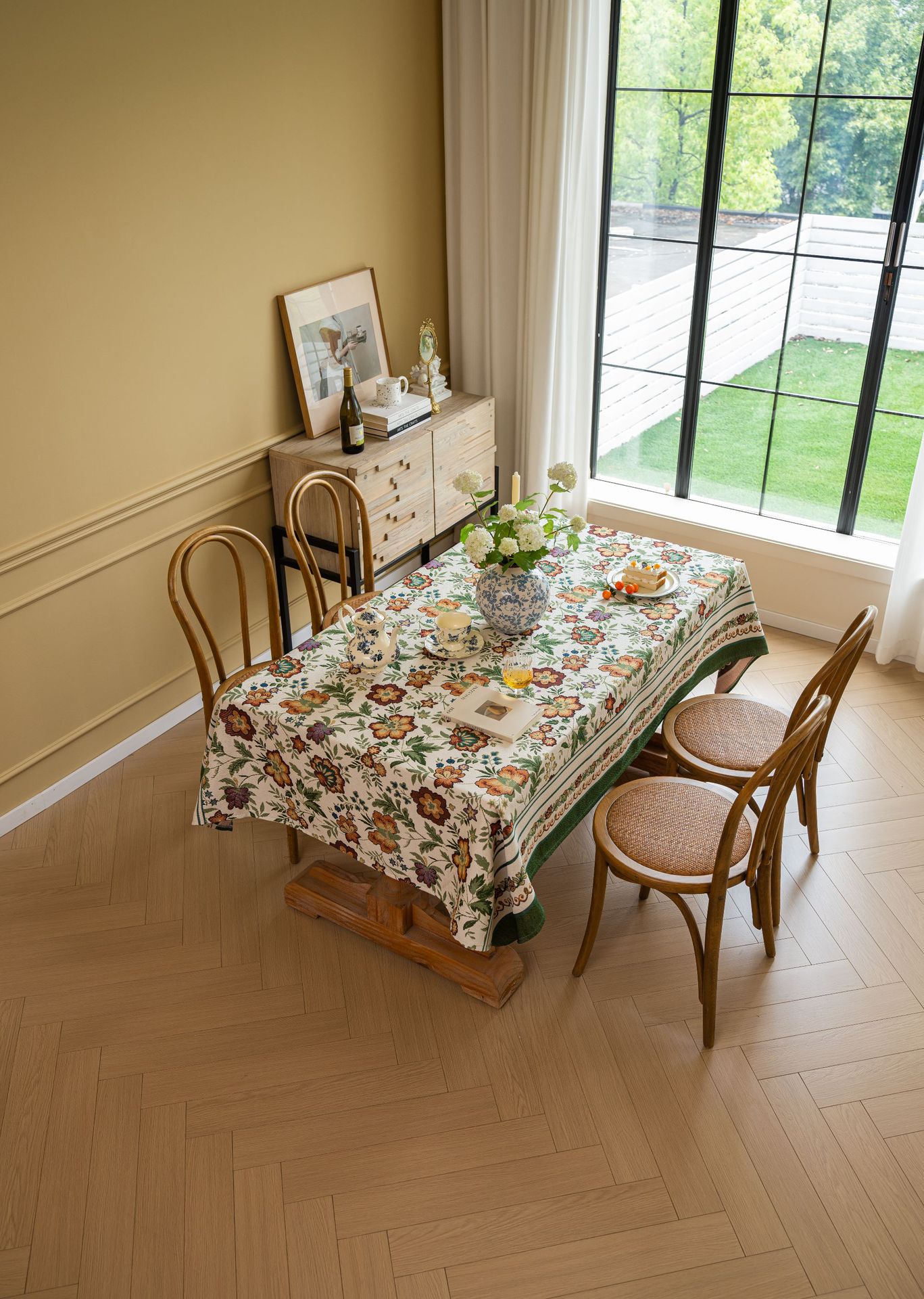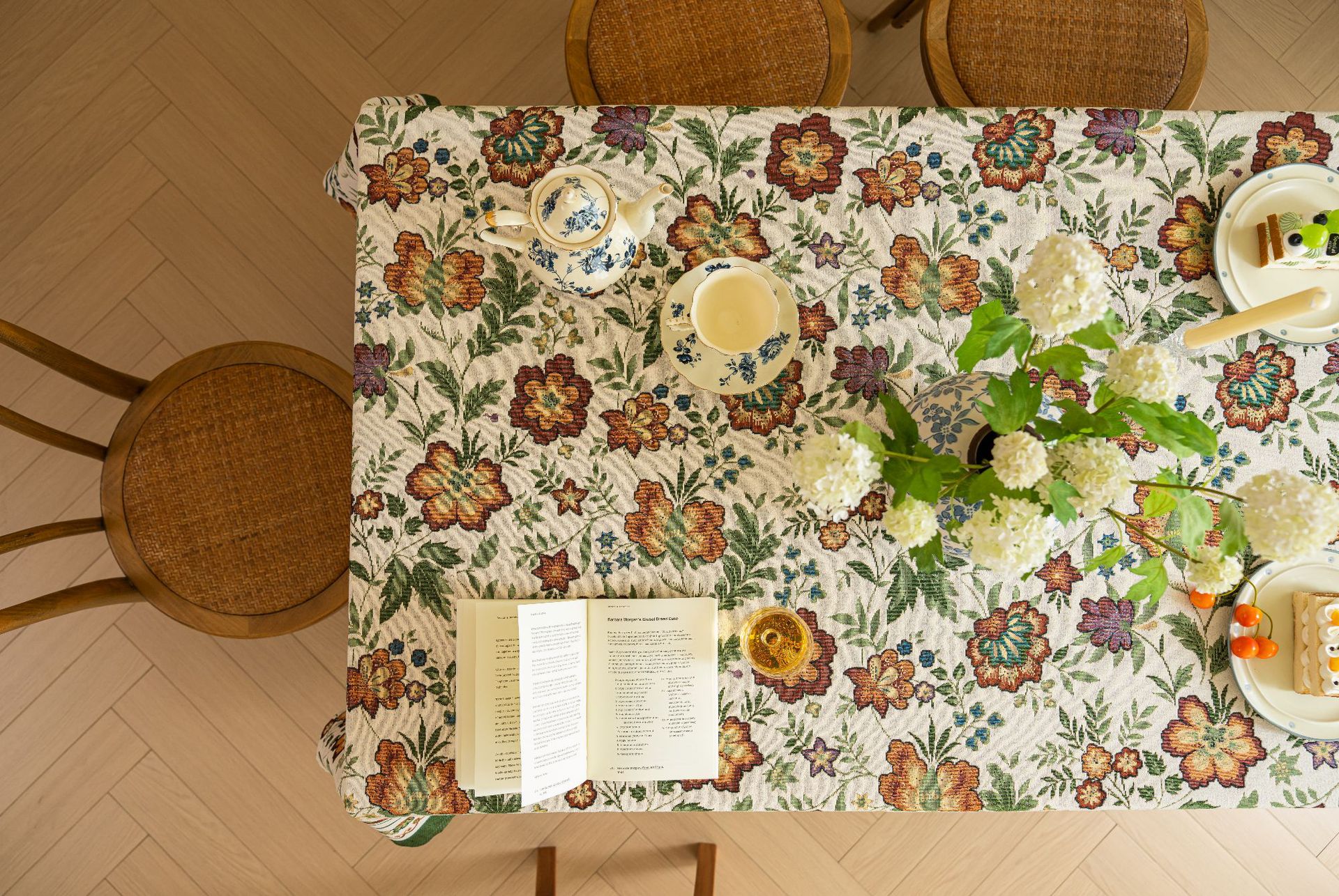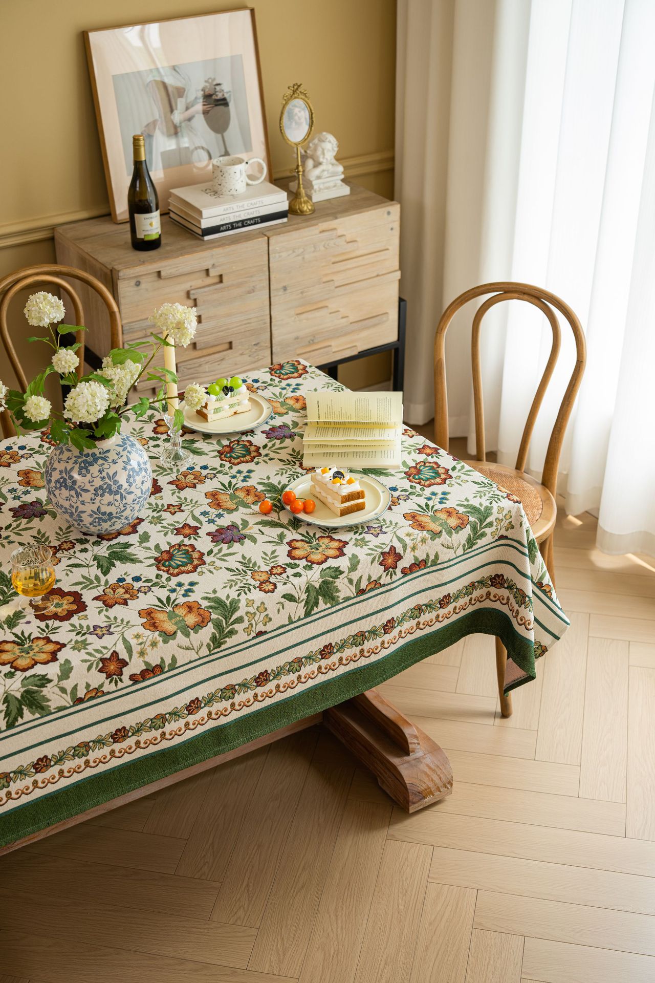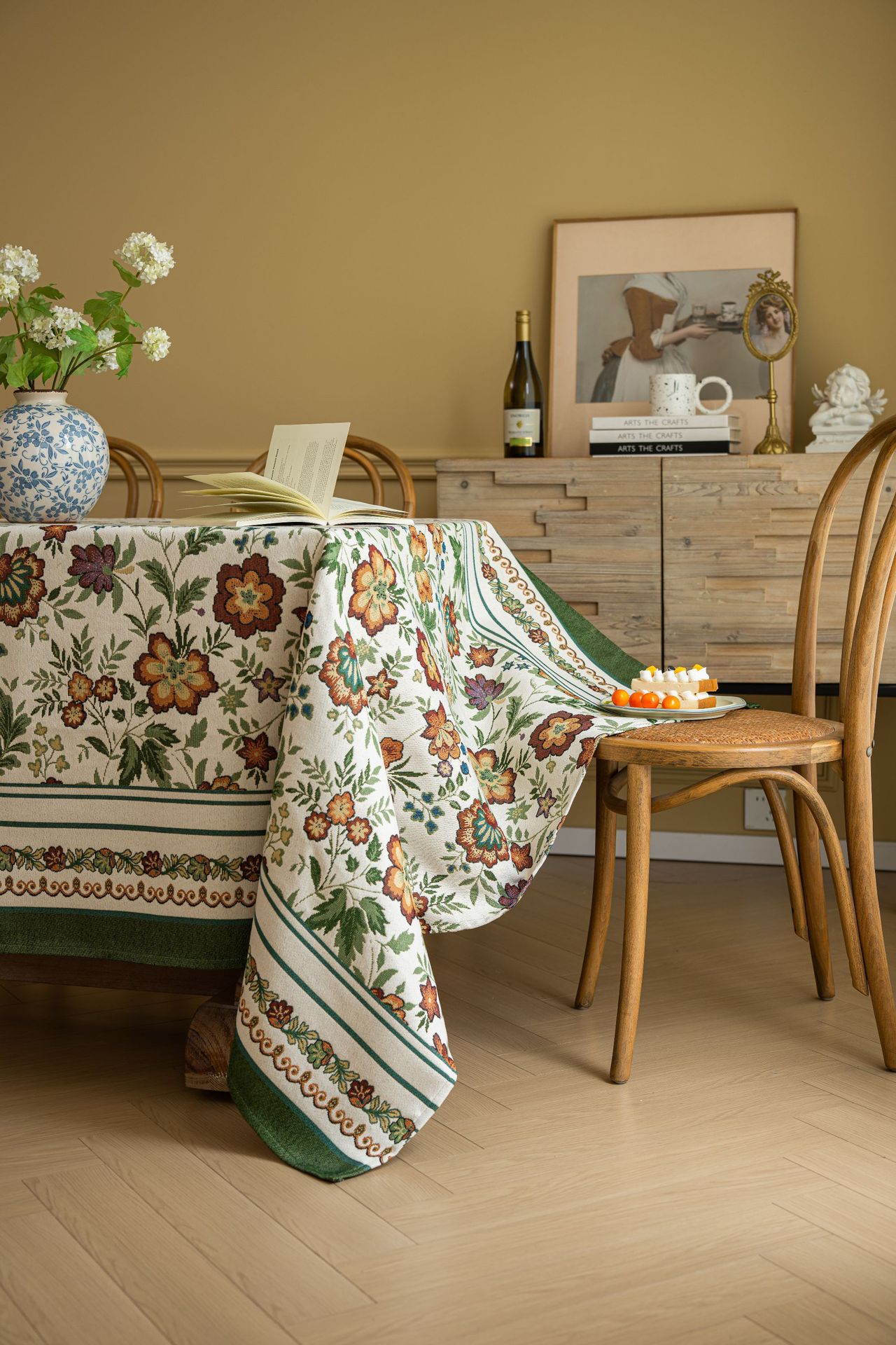 聚家家纺ins风茶几桌布布艺风铃草花卉提花卷边文艺长方形餐桌布