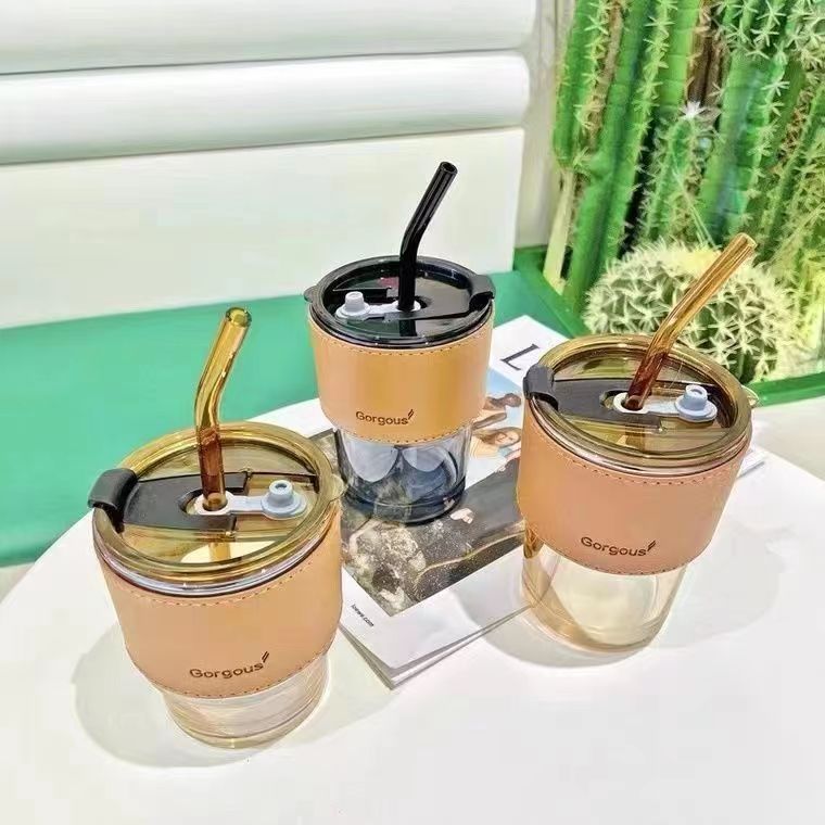 高颜值网红竹节杯吸管玻璃杯简约轻奢杯子ins便携水杯竹节杯