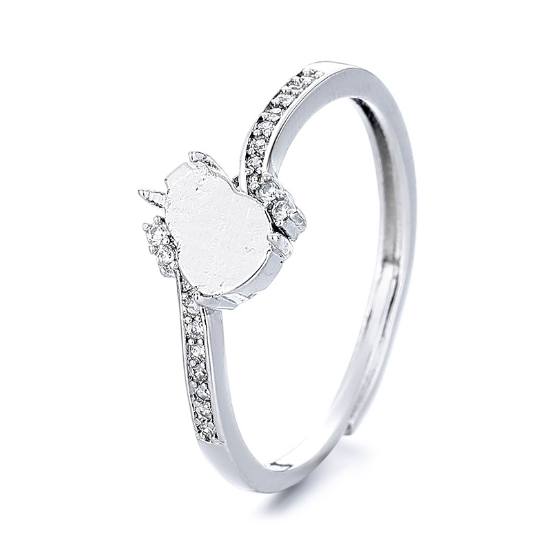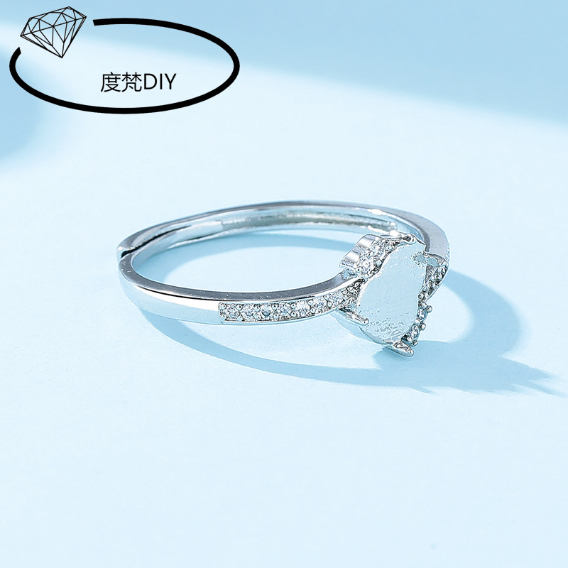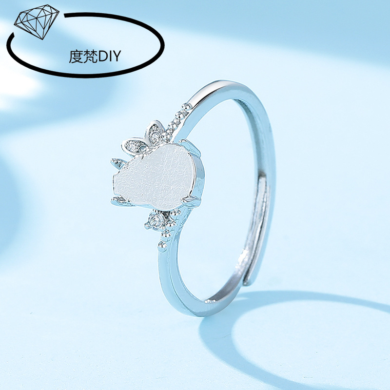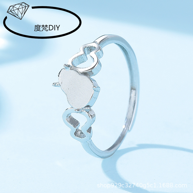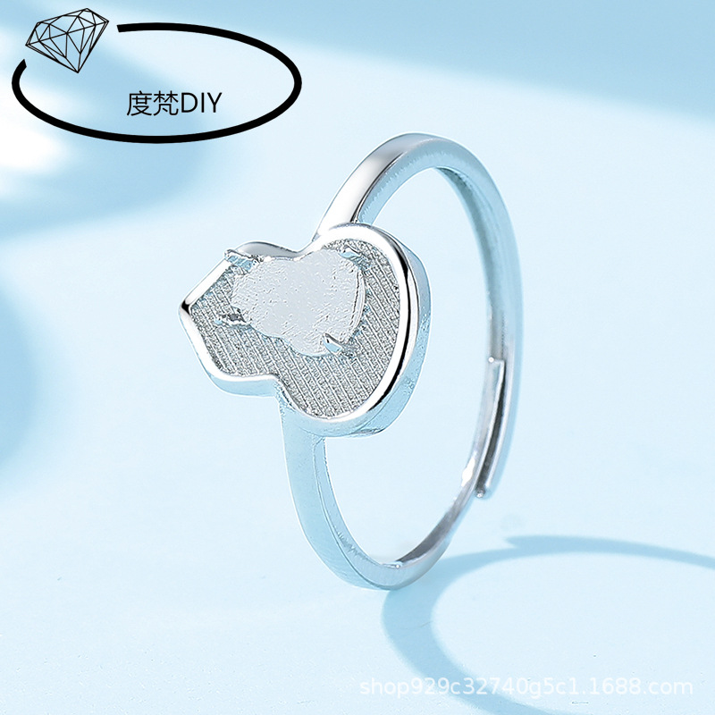 经典民族风葫芦铜戒指空托白金色女戒托diy镶嵌翡翠危料小葫芦925