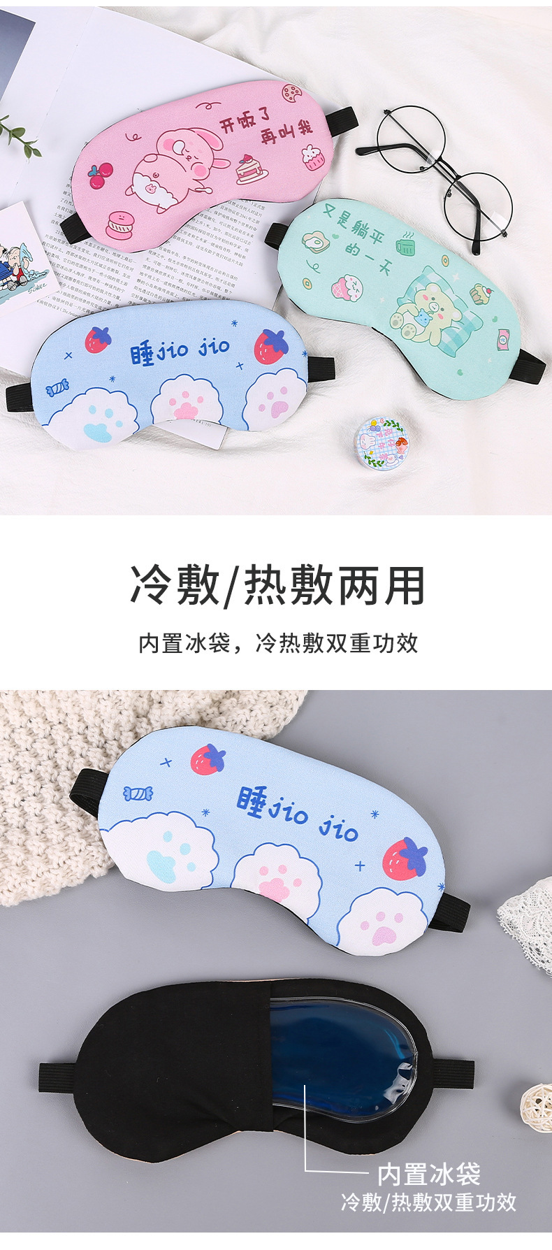 眼罩可爱卡通动漫午休冰袋冰敷热敷睡觉护眼罩睡眠女男遮光透气