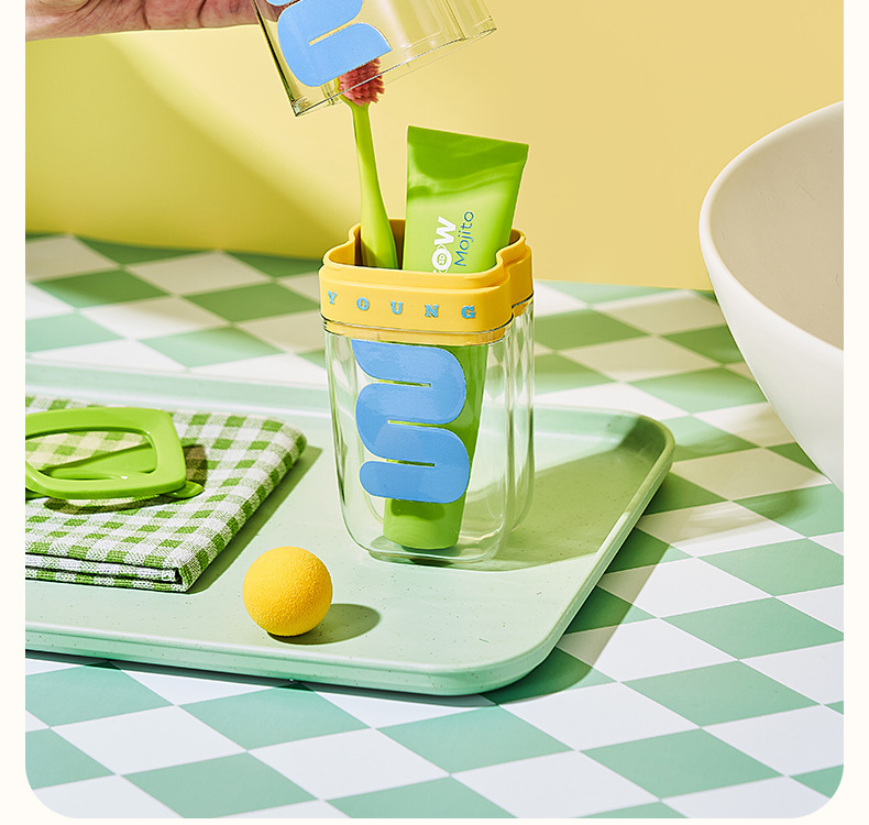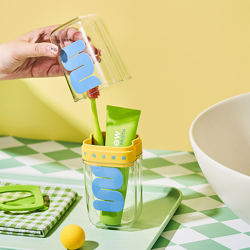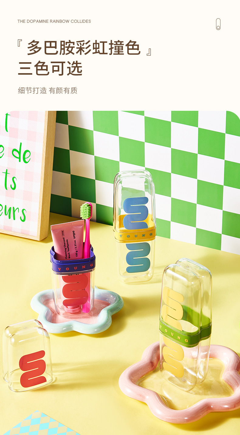 开学季多巴胺牙具盒创意漱口杯撞色学生家用旅行便携刷牙杯肥皂盒
