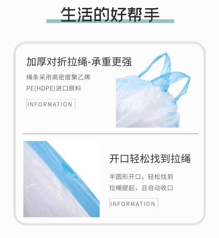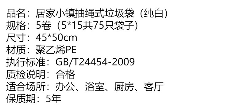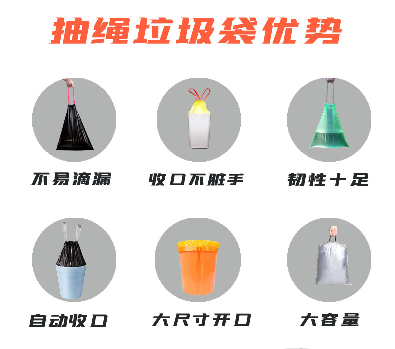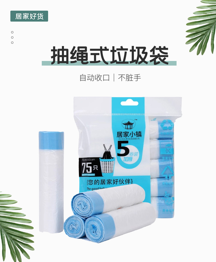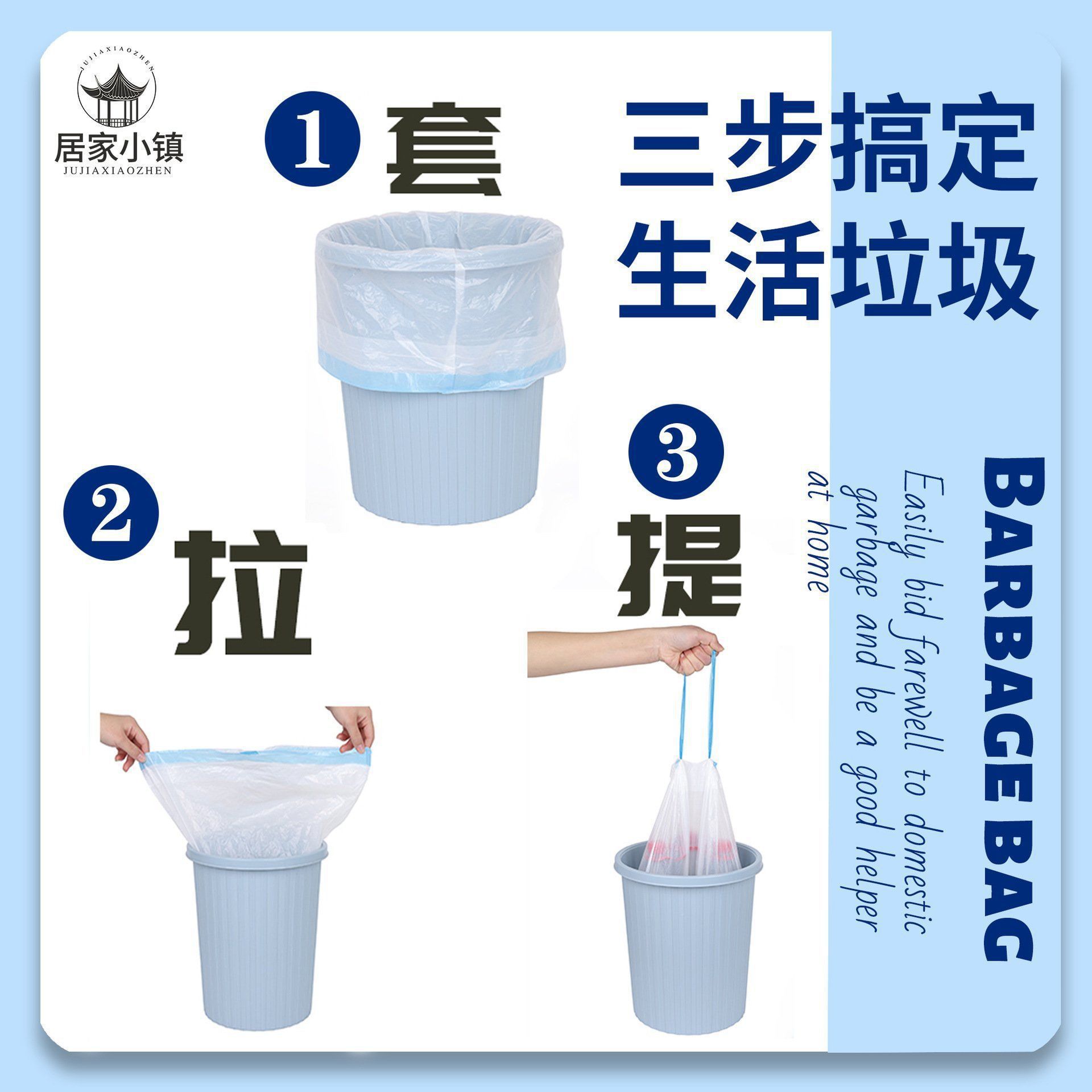 居家小镇抽绳垃圾袋家用手提式加厚厨房大号实惠办公室超市塑料袋