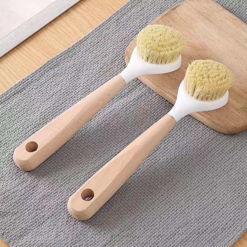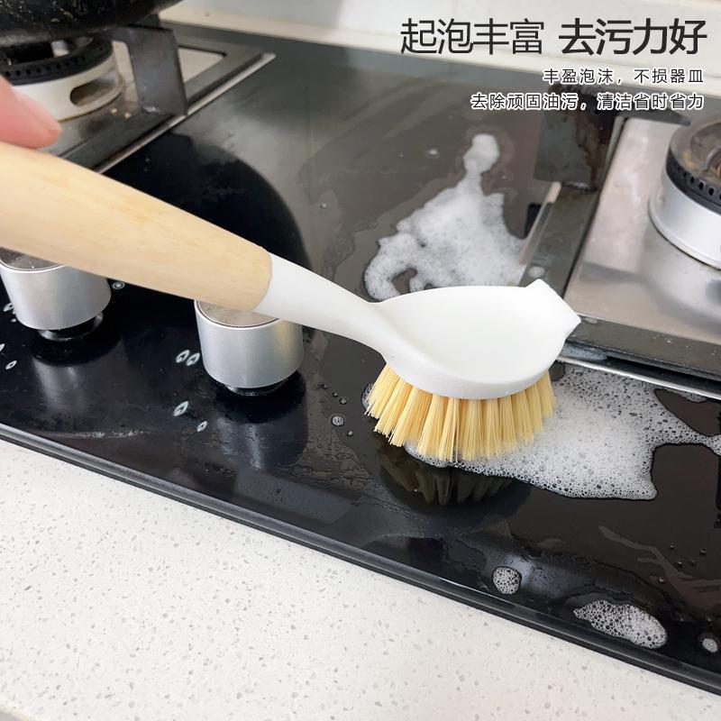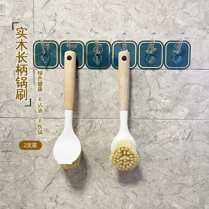 外贸批发锅刷家用长柄洗锅碗不沾油木柄刷子厨房多功能清洁刷神器