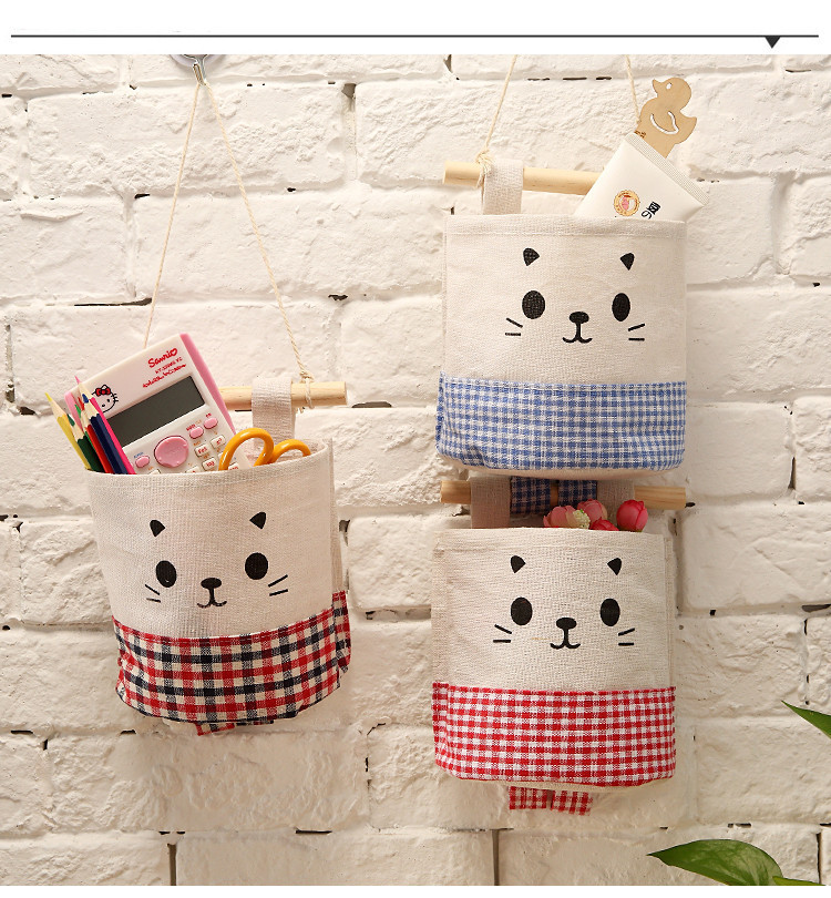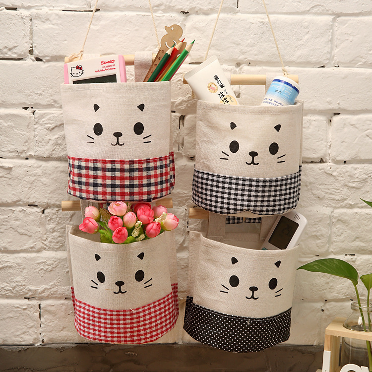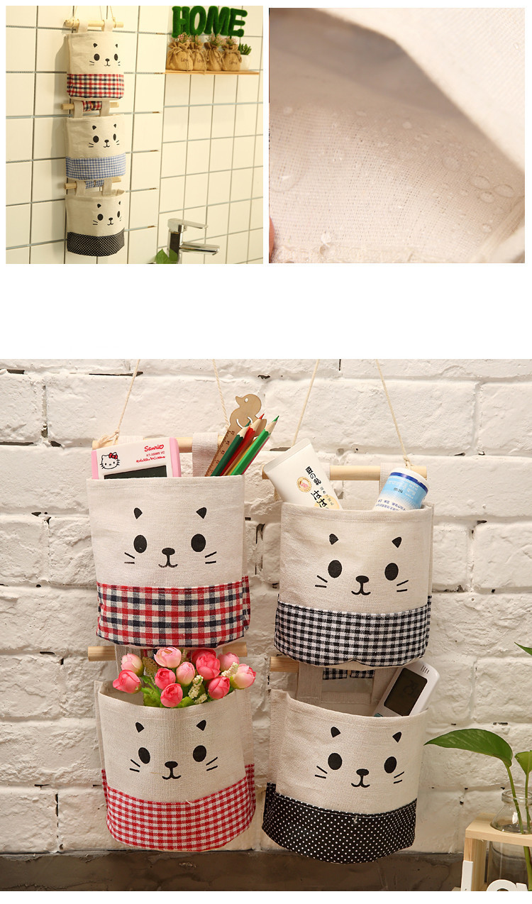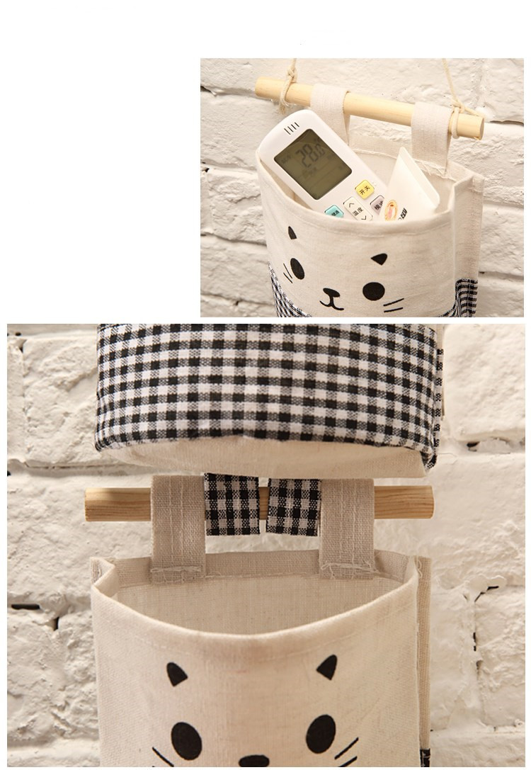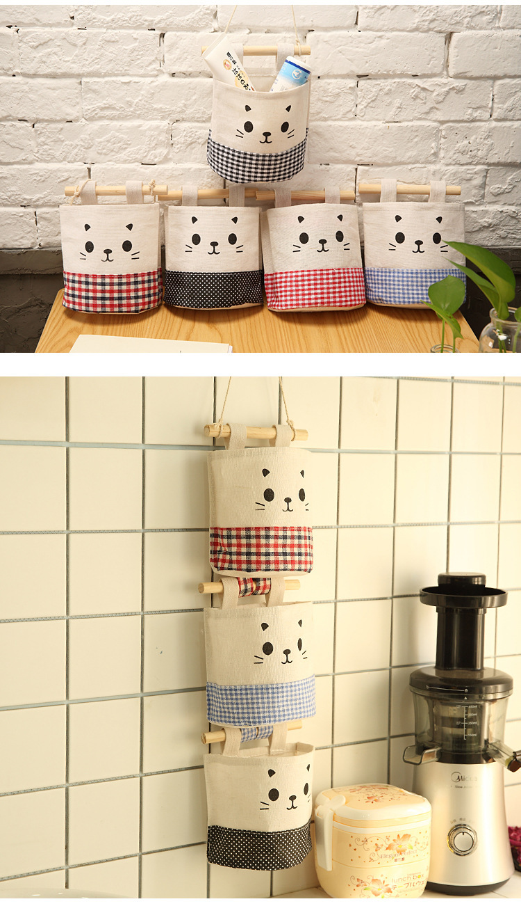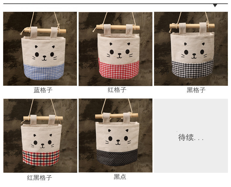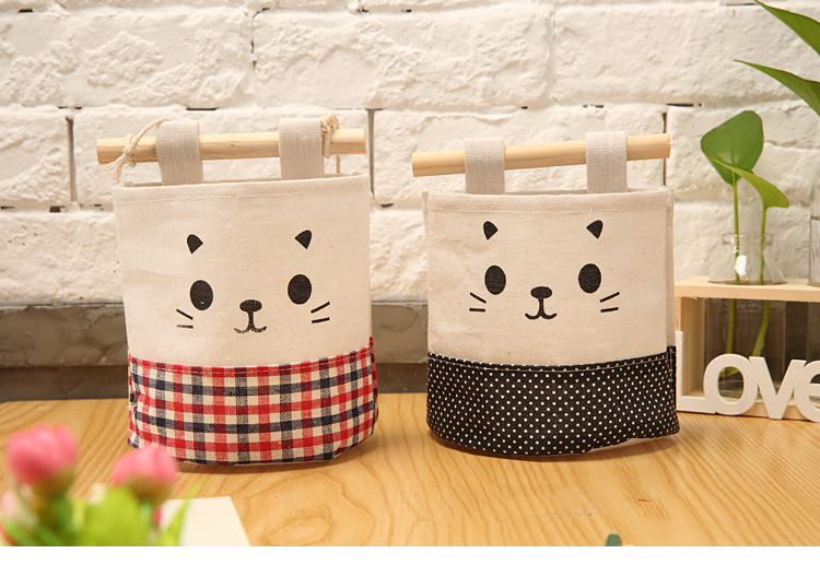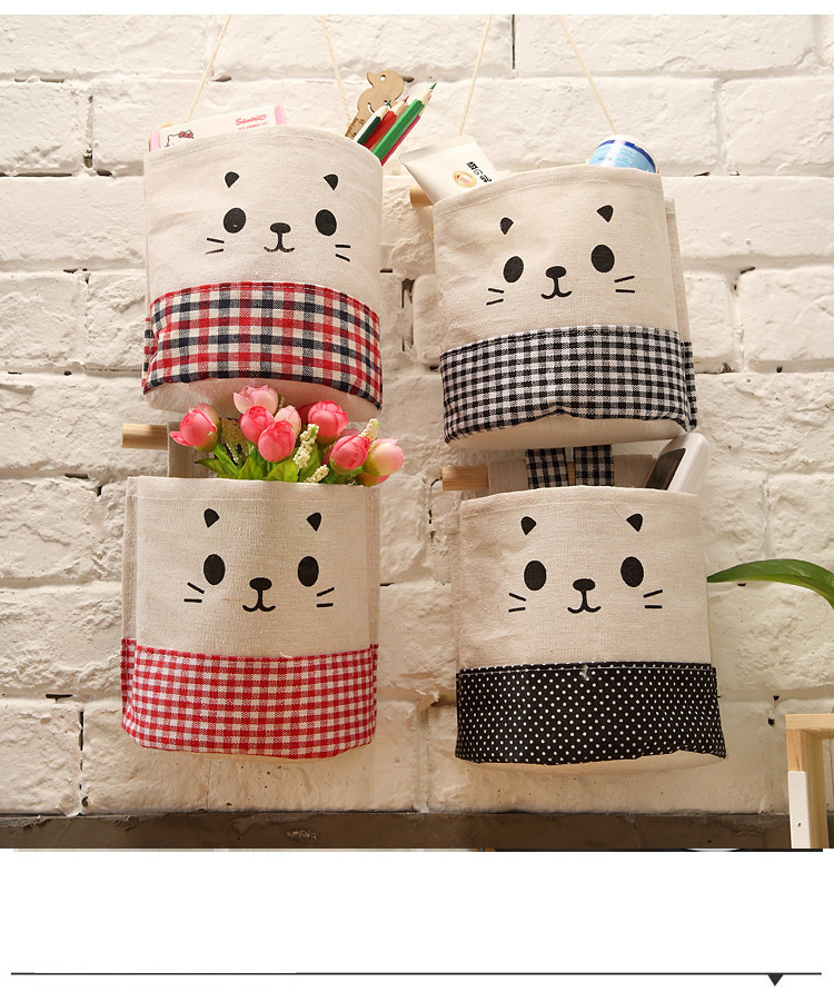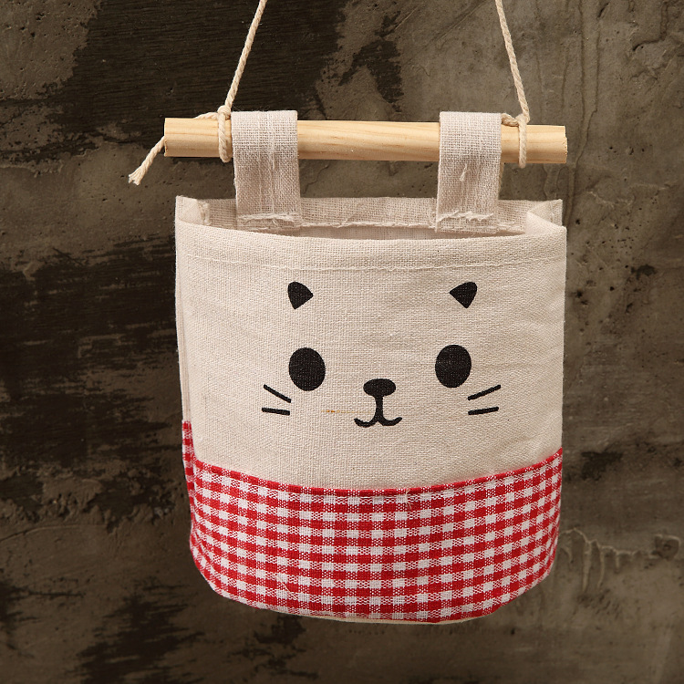 墙挂外贸原单纯棉帆布卡通可爱猫咪布艺袋简约门后收纳纳挂袋子