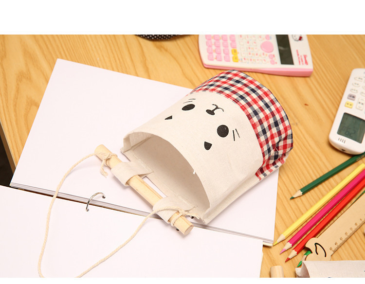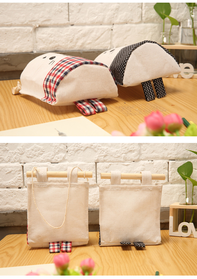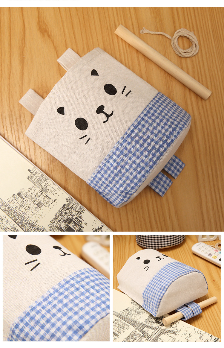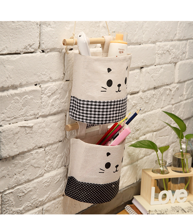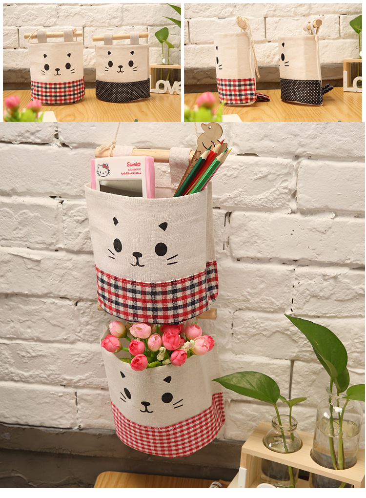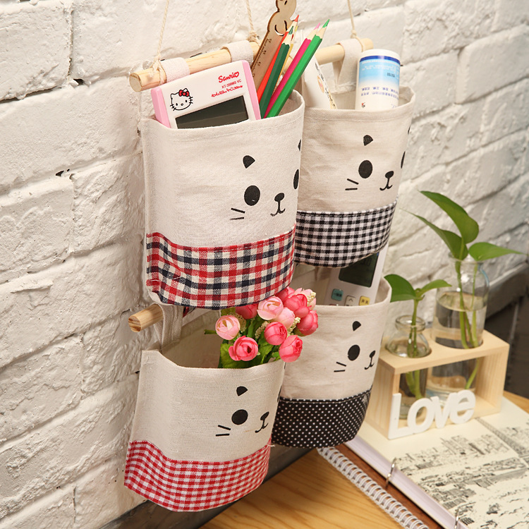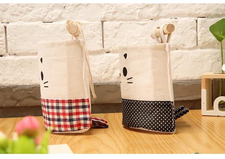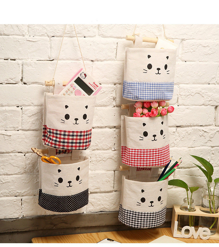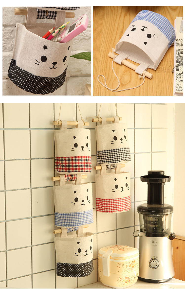 墙挂外贸原单纯棉帆布卡通可爱猫咪布艺袋简约门后收纳纳挂袋子