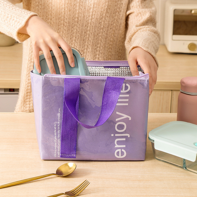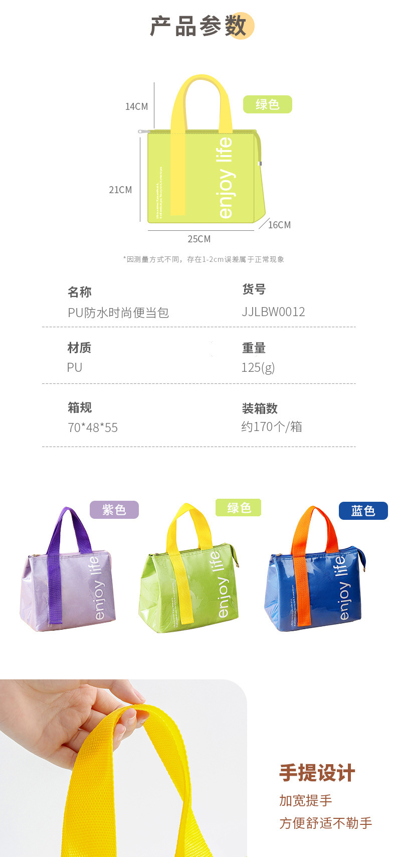 PU防水加厚饭盒袋简约纯色学生上班族带饭包保温包防水加厚饭盒袋