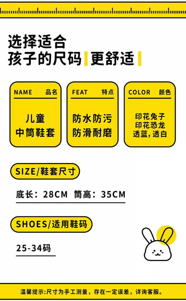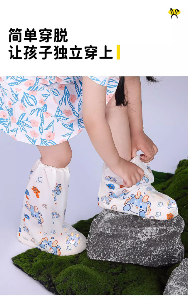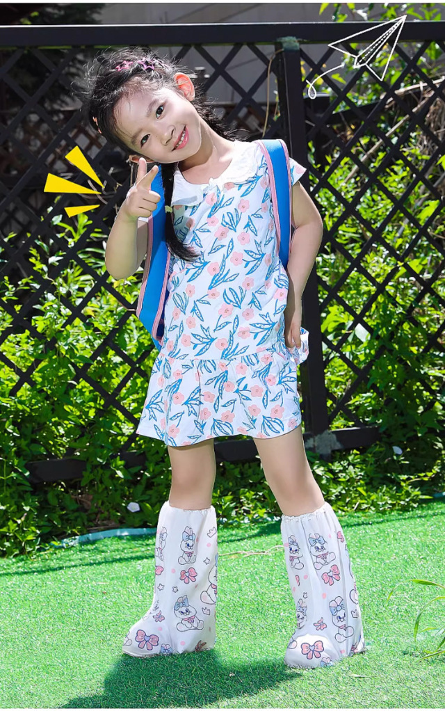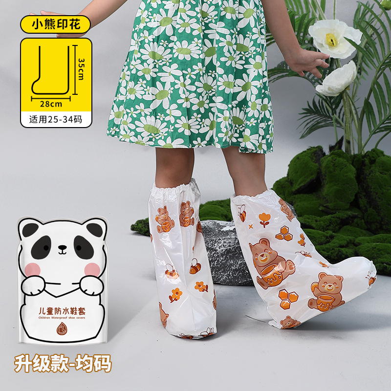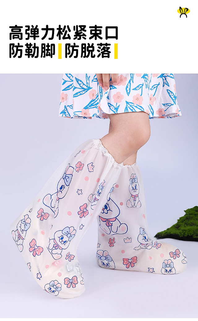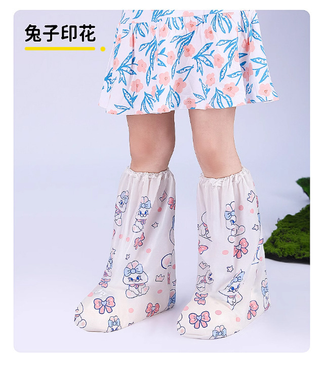 一次性卡通印刷雨鞋套儿童高筒加厚雨靴户外下雨天防水防滑脚套