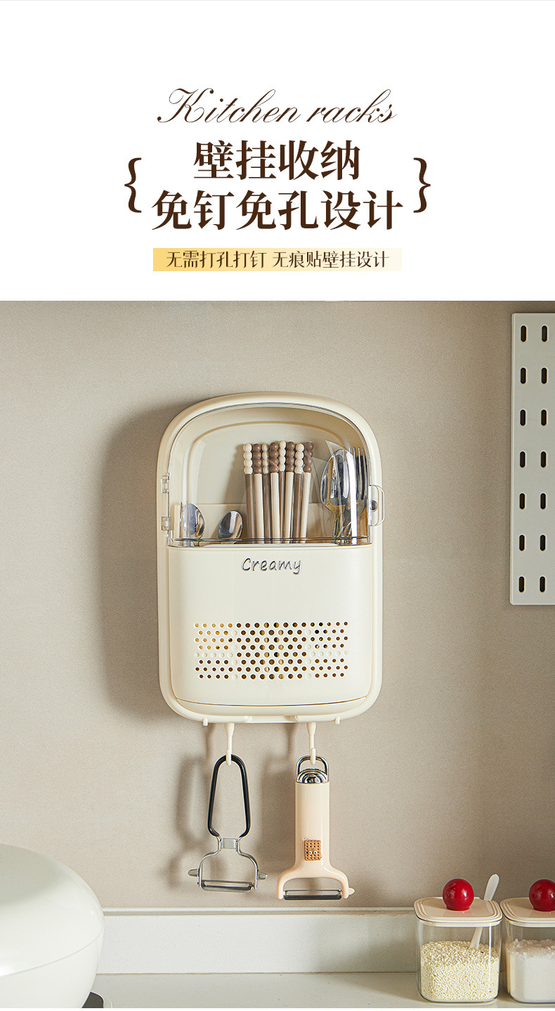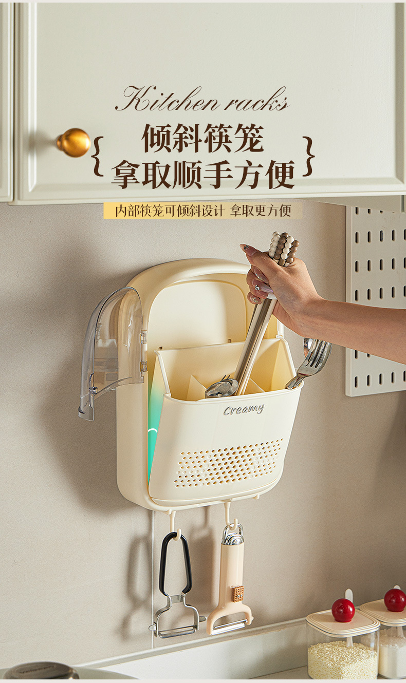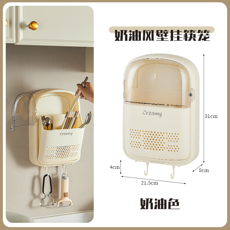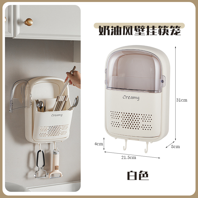 新品筷子筒置物架家用壁挂筷子篓厨房筷笼勺子防潮带盖沥水收纳盒