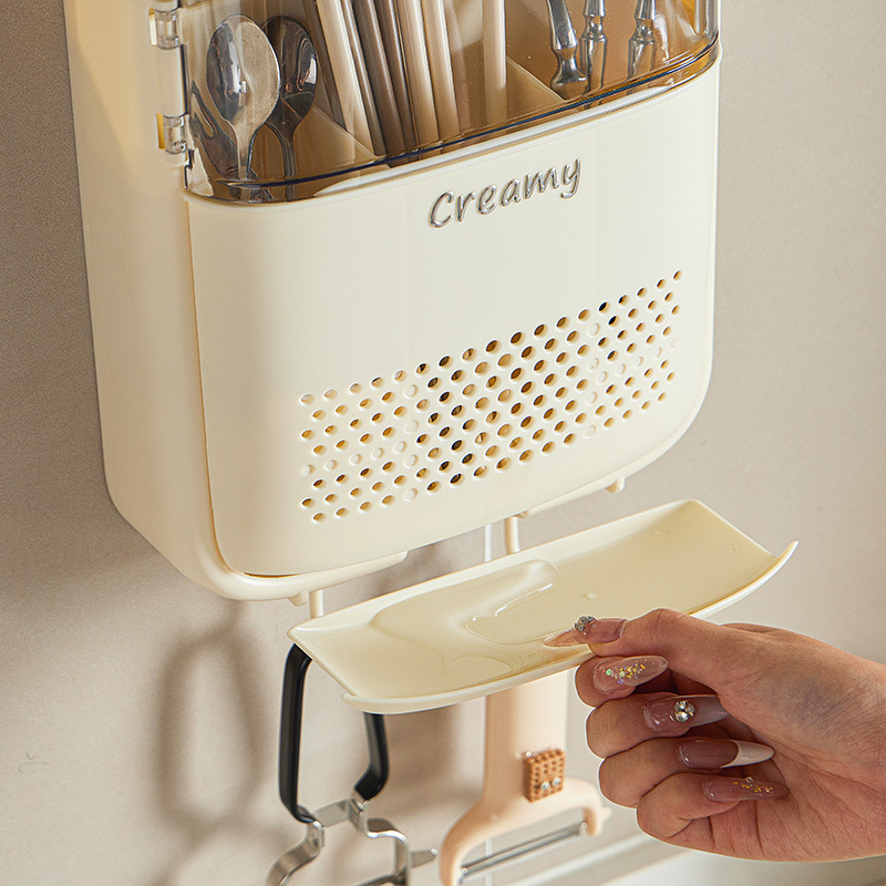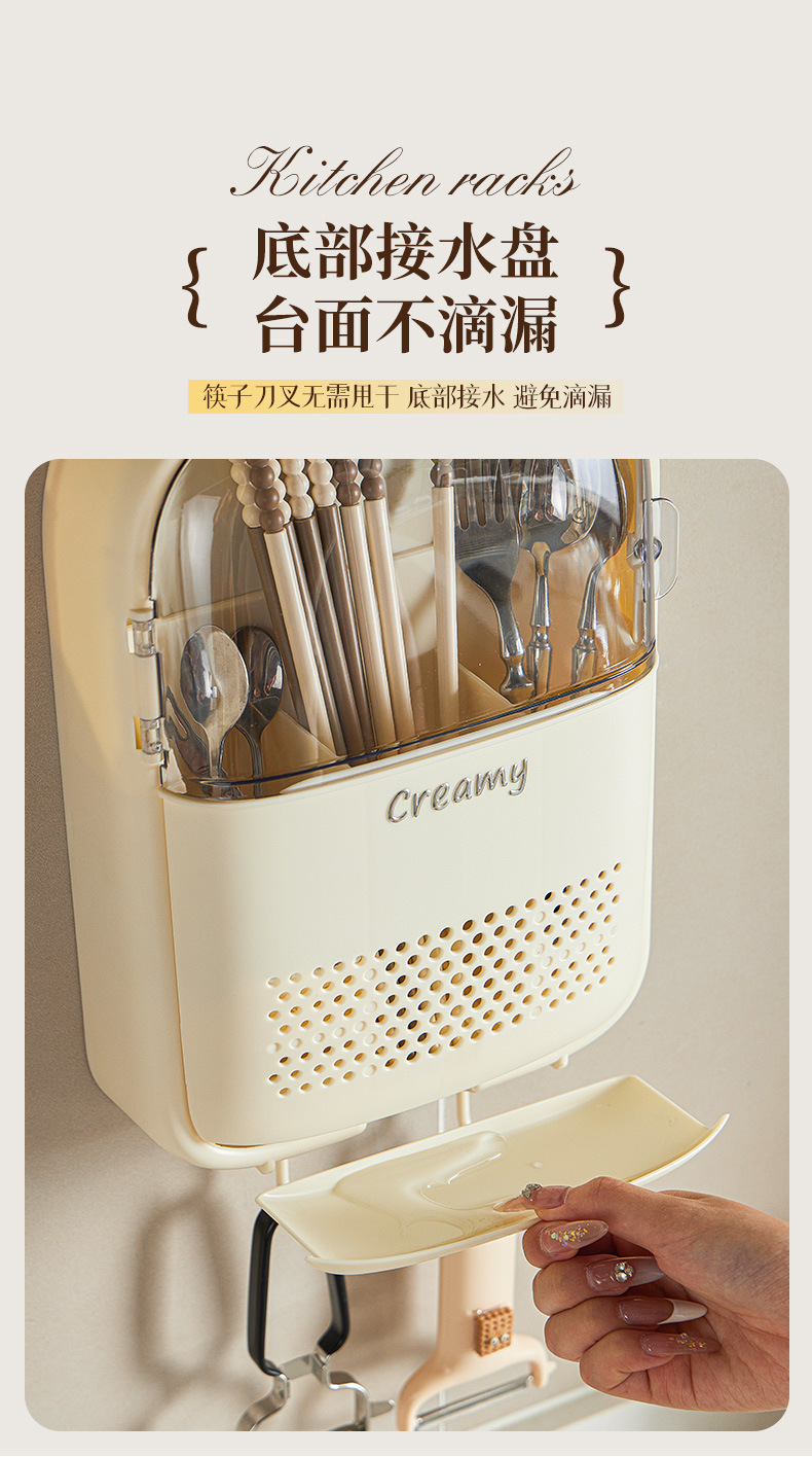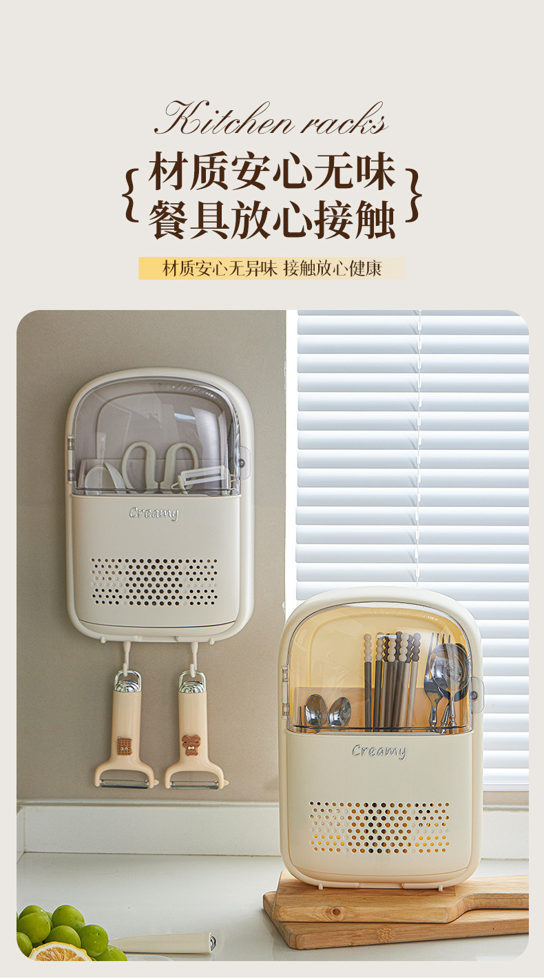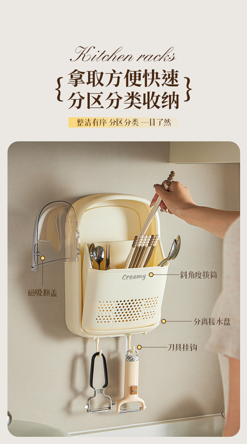 新品筷子筒置物架家用壁挂筷子篓厨房筷笼勺子防潮带盖沥水收纳盒