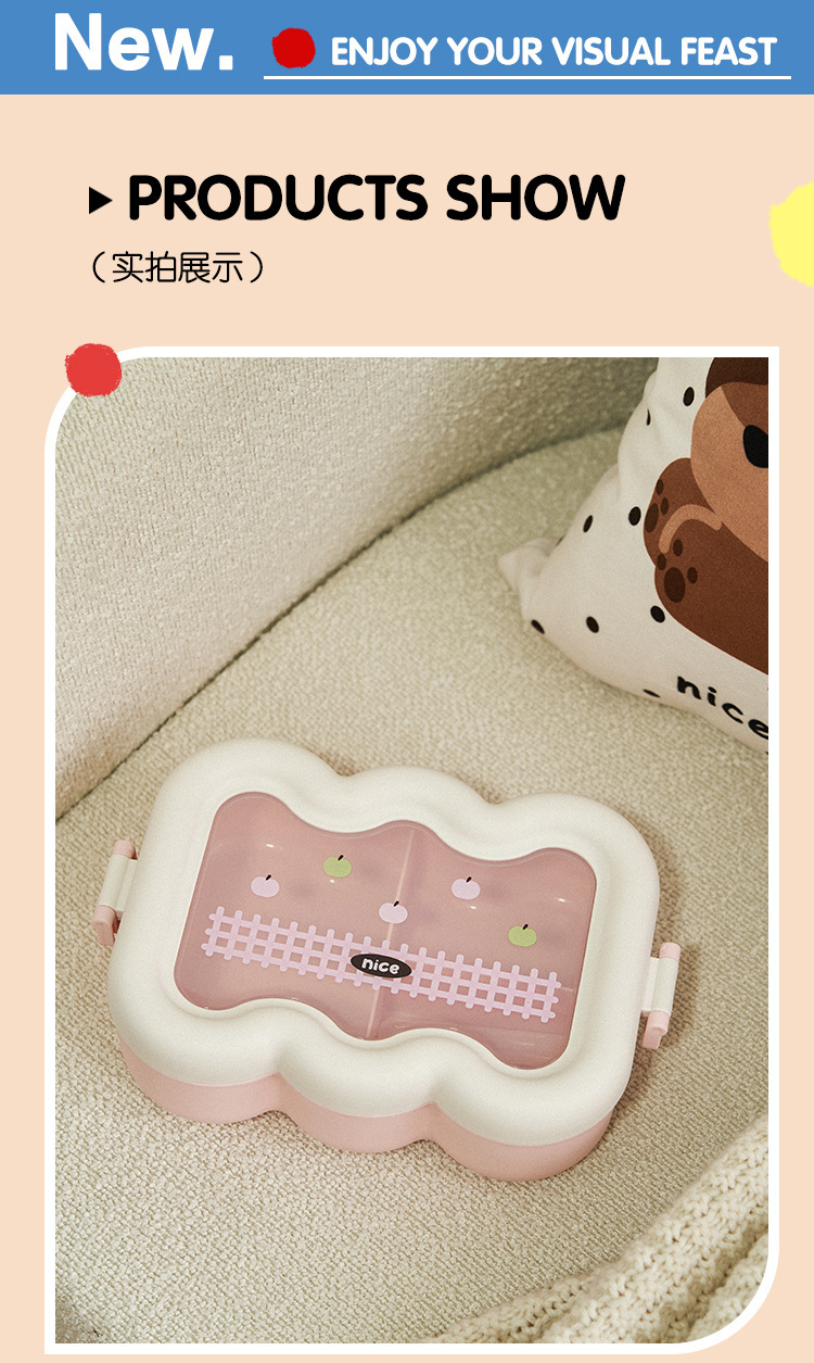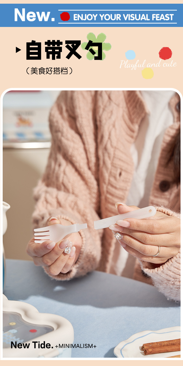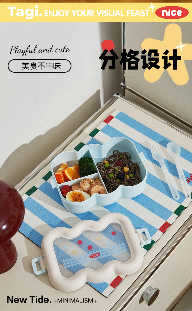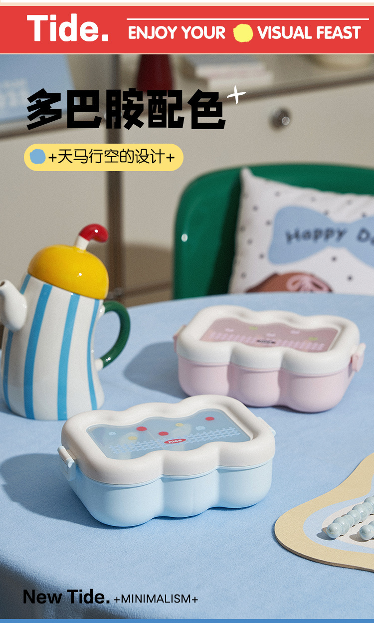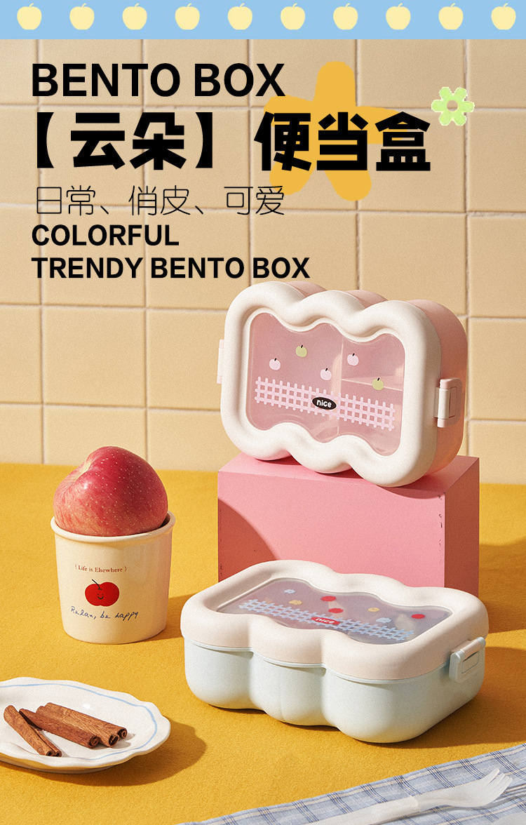 卡通云朵便当盒学生上班族微波炉分格饭盒食品级萌趣带餐具午餐盒