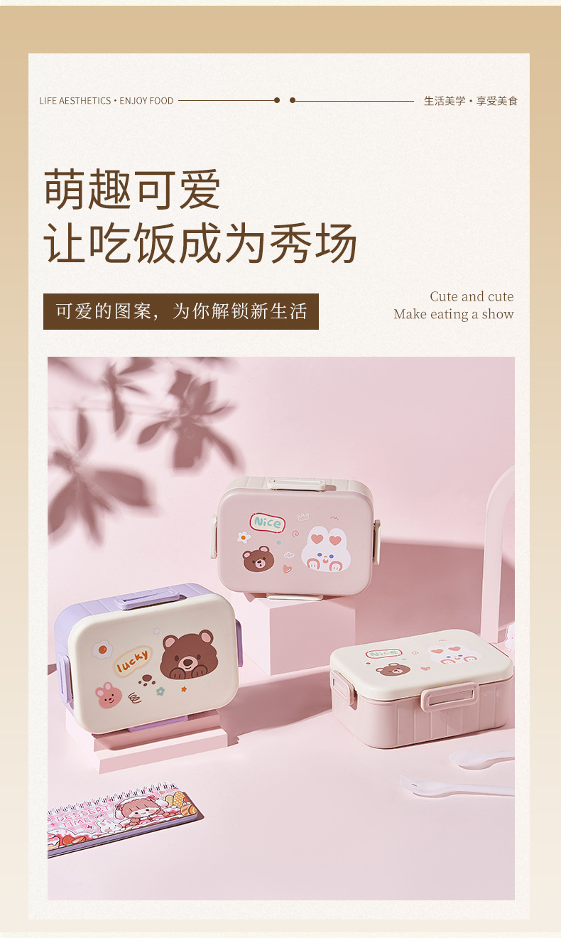 梓政新款上班族饭盒微波炉专用加热便当盒颜值汤杯小学生分格餐盒