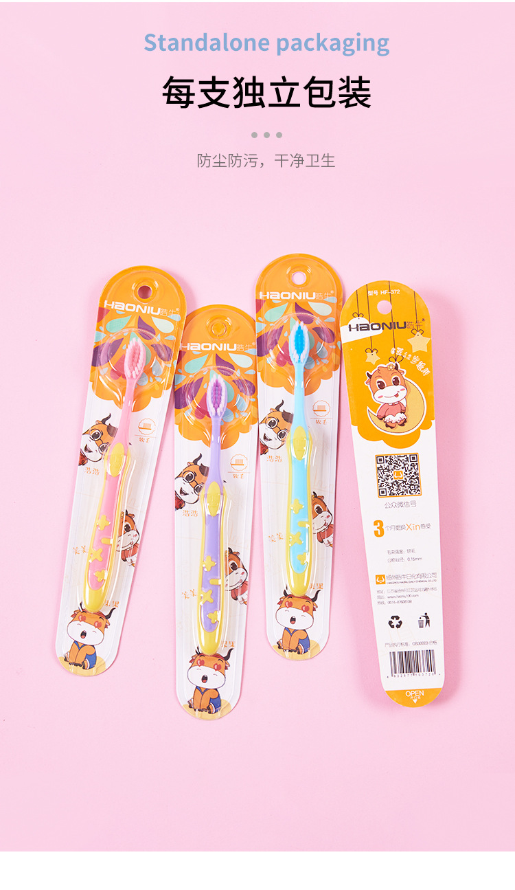 皓牛卡通牙刷厂家 吸塑纸卡装 6-12岁软毛儿童牙刷 宝宝牙刷