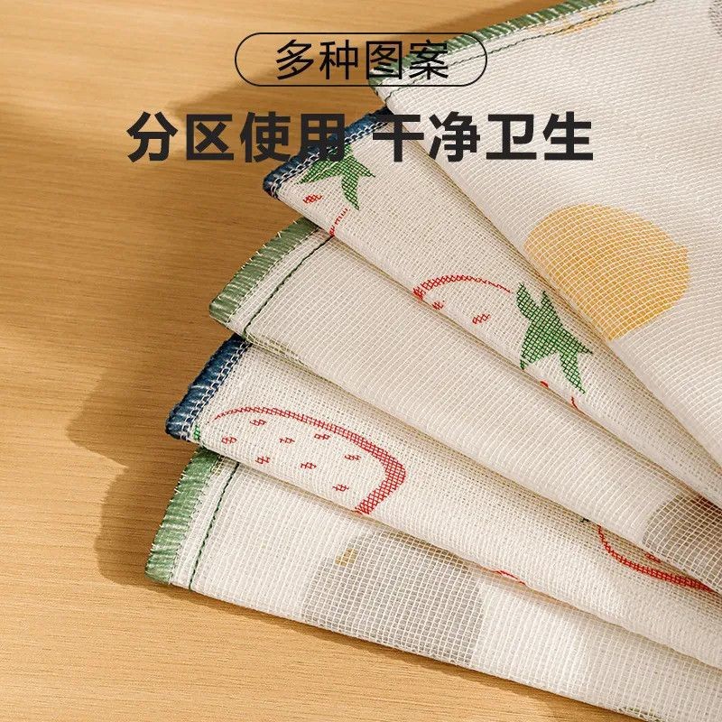 印花多层纯棉抹布不粘油吸水洗碗布多功能棉纱水果樱桃印花百洁布