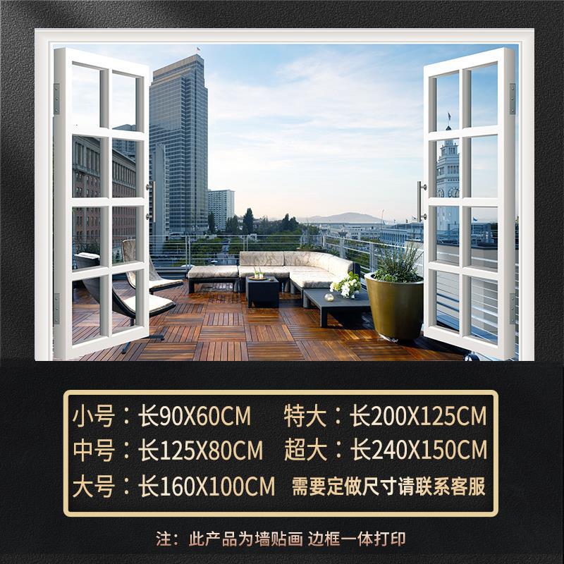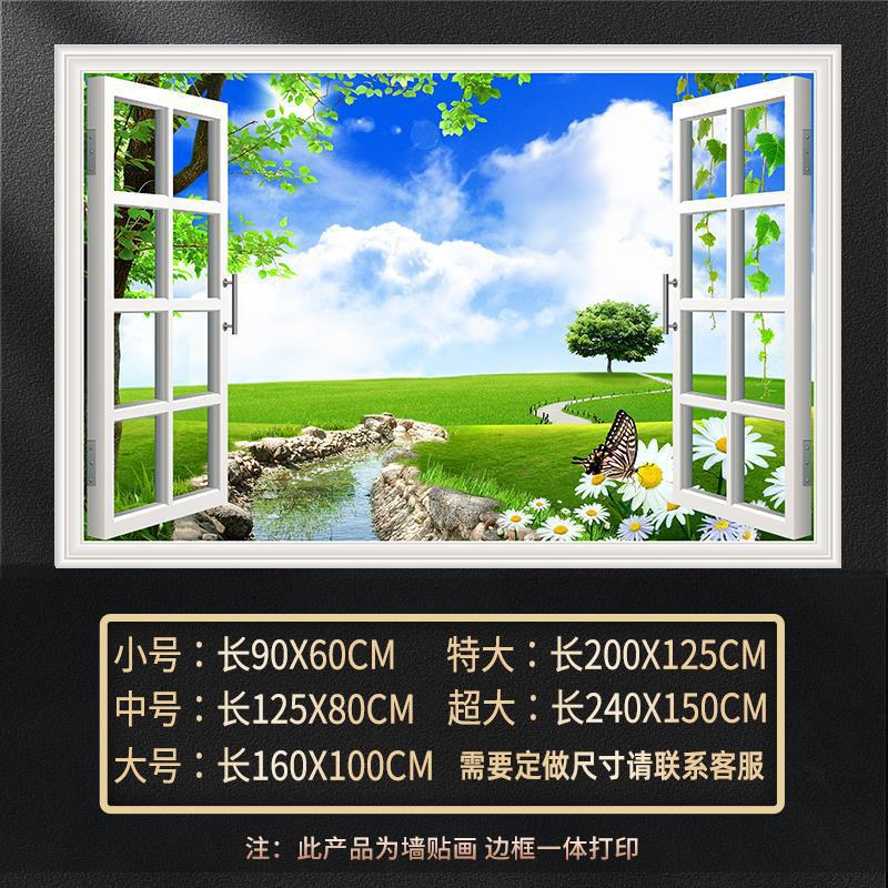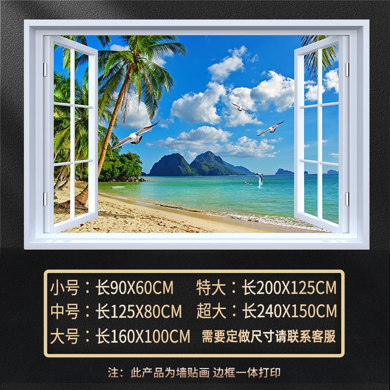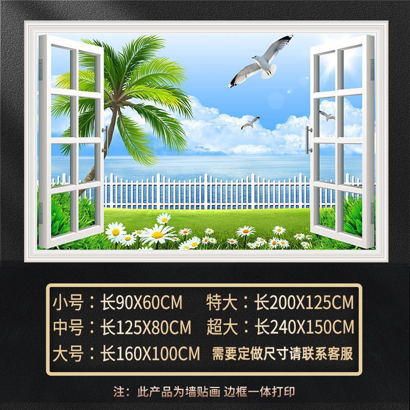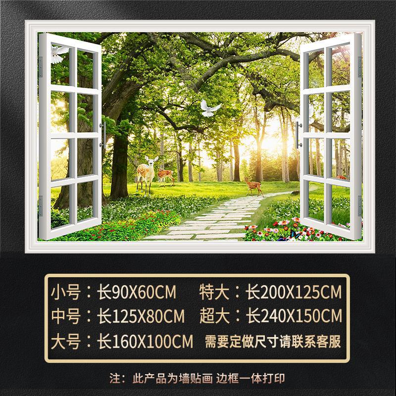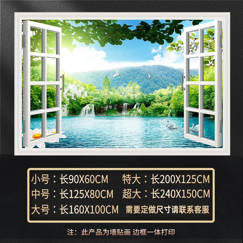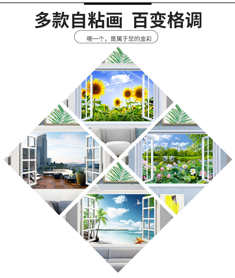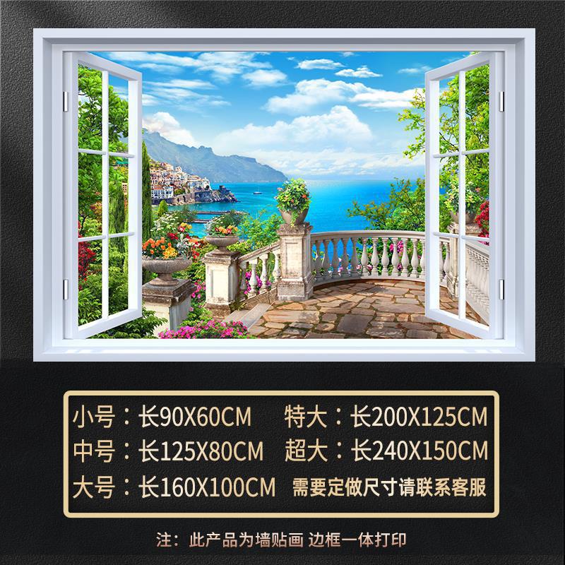 广东工厂仿真窗户风景画 沙发背景背胶墙贴画 防水自粘客厅装饰画