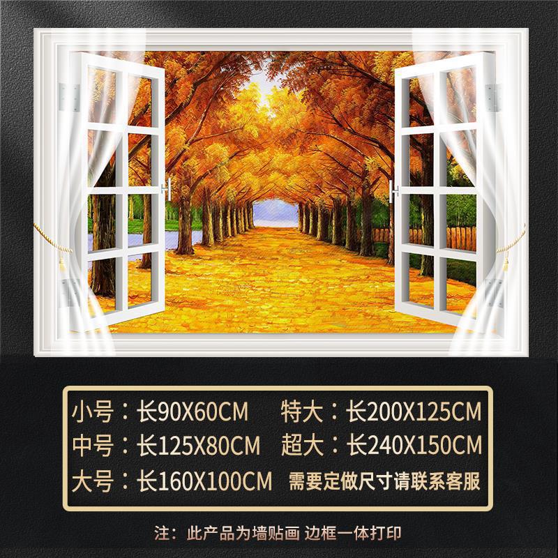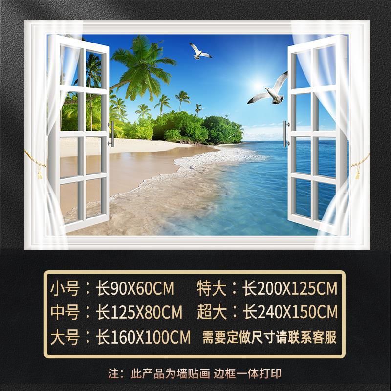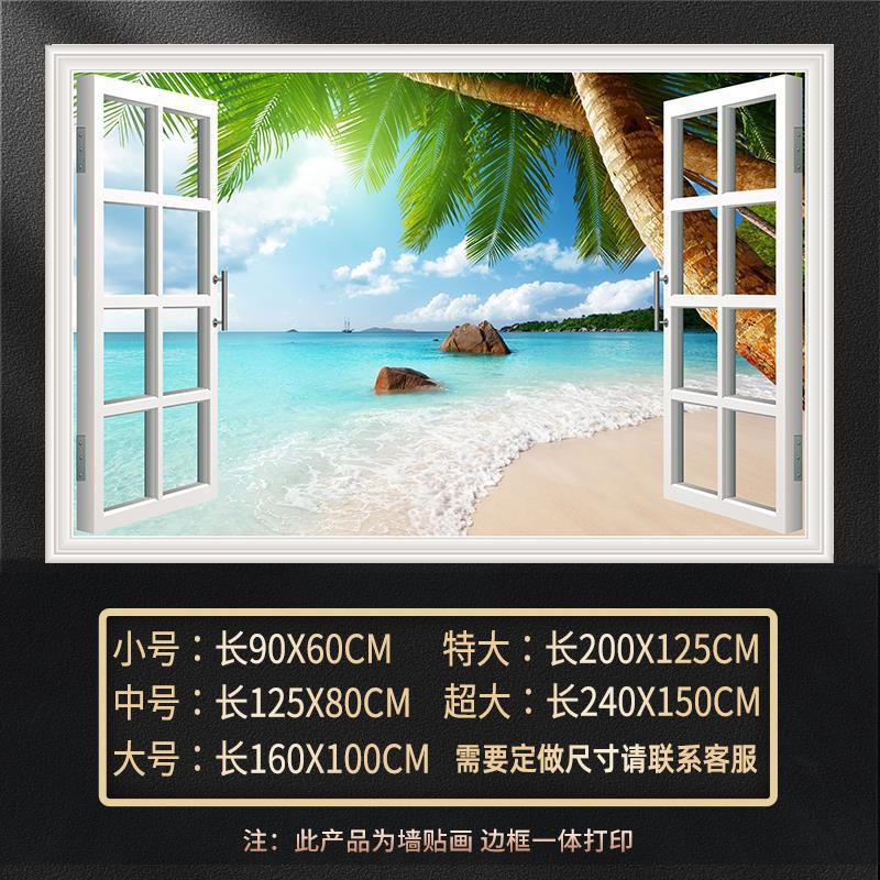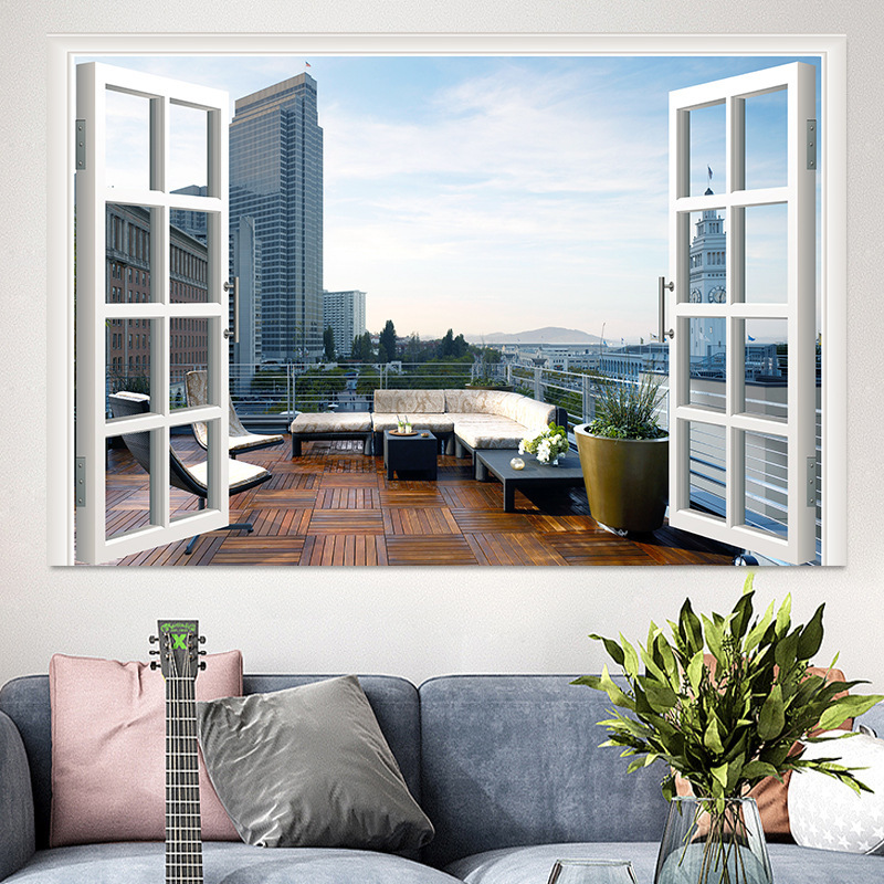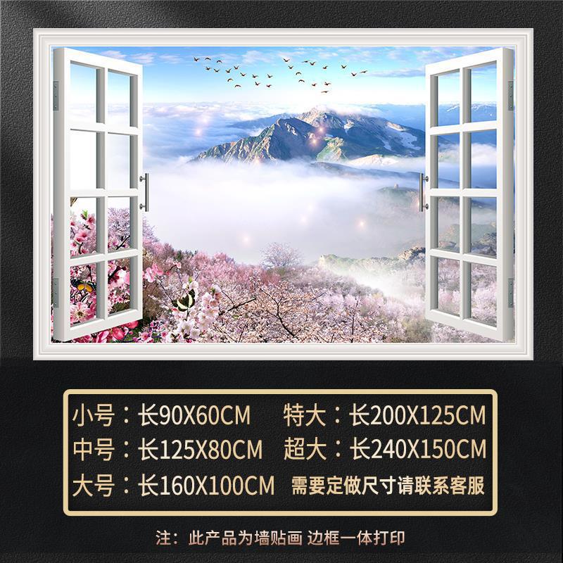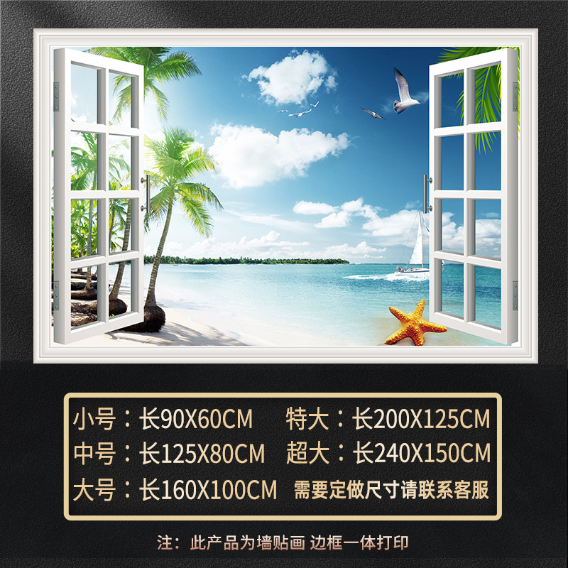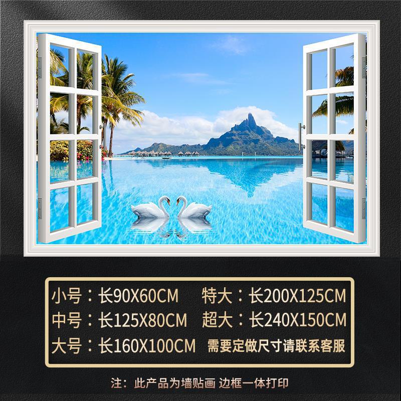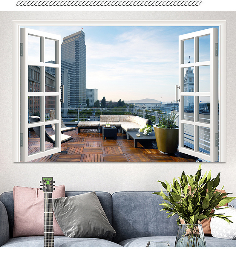 广东工厂仿真窗户风景画 沙发背景背胶墙贴画 防水自粘客厅装饰画