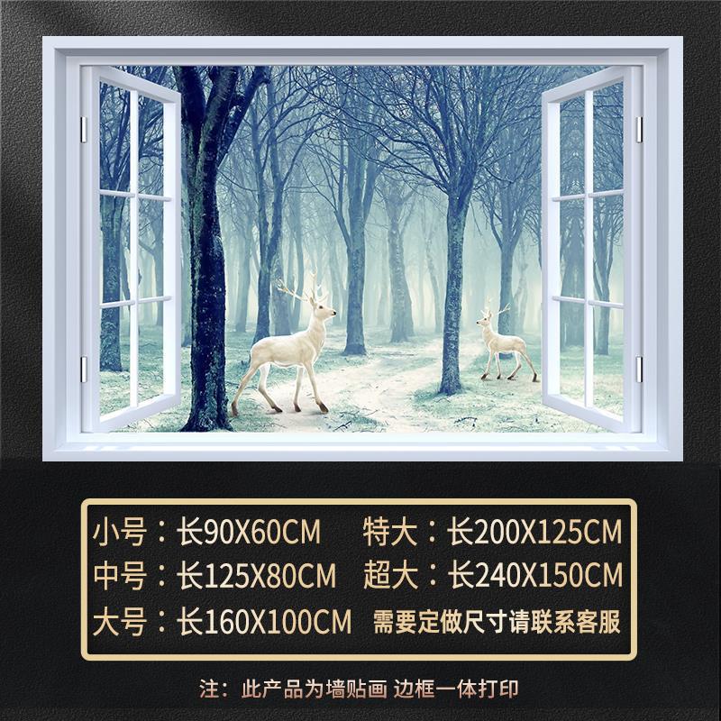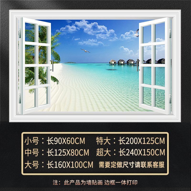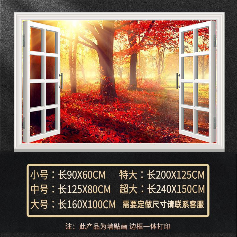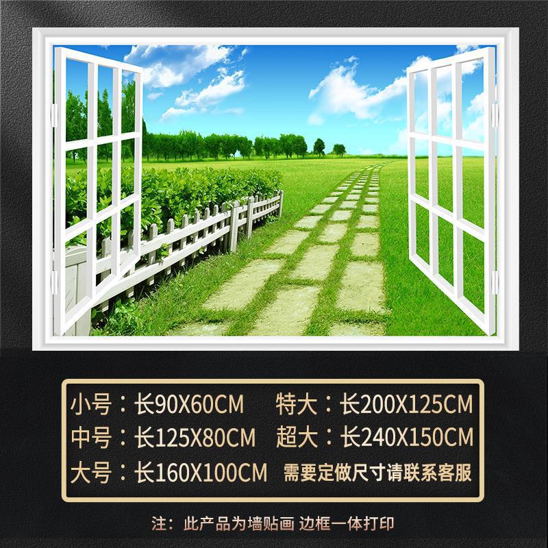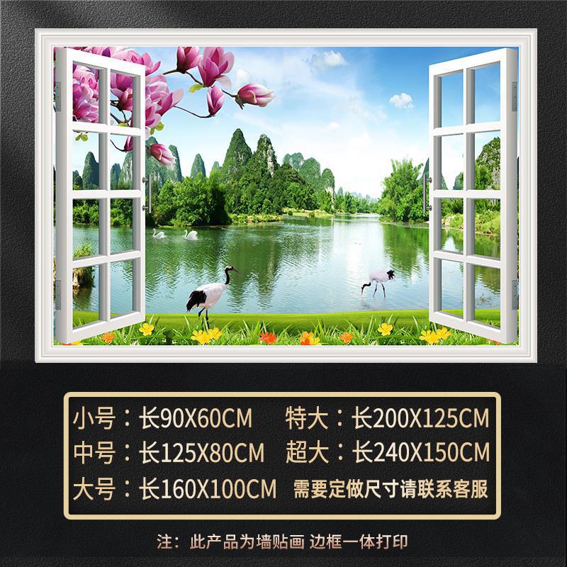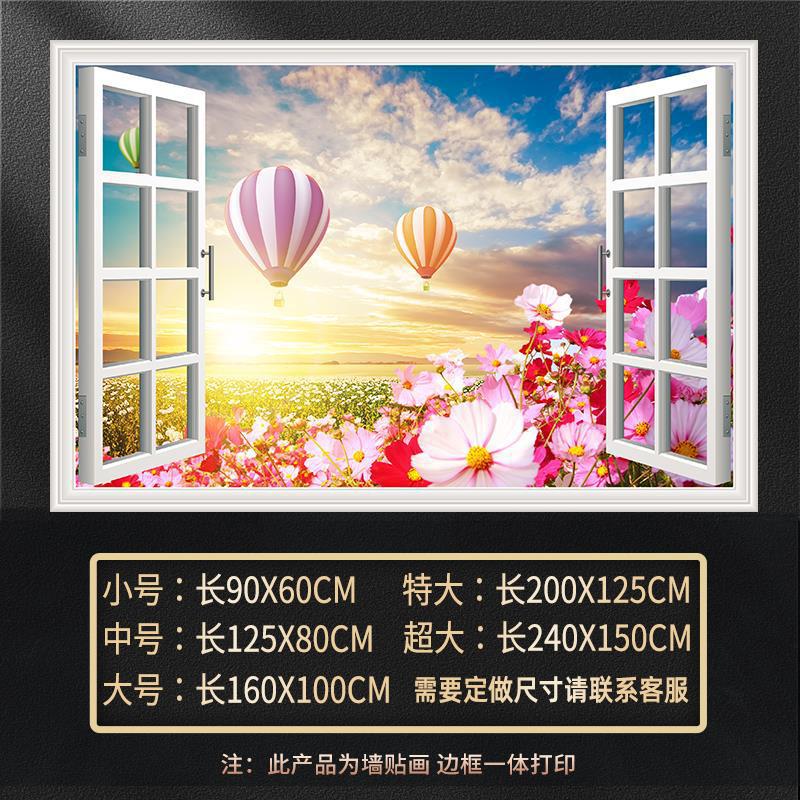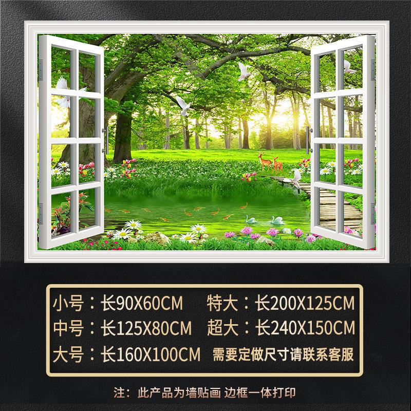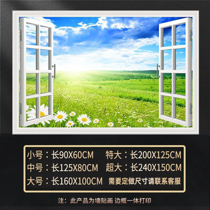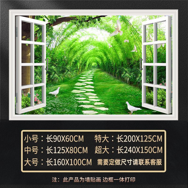 广东工厂仿真窗户风景画 沙发背景背胶墙贴画 防水自粘客厅装饰画
