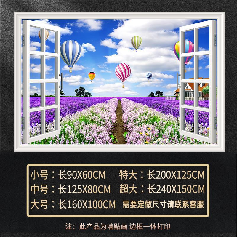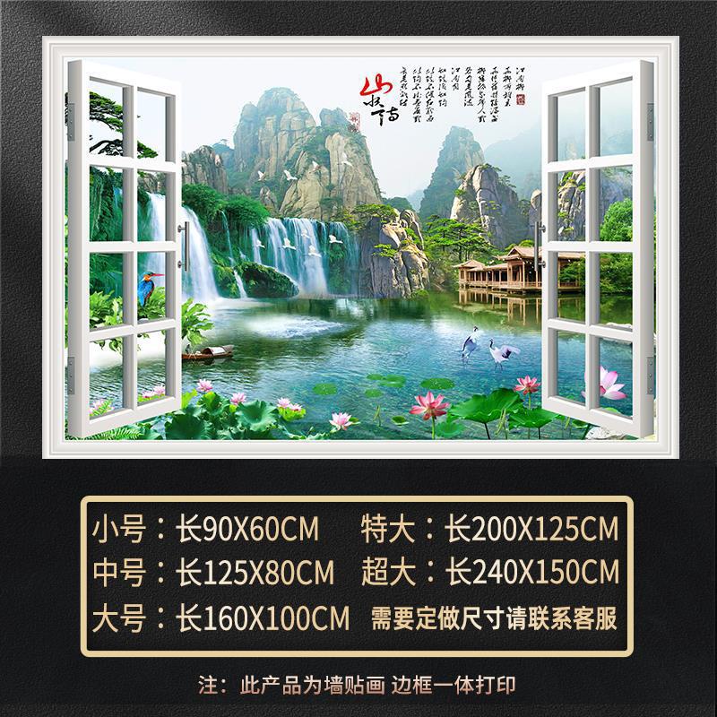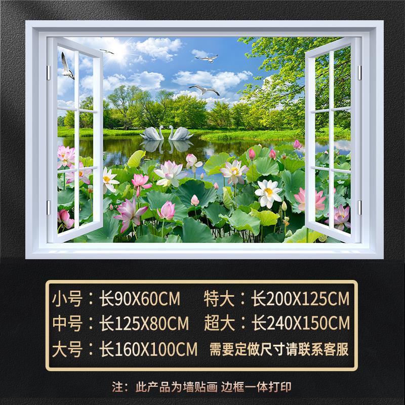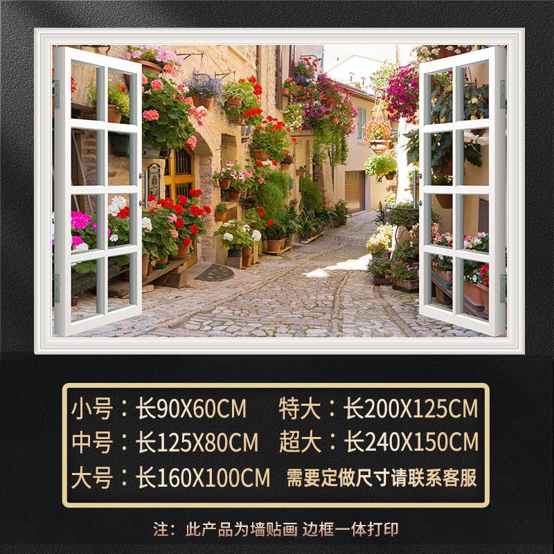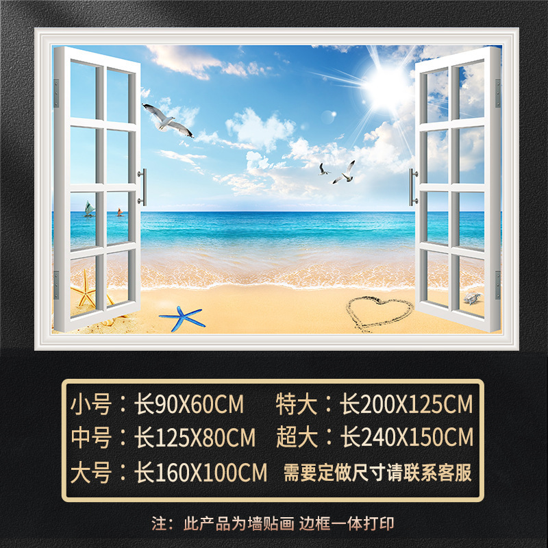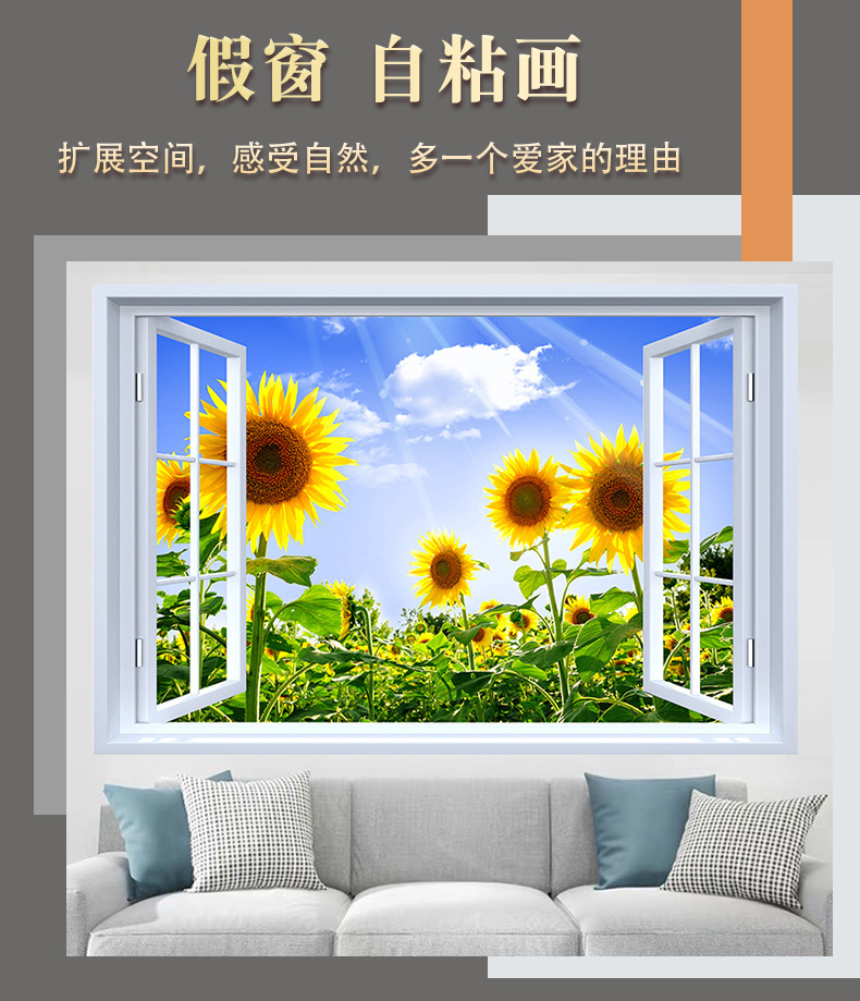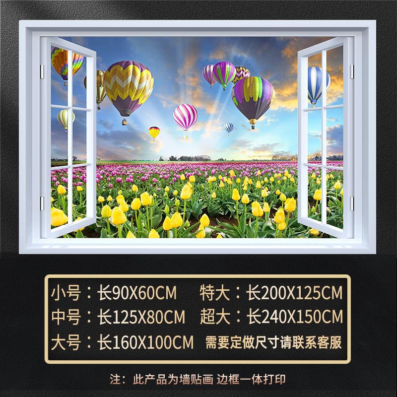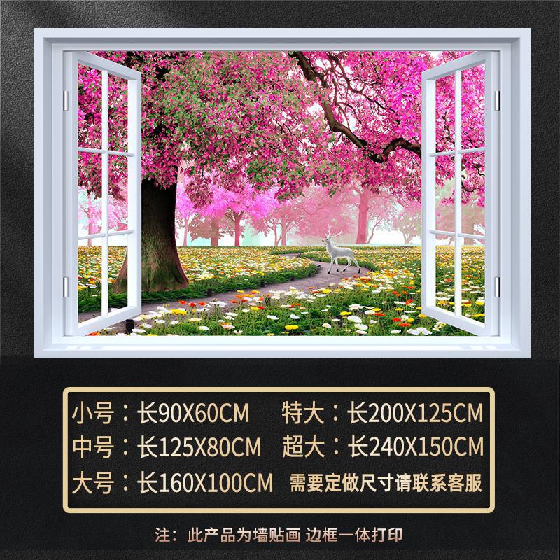 广东工厂仿真窗户风景画 沙发背景背胶墙贴画 防水自粘客厅装饰画