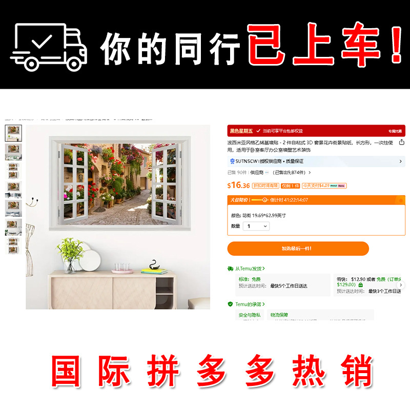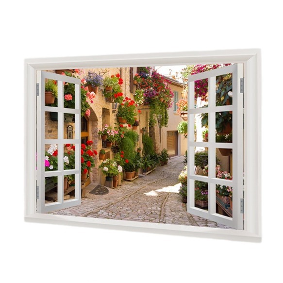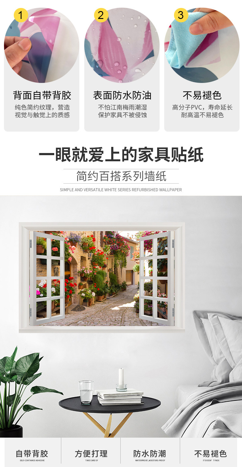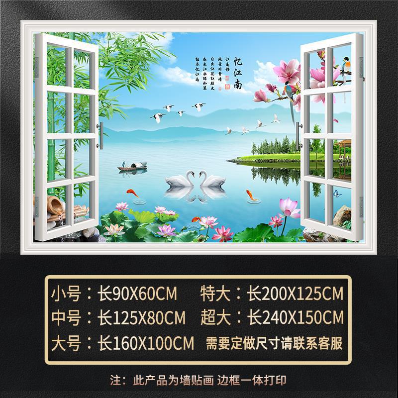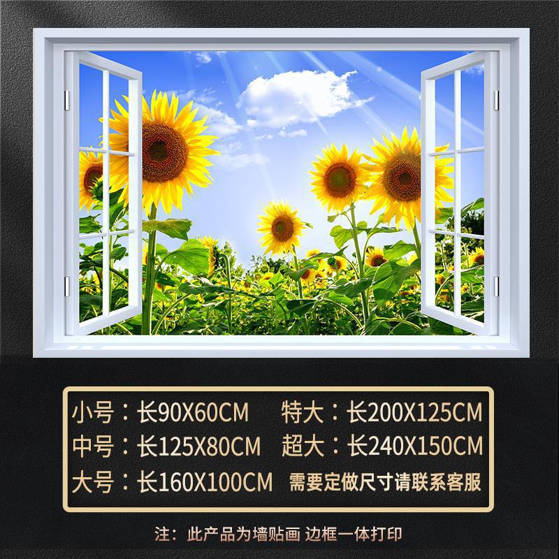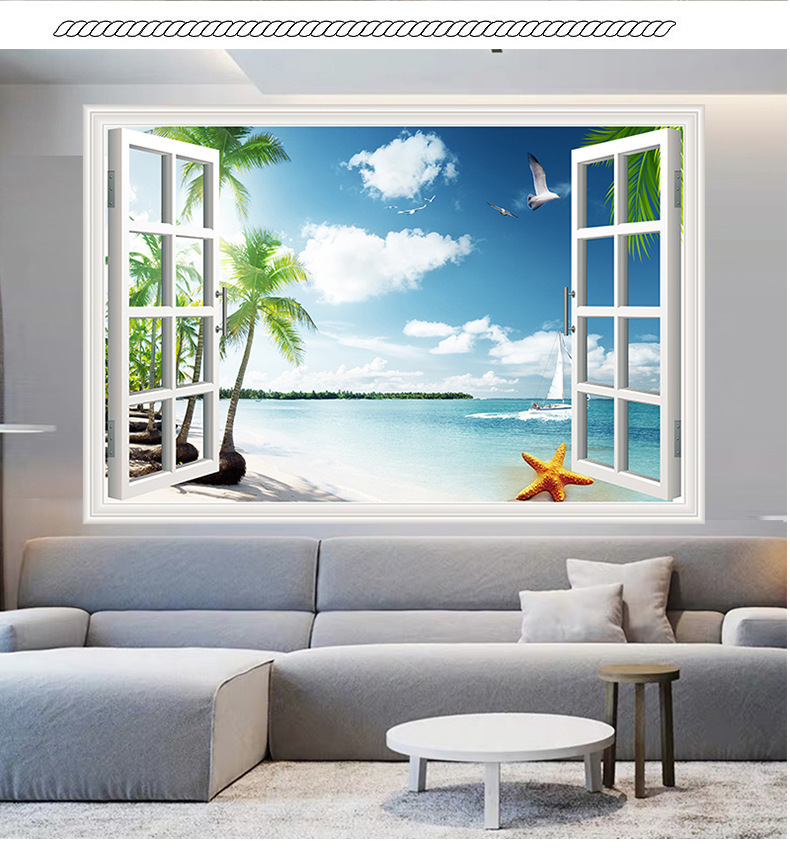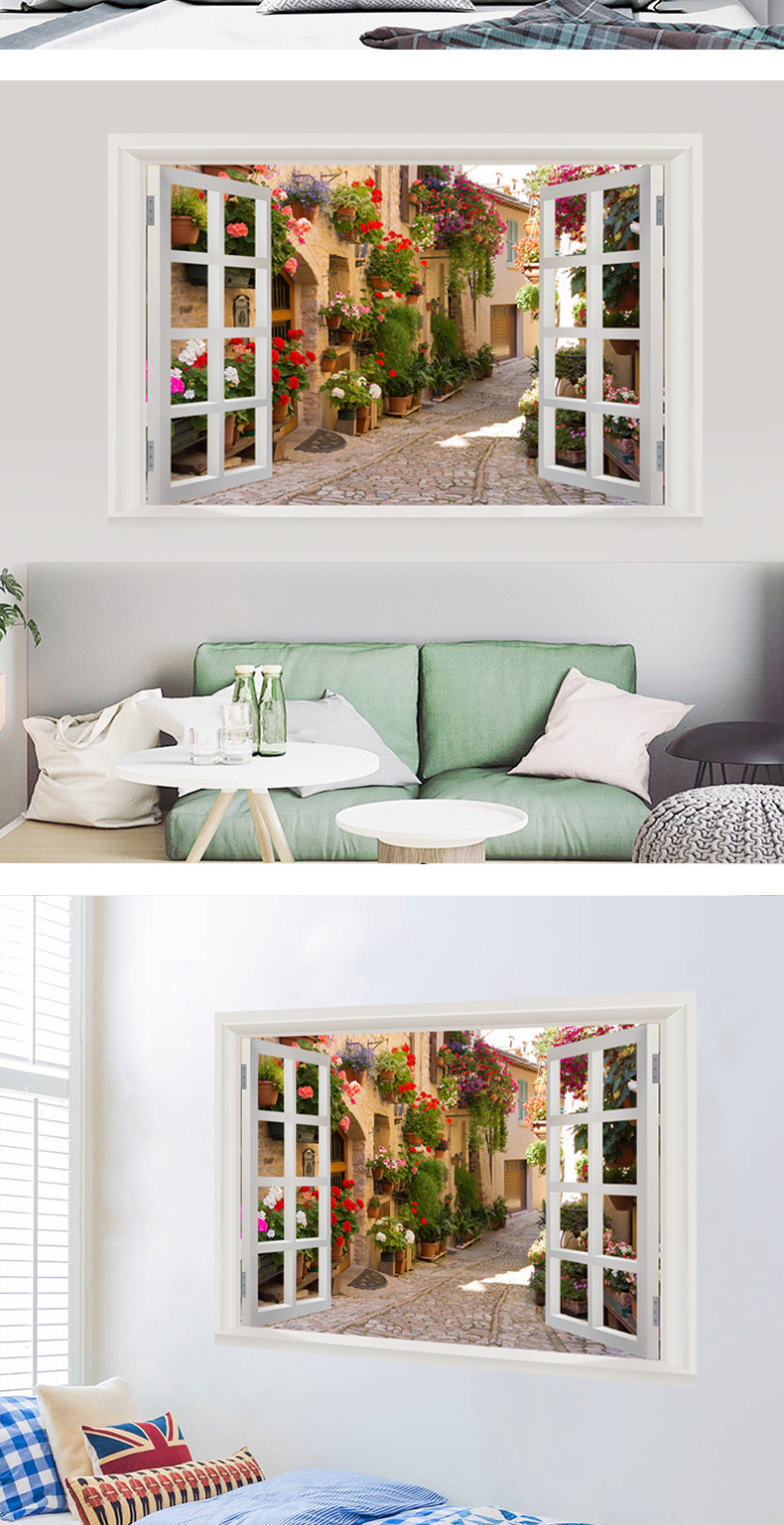 广东工厂仿真窗户风景画 沙发背景背胶墙贴画 防水自粘客厅装饰画