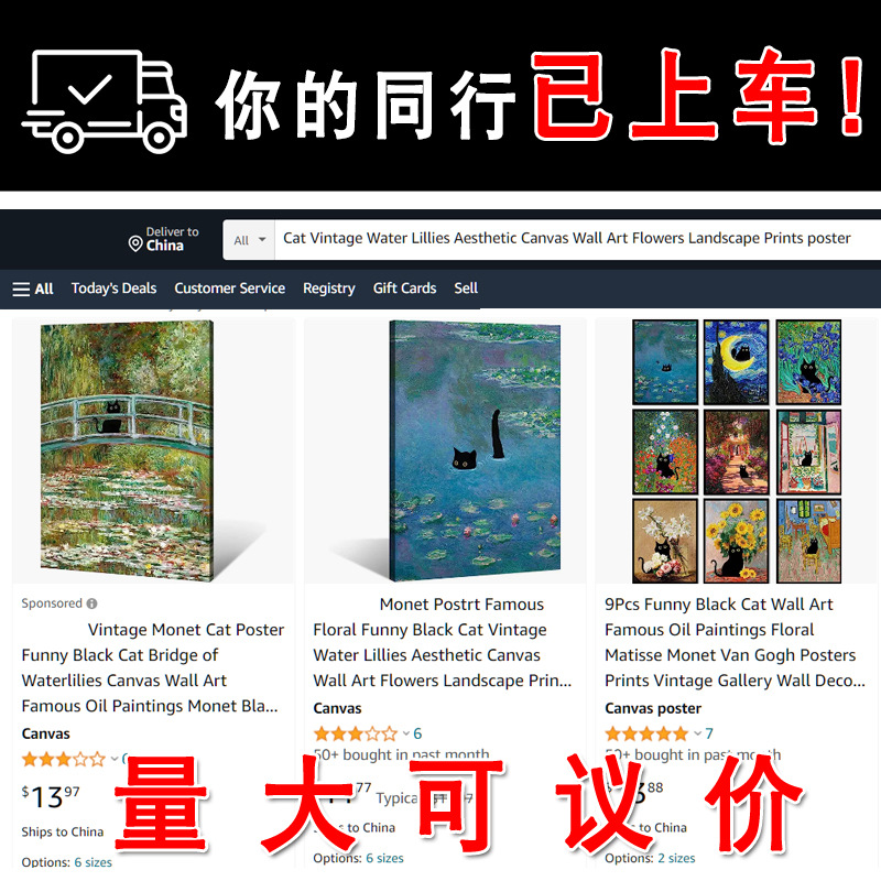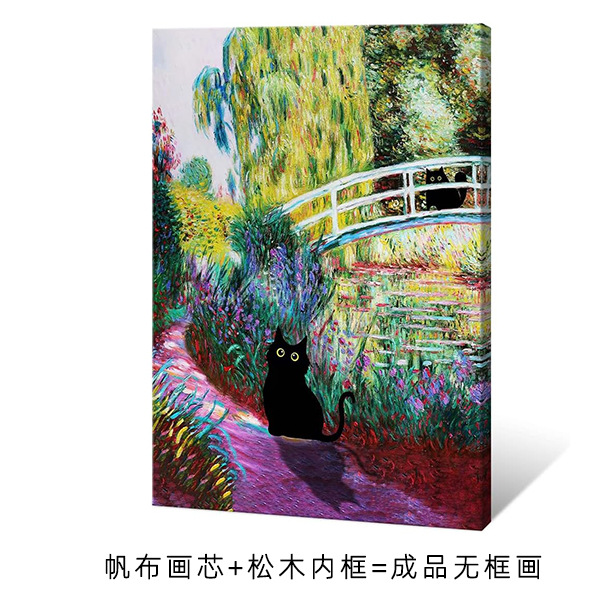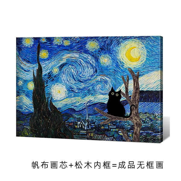 亚马逊睡莲花卉梵高星空艺术卧室挂画黑色猫咪彩色抽象客厅装饰画