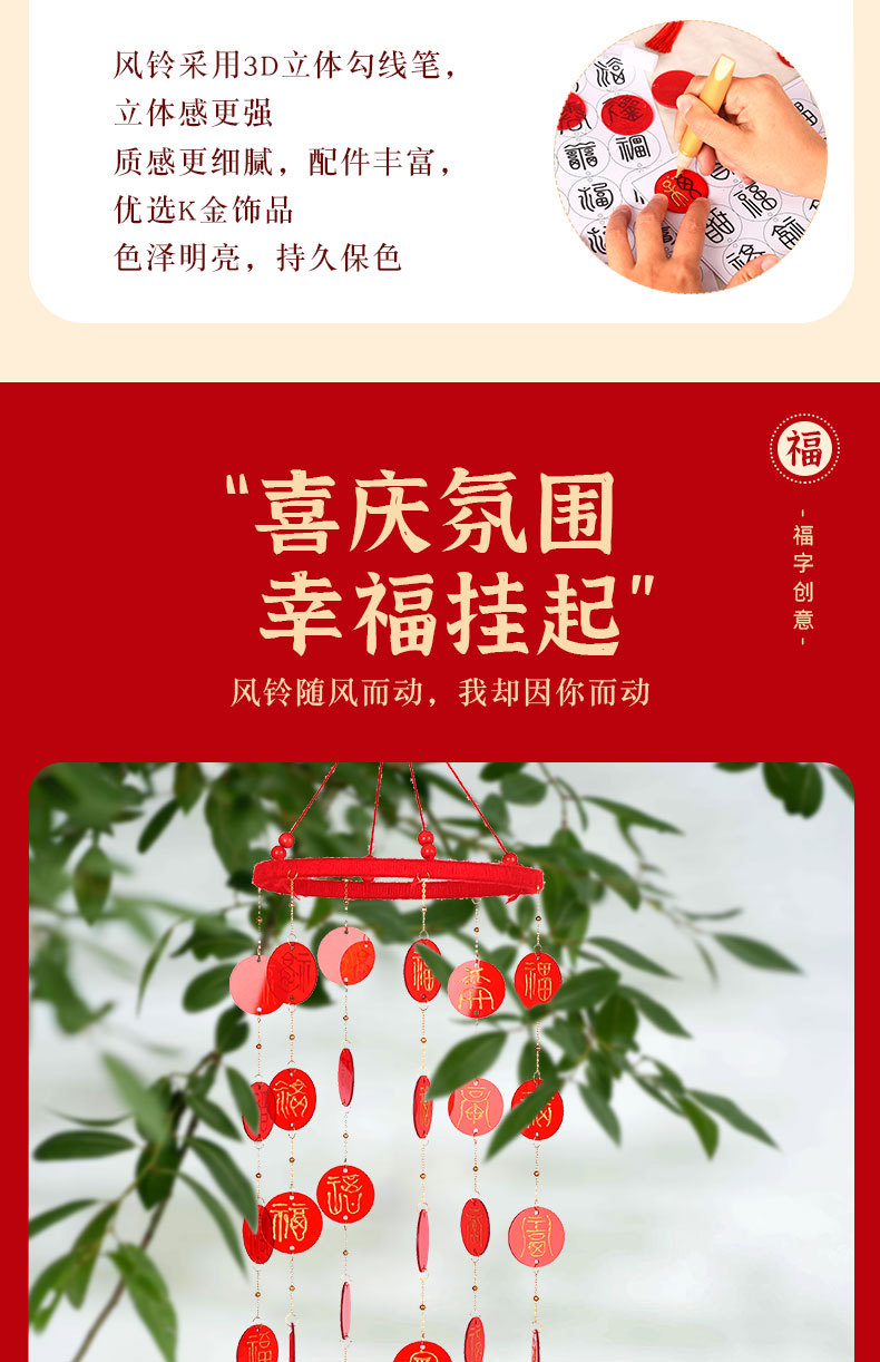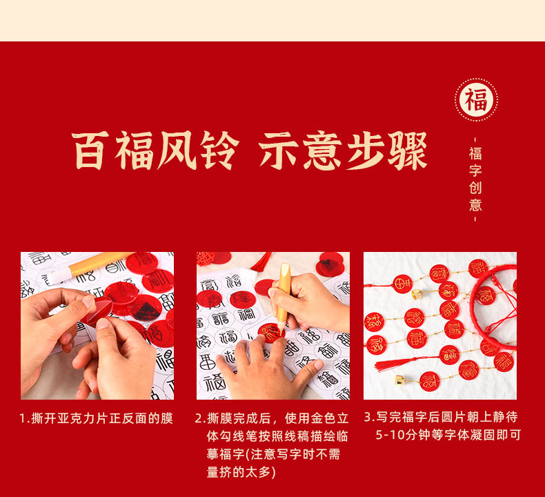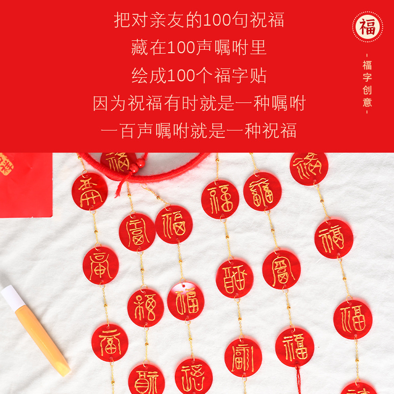 百福风铃中秋节手工diy手写福字创意挂件百福图材料暖场团建活动