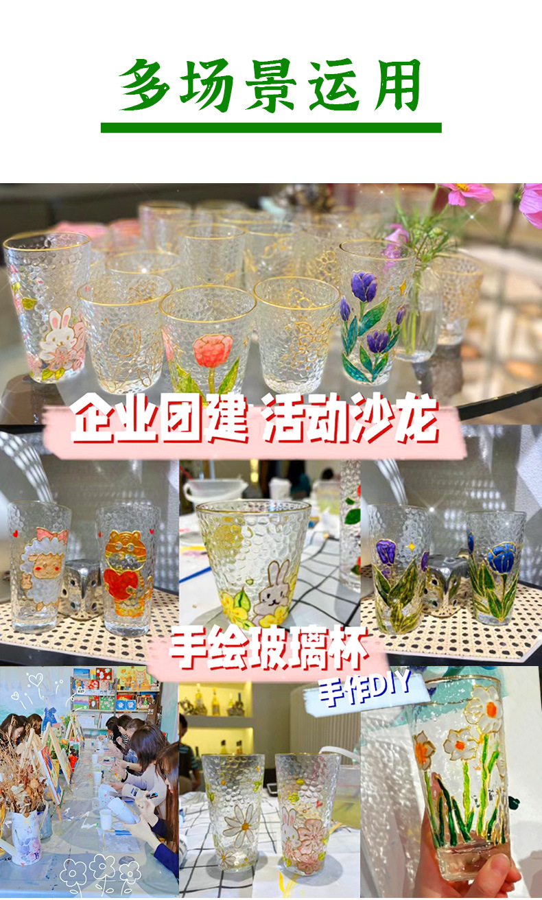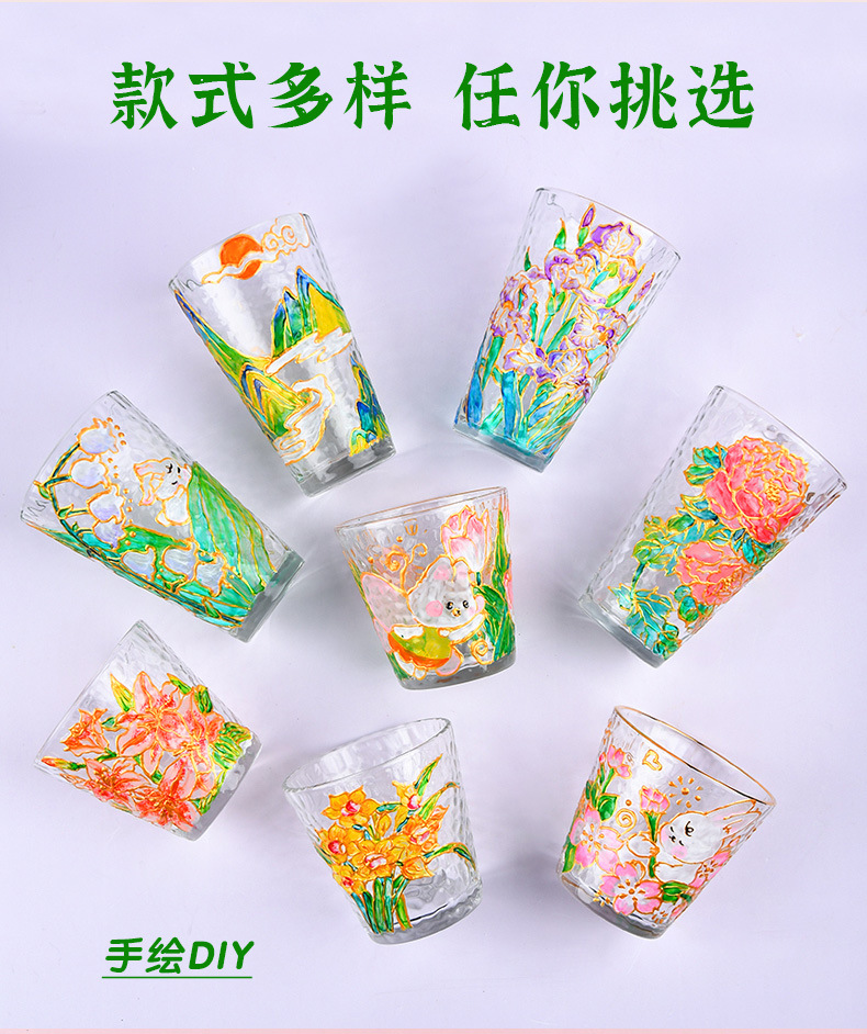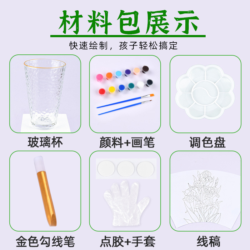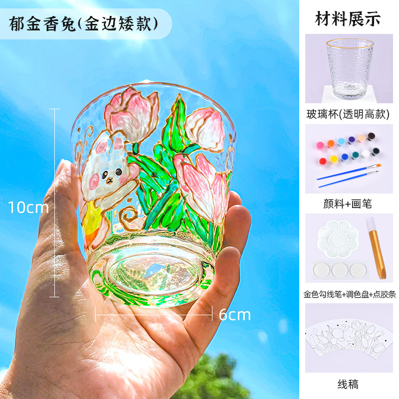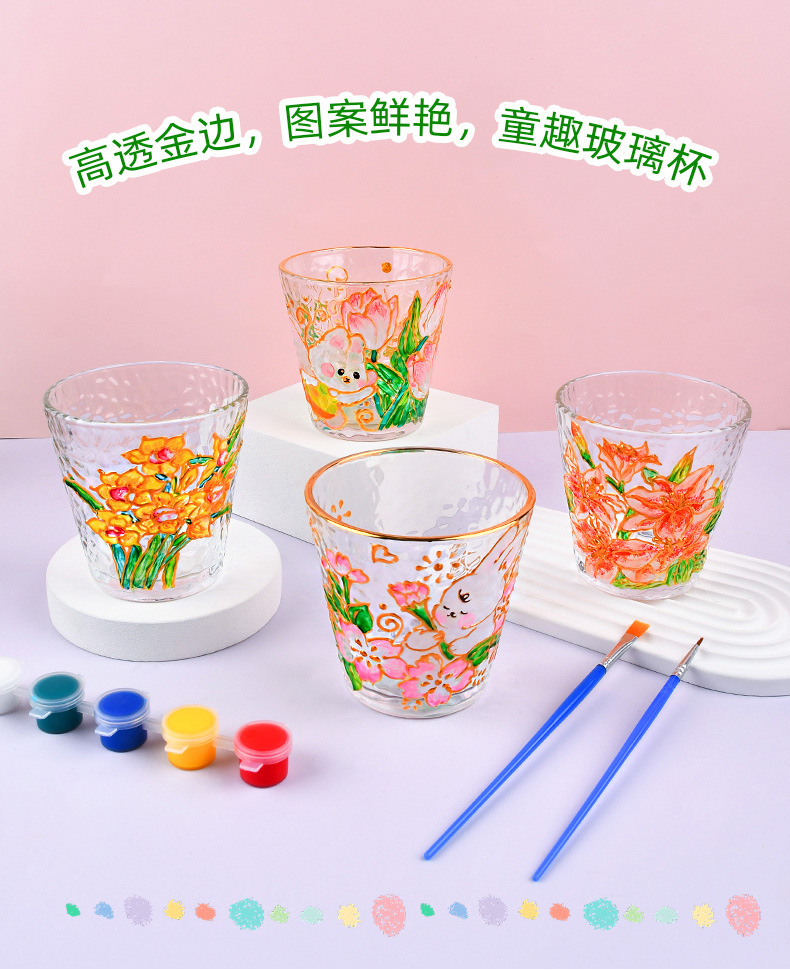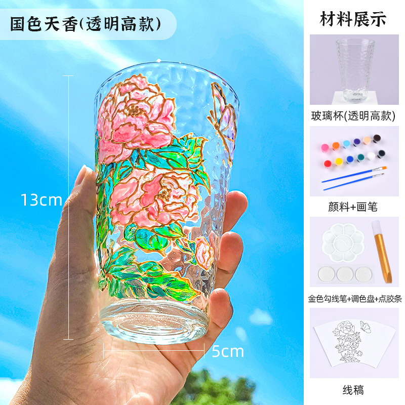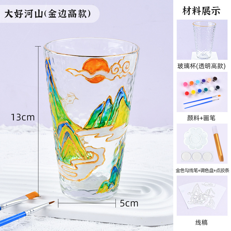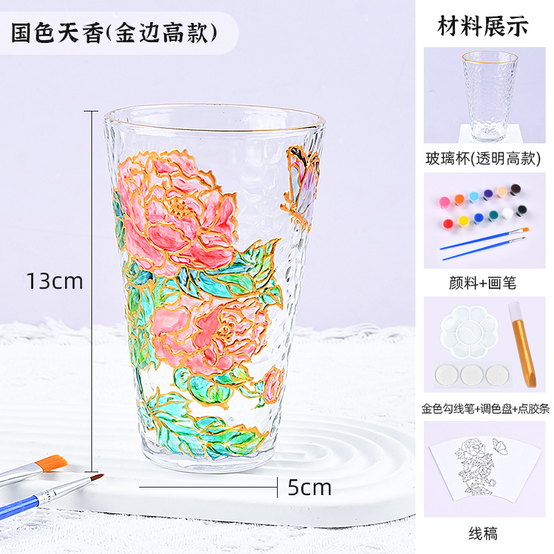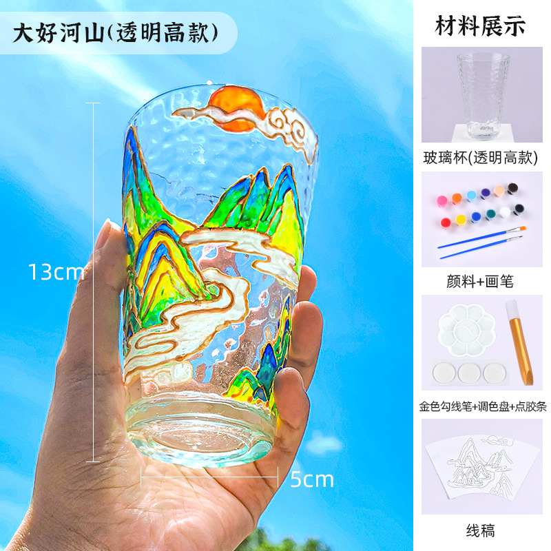 国庆节手绘玻璃杯diy填色暖场手工彩绘材料包创意金边锤纹装饰