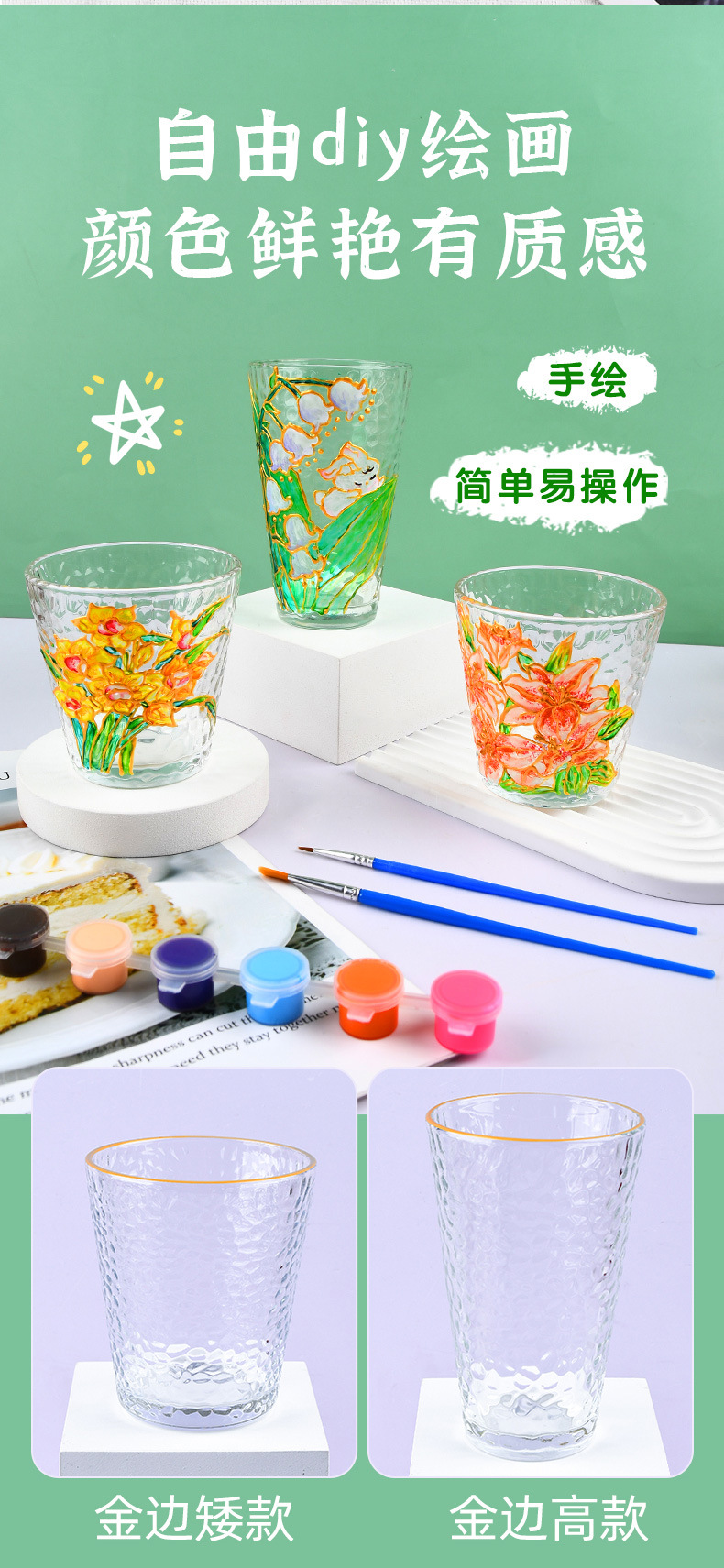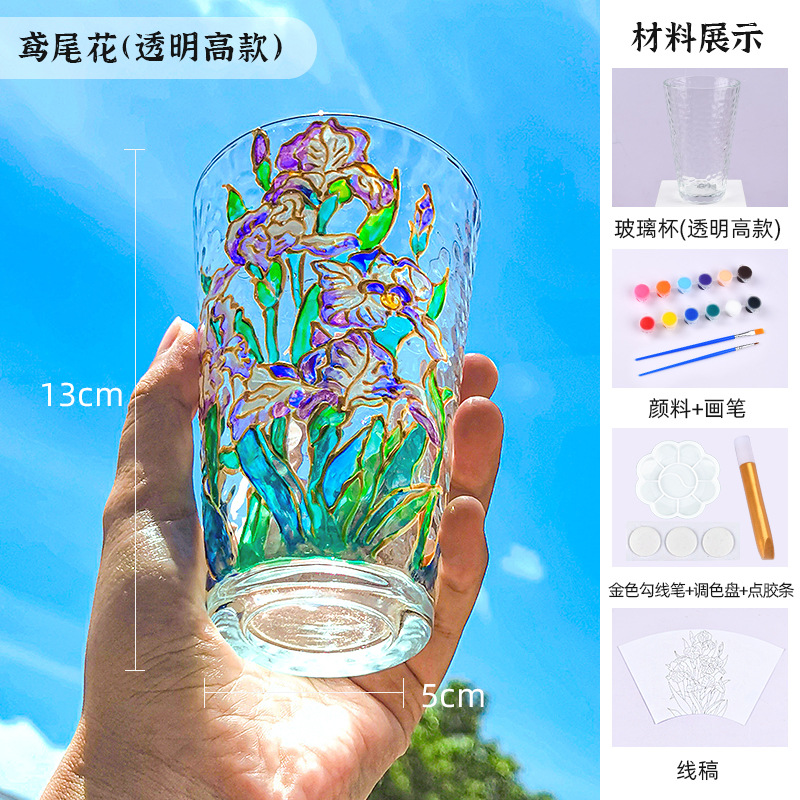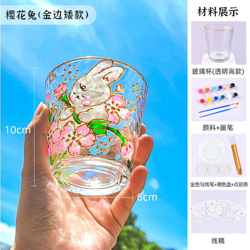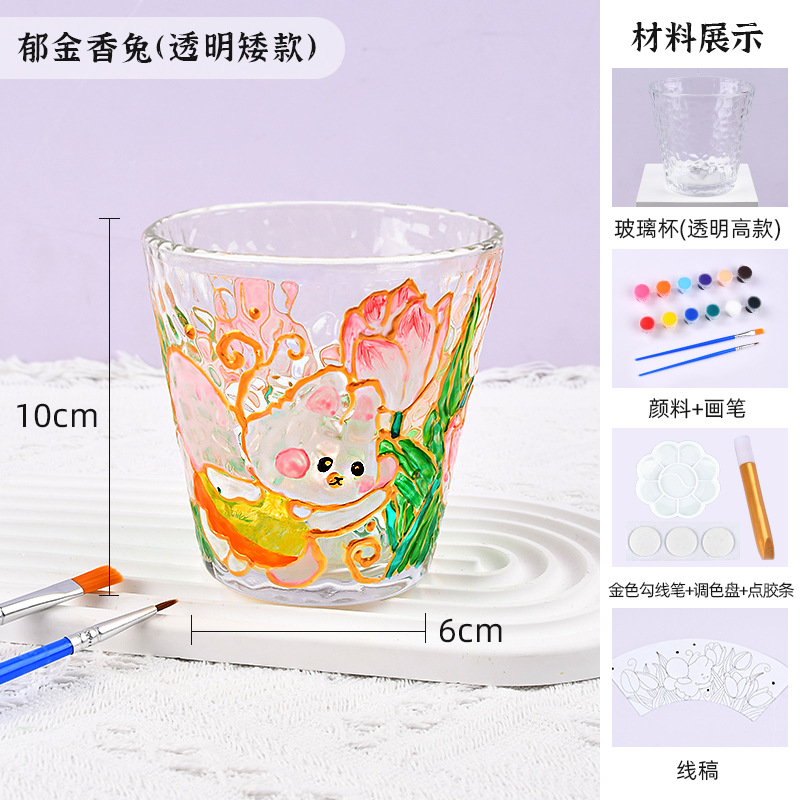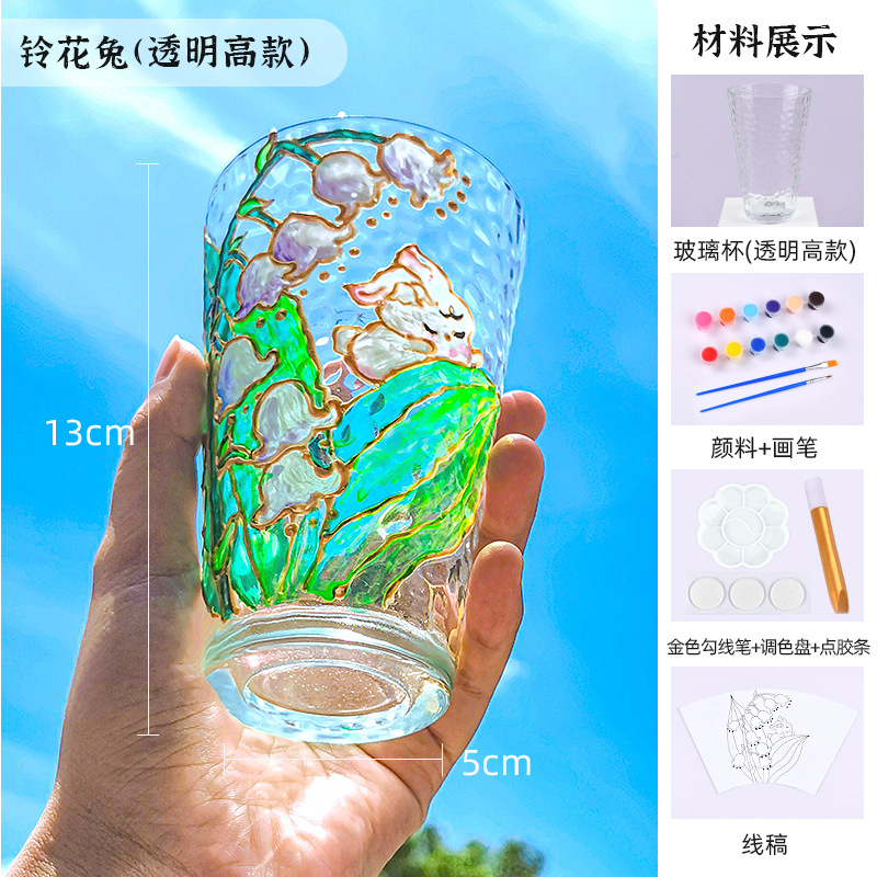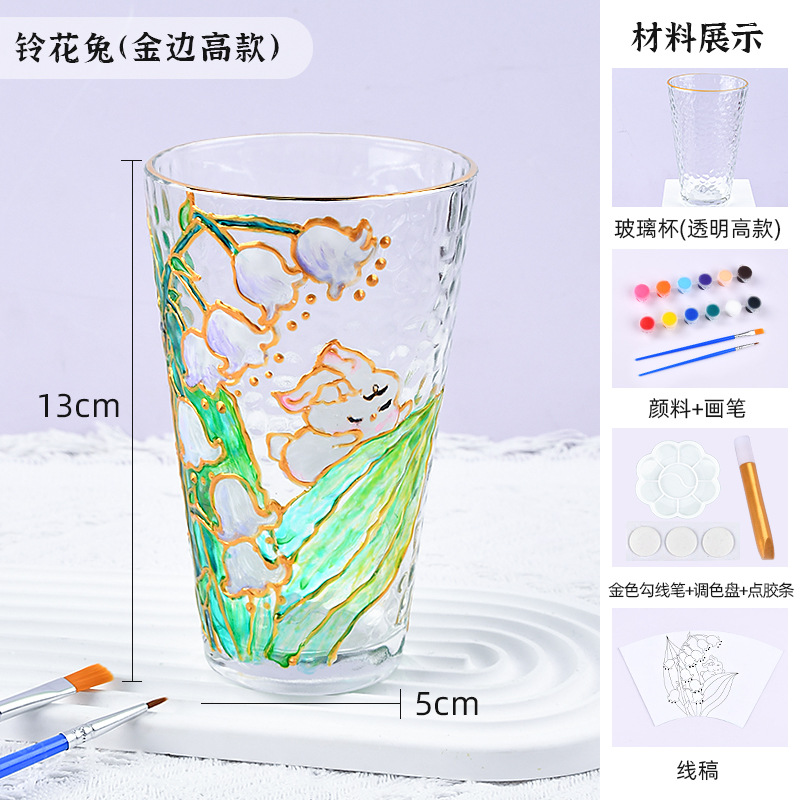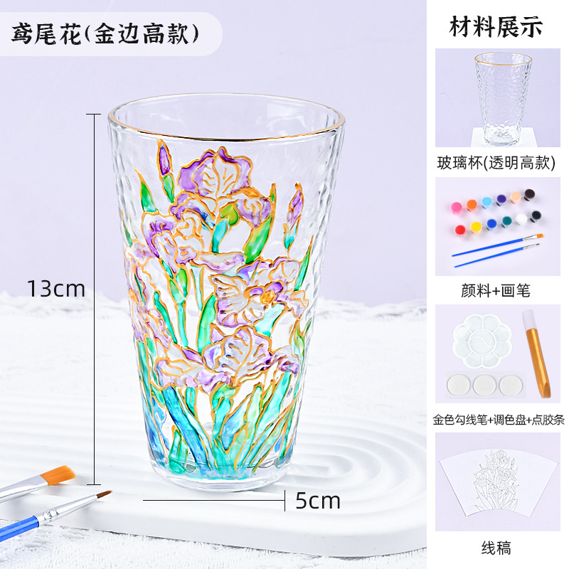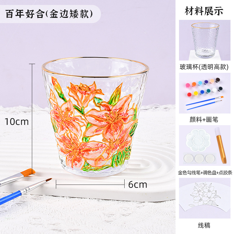国庆节手绘玻璃杯diy填色暖场手工彩绘材料包创意金边锤纹装饰