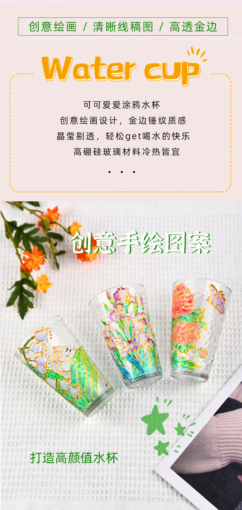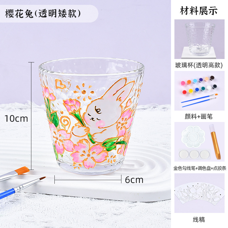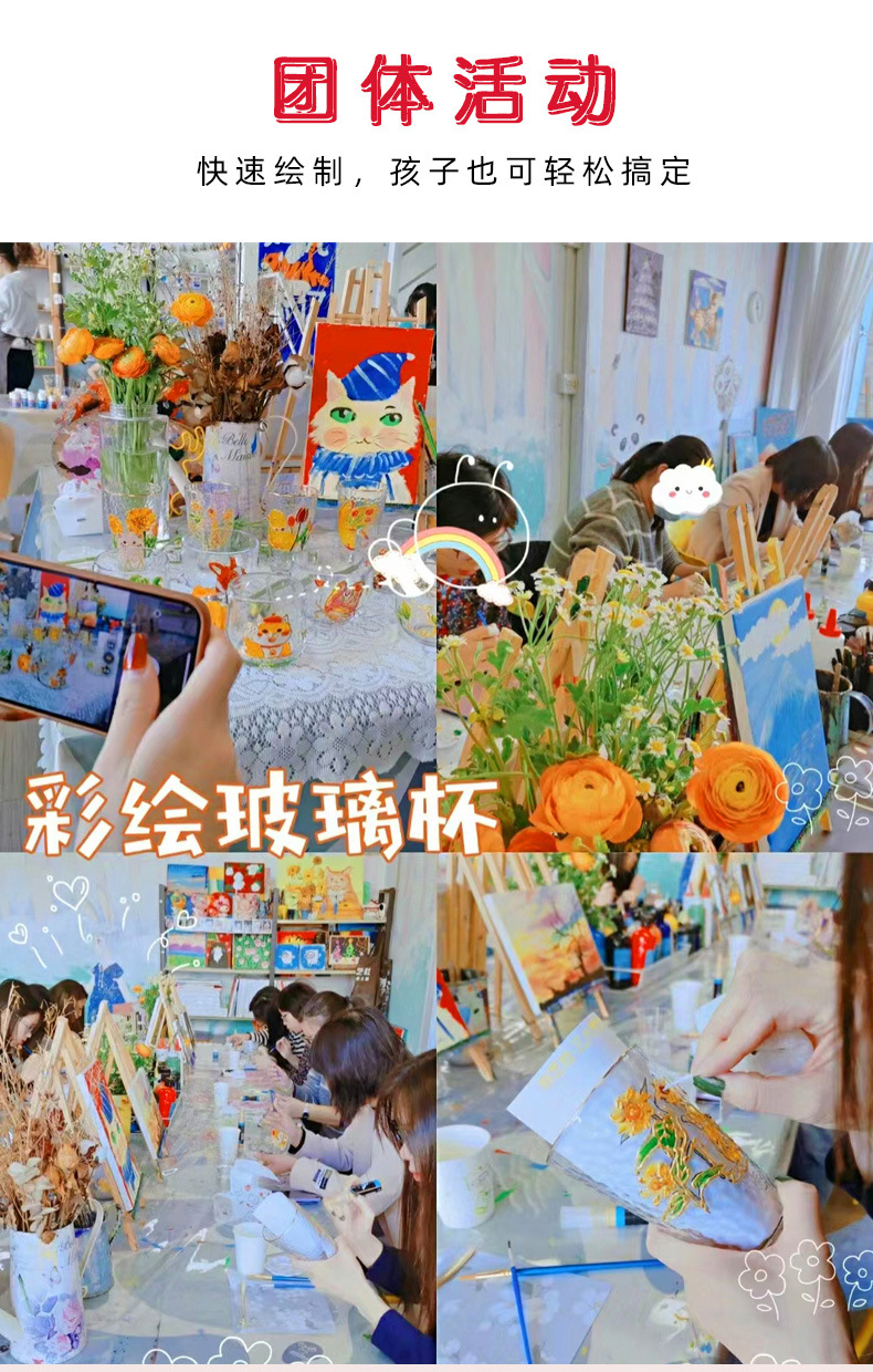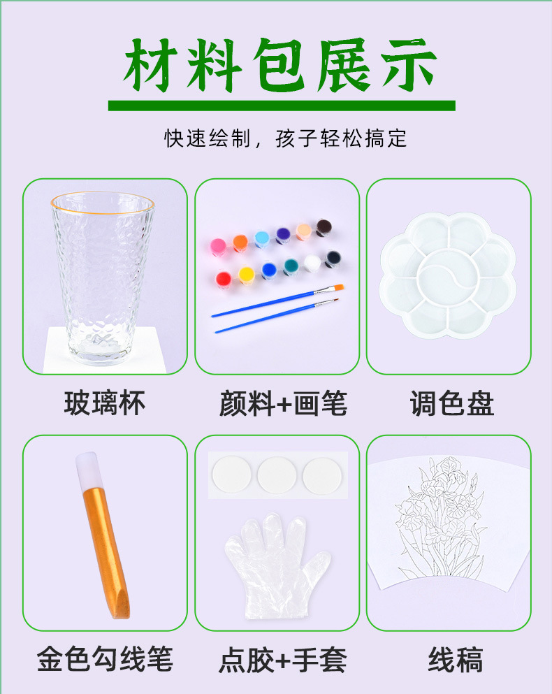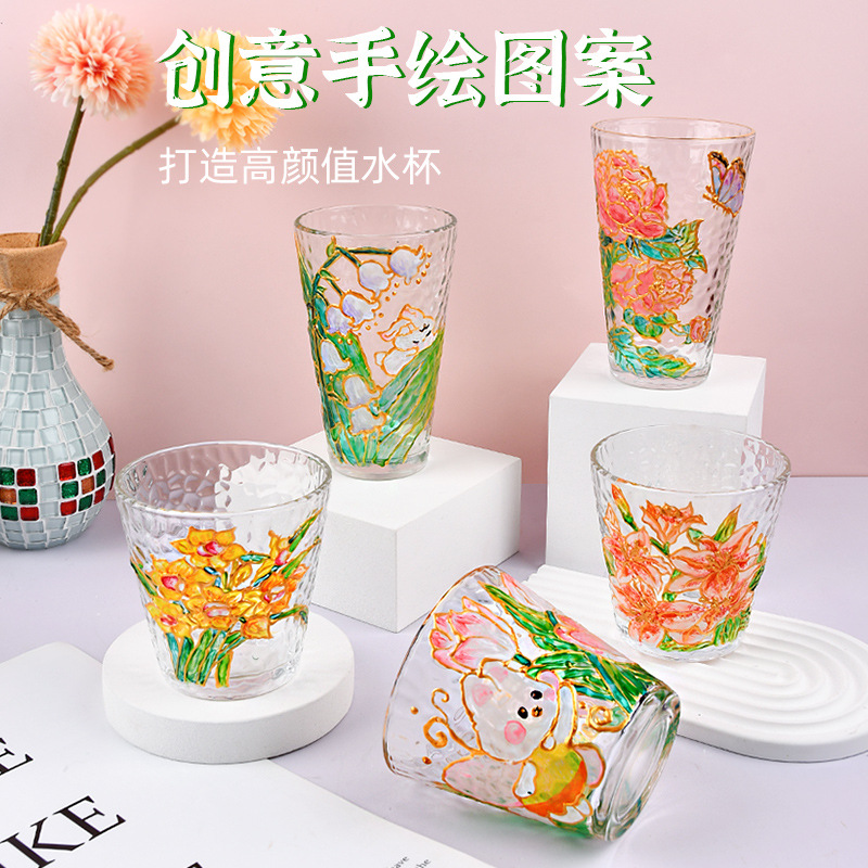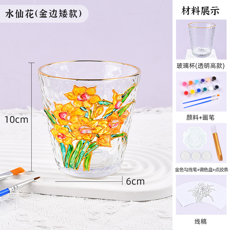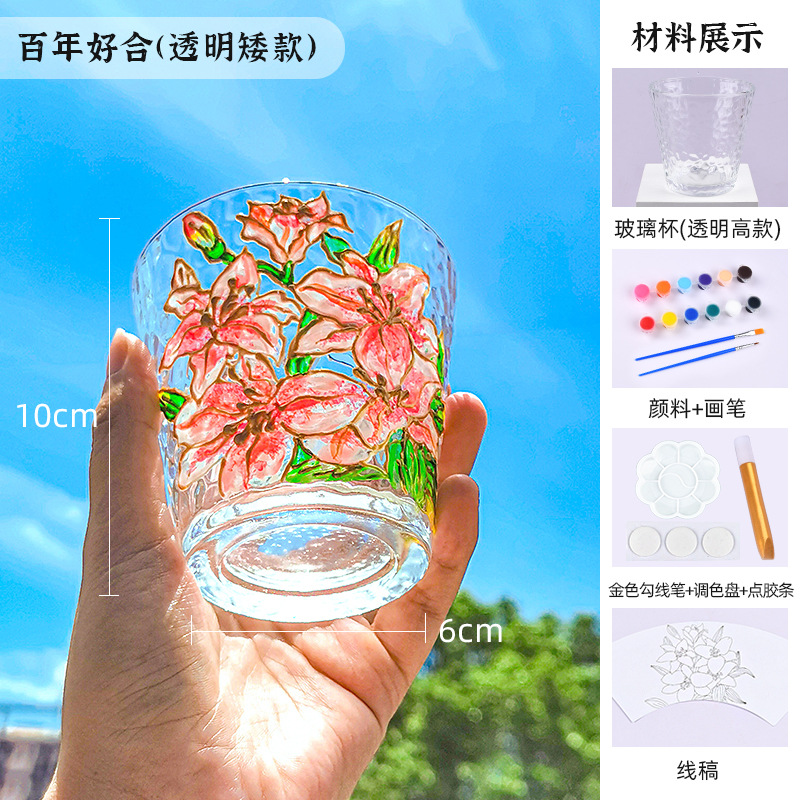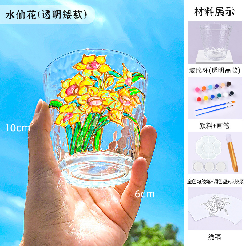 国庆节手绘玻璃杯diy填色暖场手工彩绘材料包创意金边锤纹装饰
