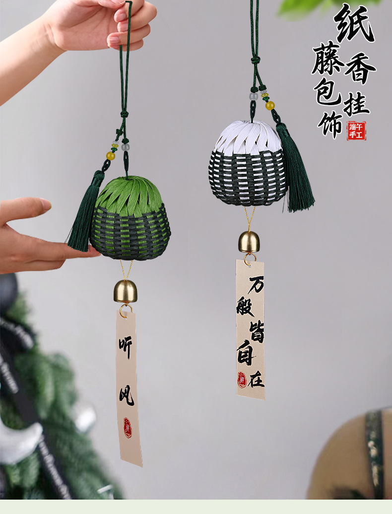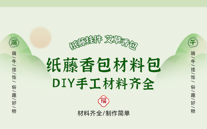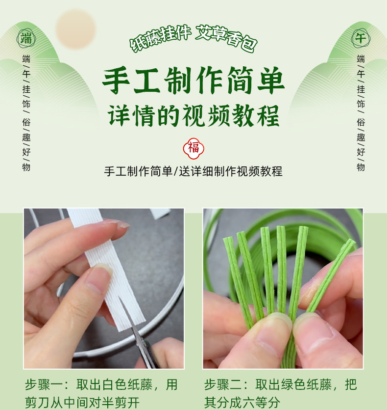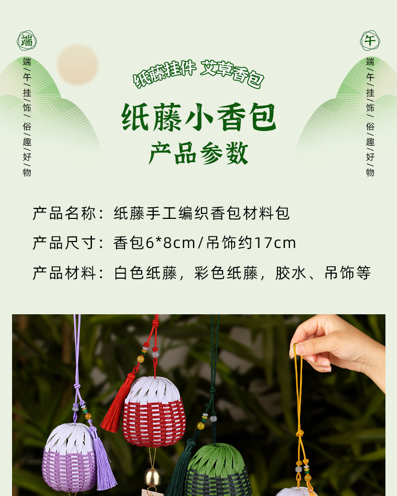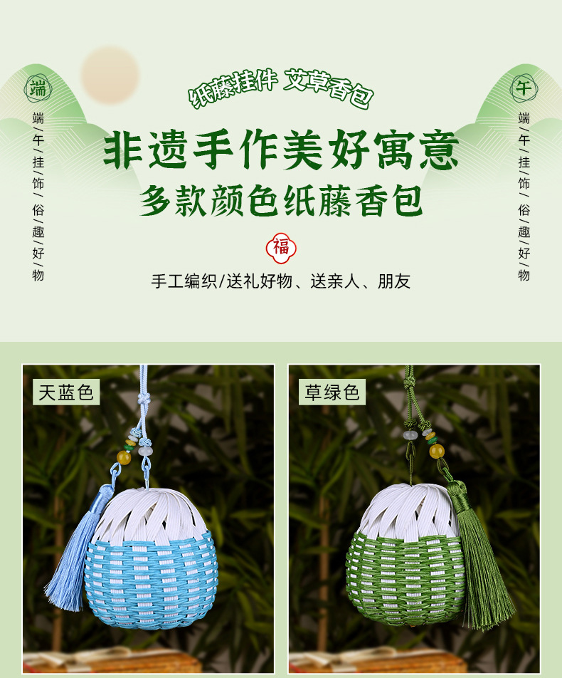 端午节手工diy藤编艾草香包香囊宽纸藤编织材料包中国风挂饰活动