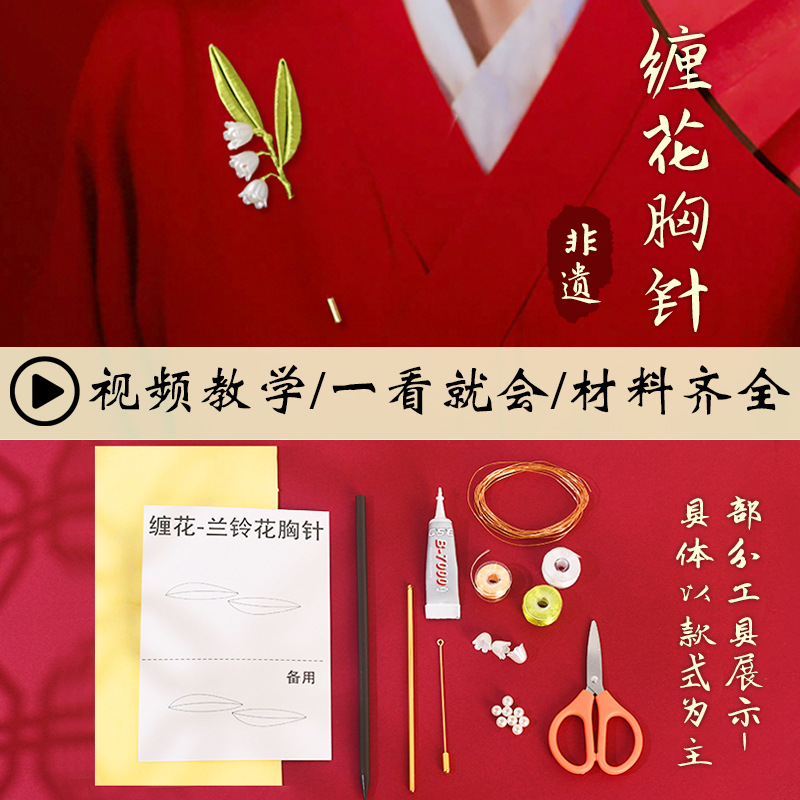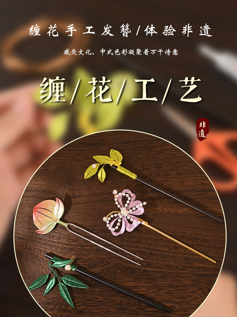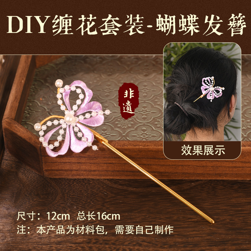 中秋节缠花diy套装入门初学者材料包丝绒线发簪教程手工古风胸针