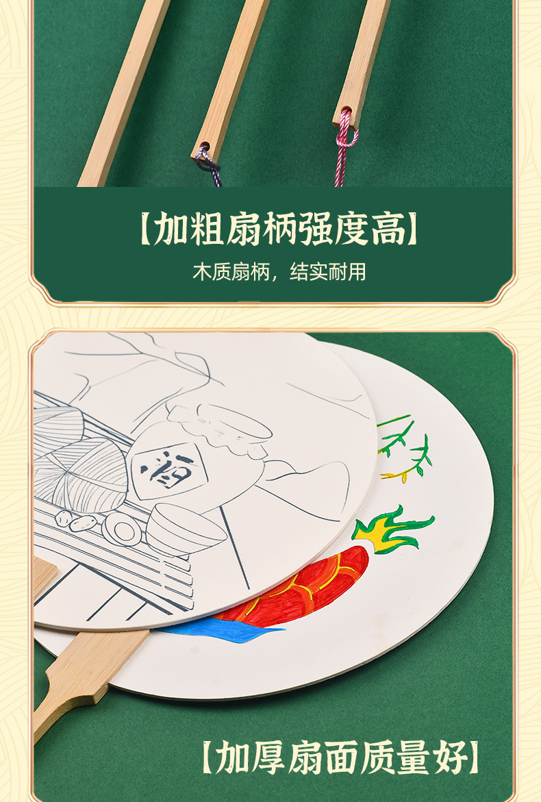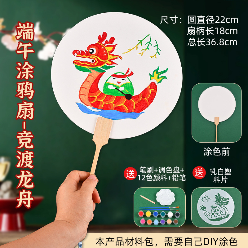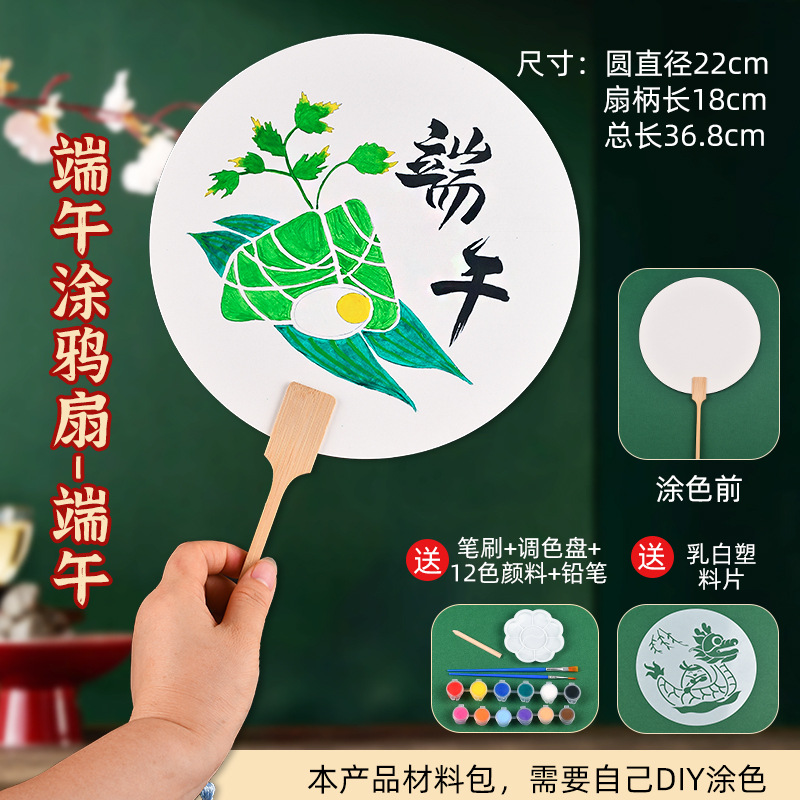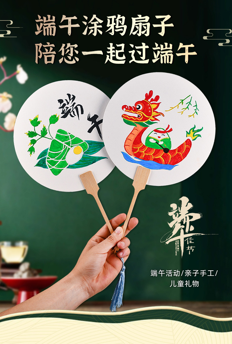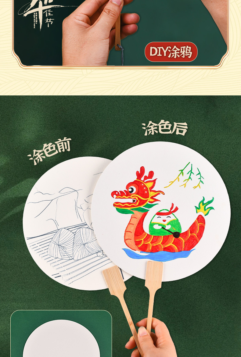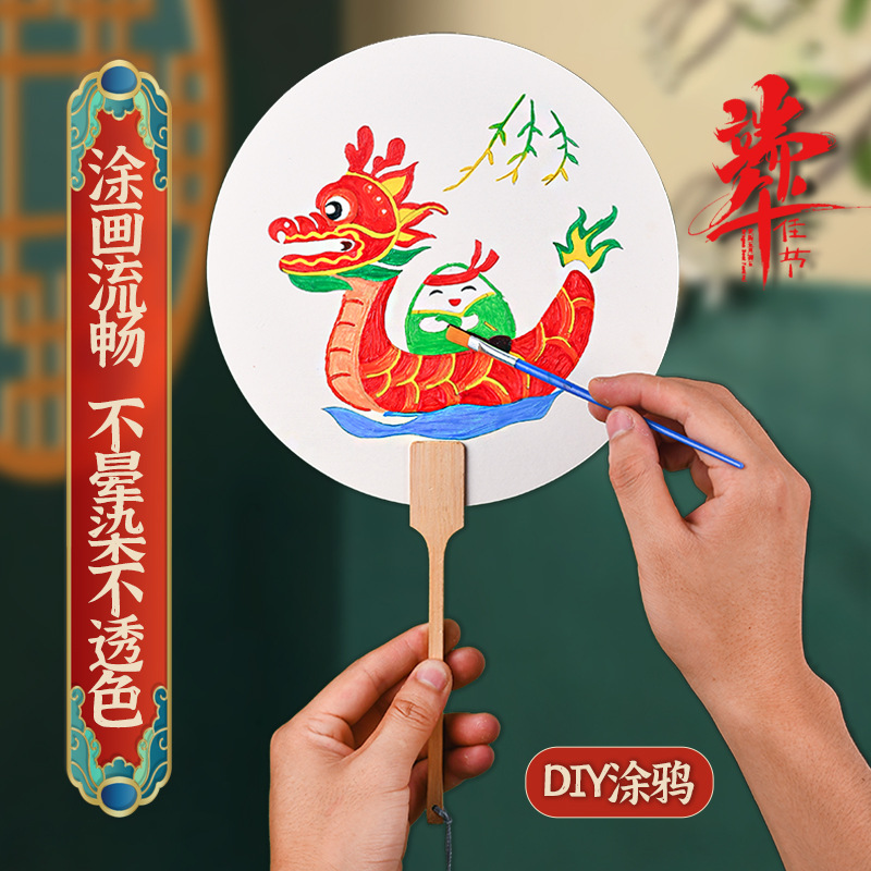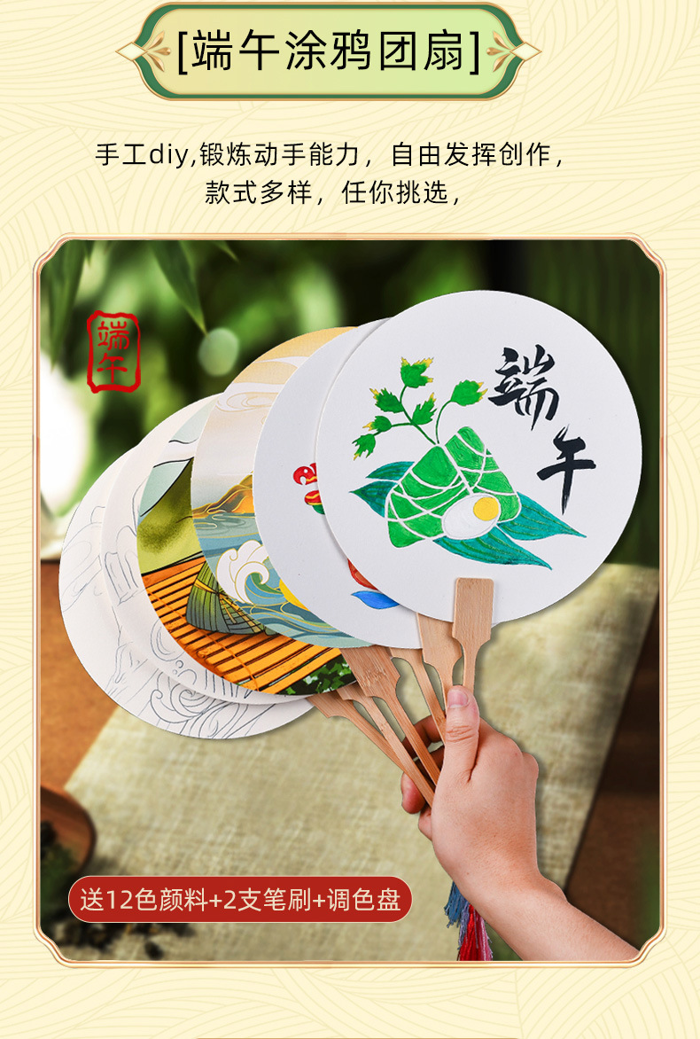 端午节手工团扇diy儿童美术涂鸦手绘古风扇子幼儿园亲子活动