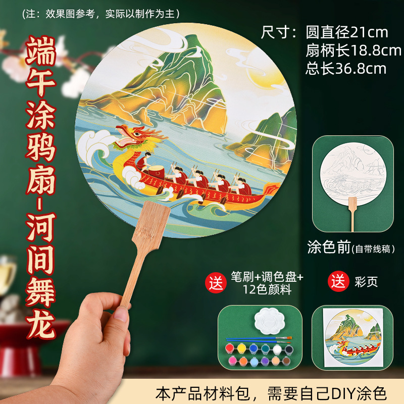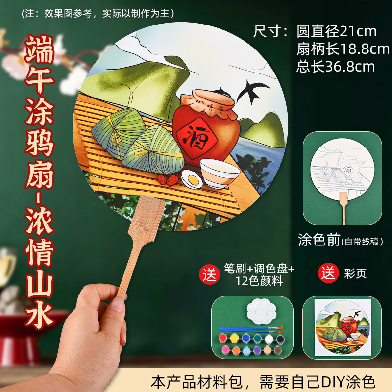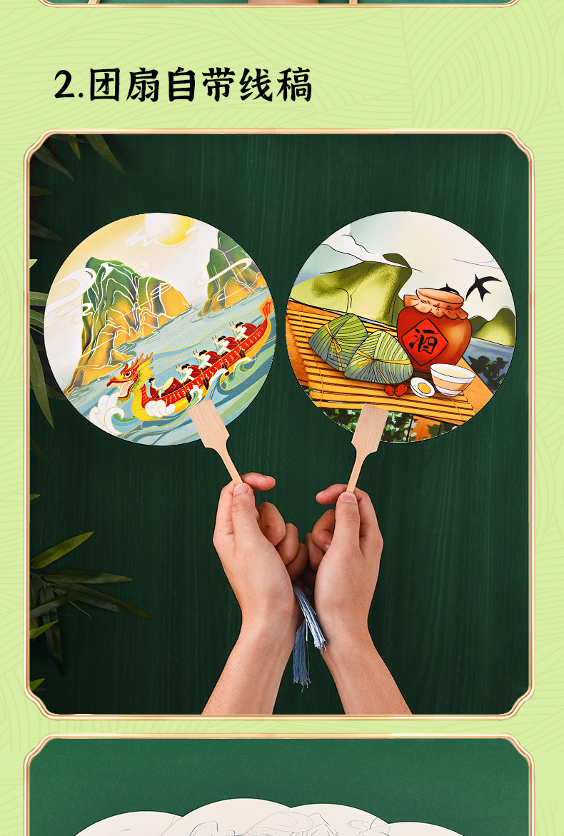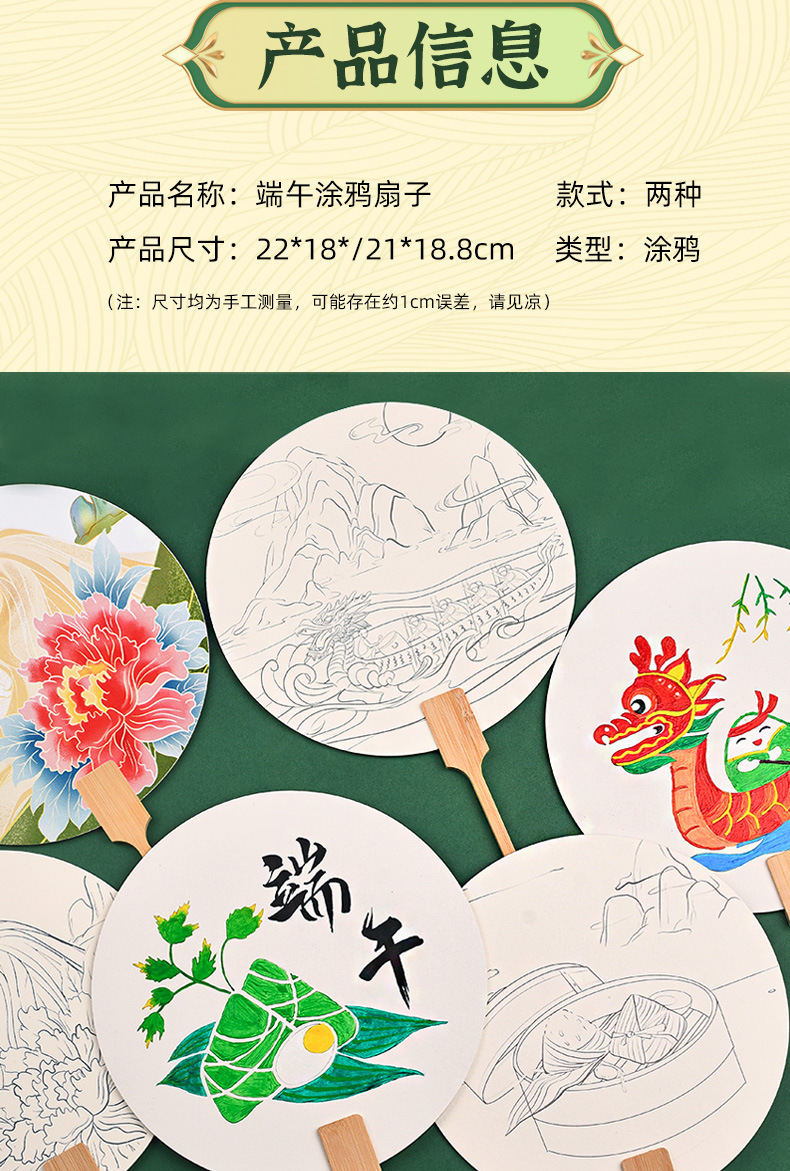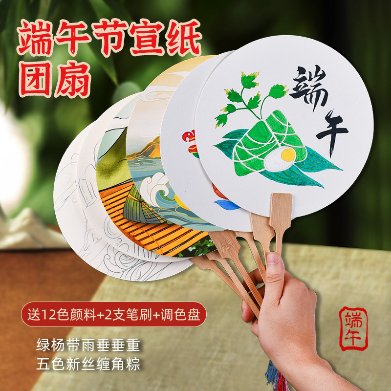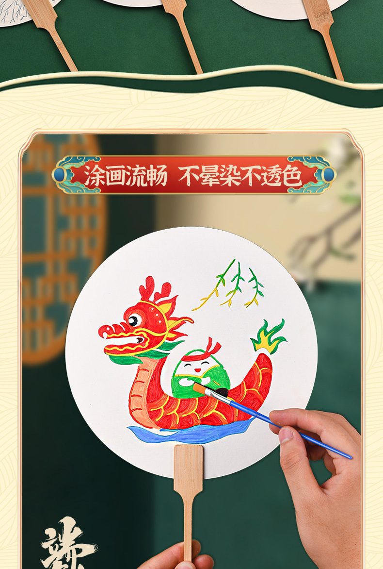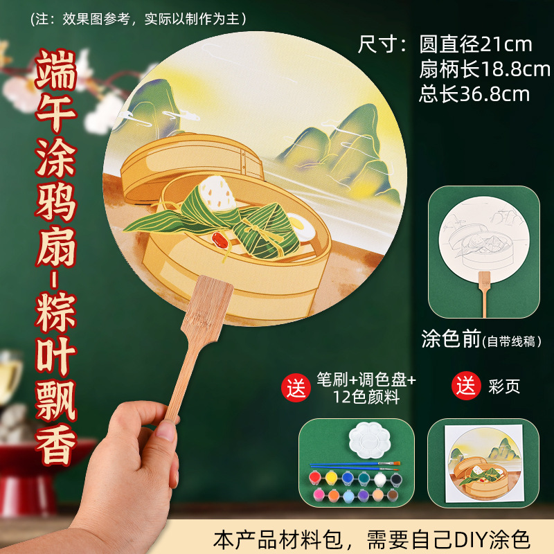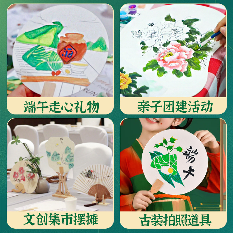 端午节手工团扇diy儿童美术涂鸦手绘古风扇子幼儿园亲子活动