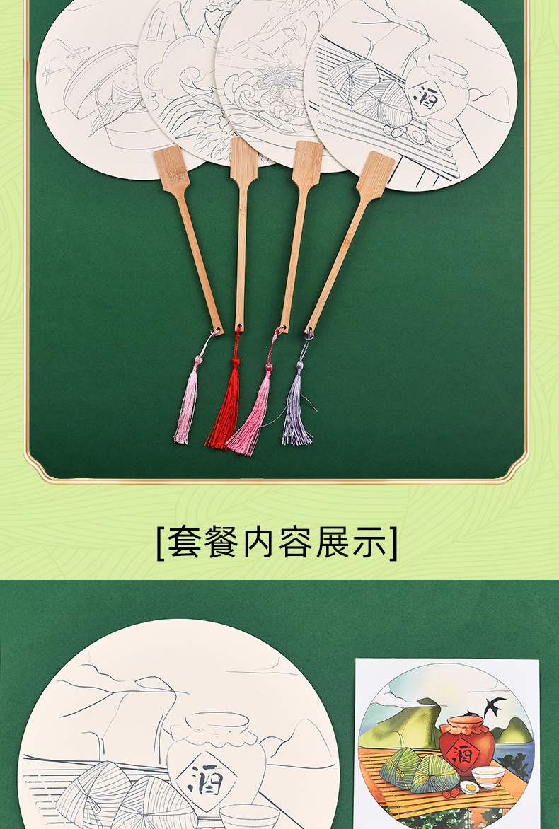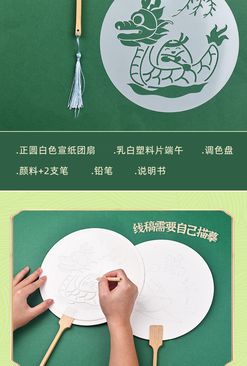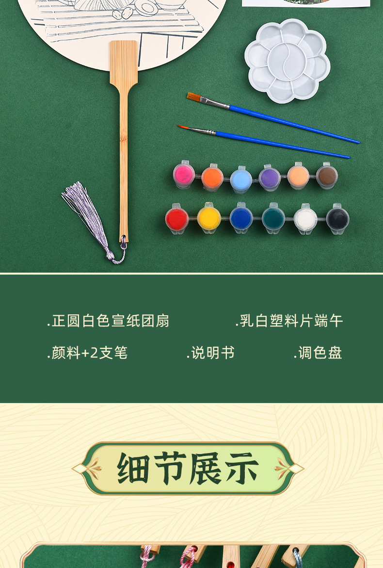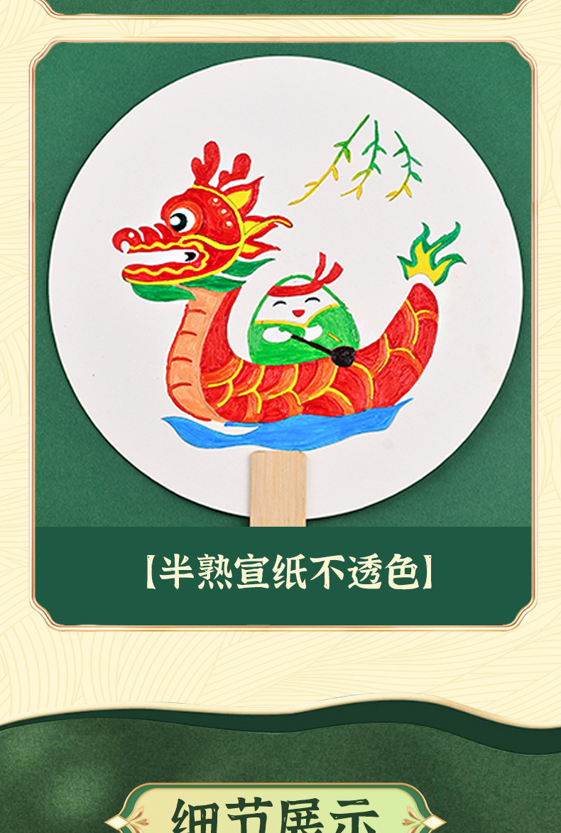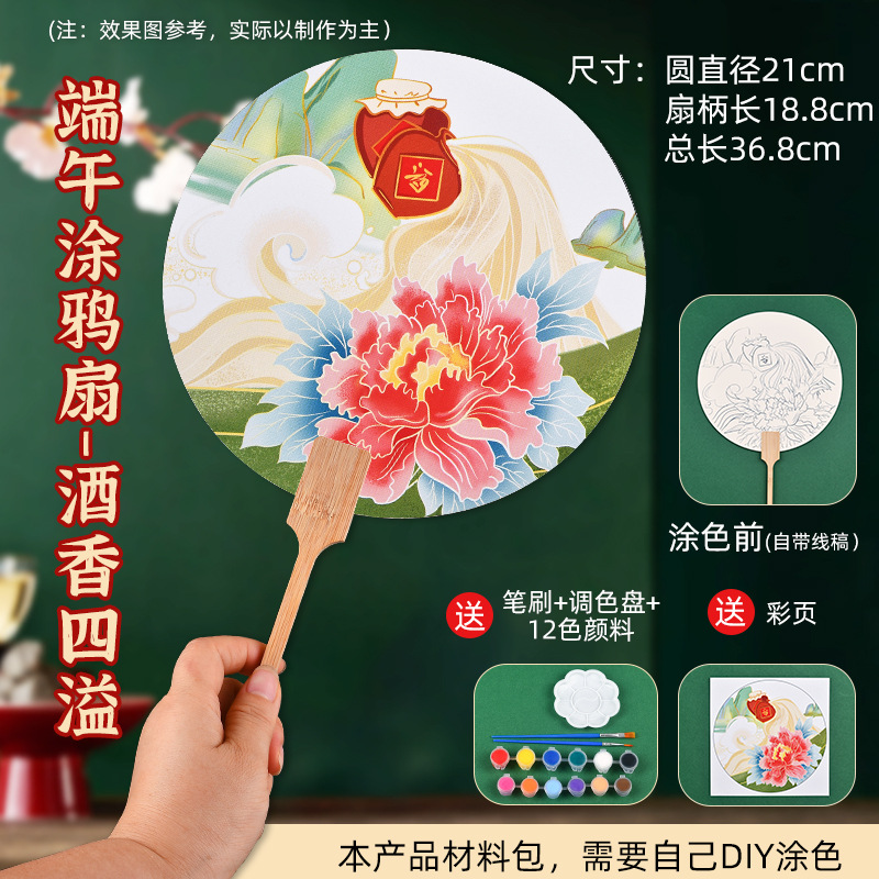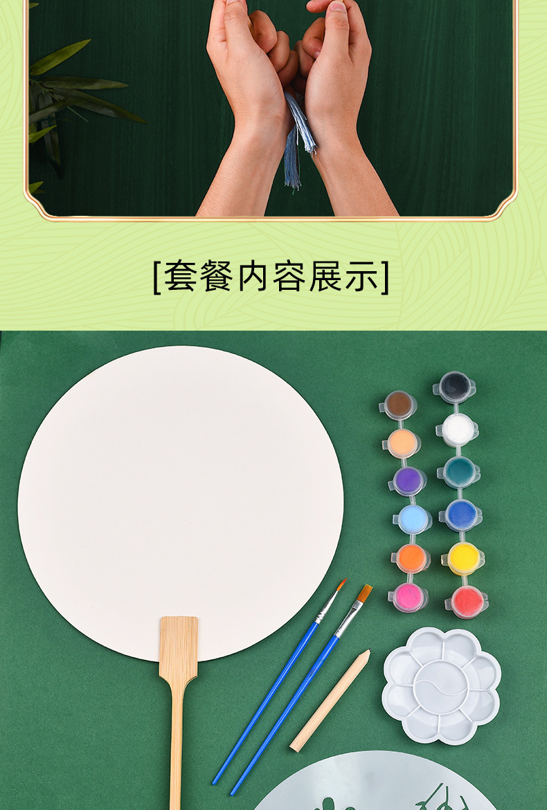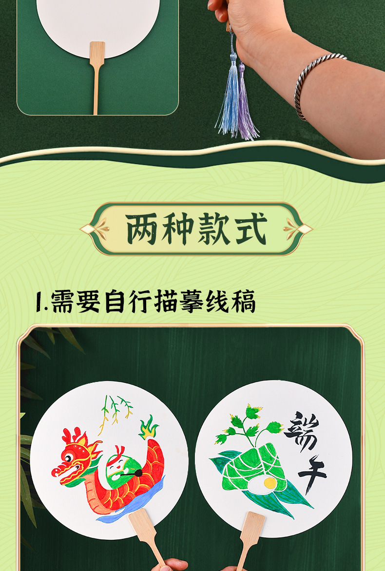 端午节手工团扇diy儿童美术涂鸦手绘古风扇子幼儿园亲子活动