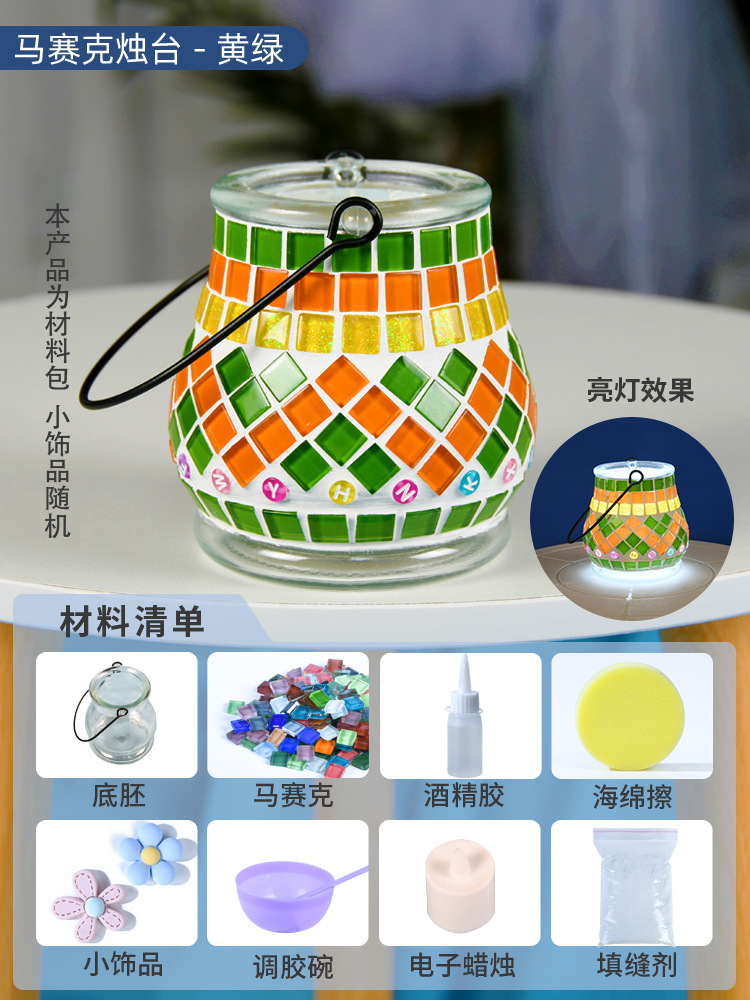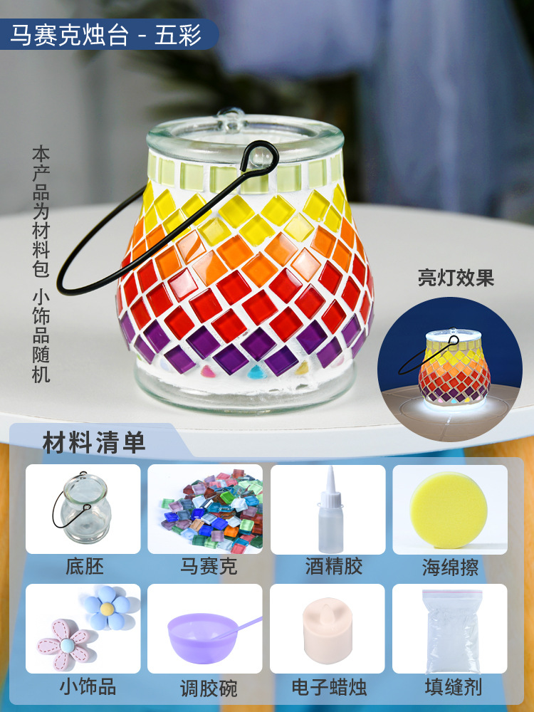 儿童节diy马赛克烛台玻璃杯材料包饰品手工制作幼儿礼物亲子活动