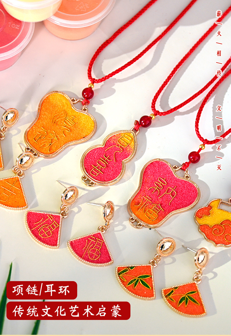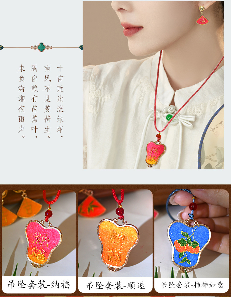中秋节掐丝珐琅diy项链材料包新中式手工景泰蓝吊坠沙龙团建活动