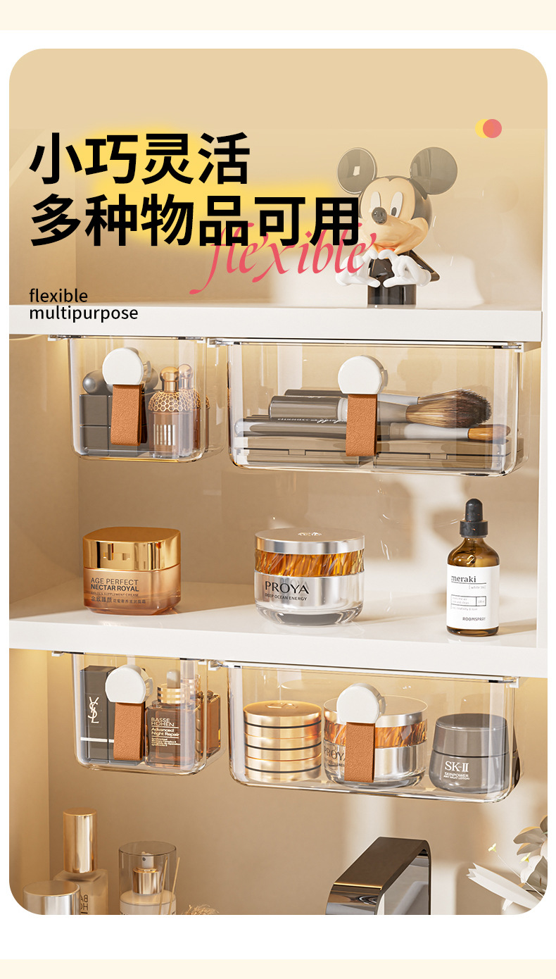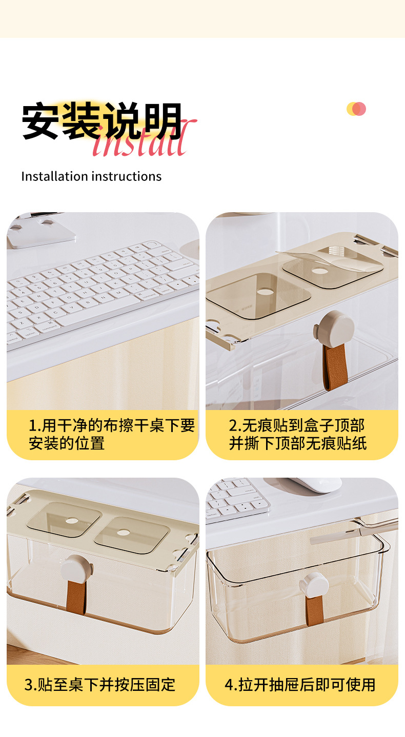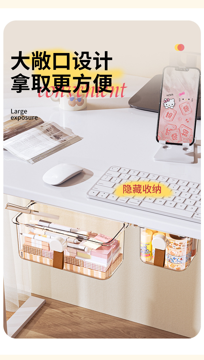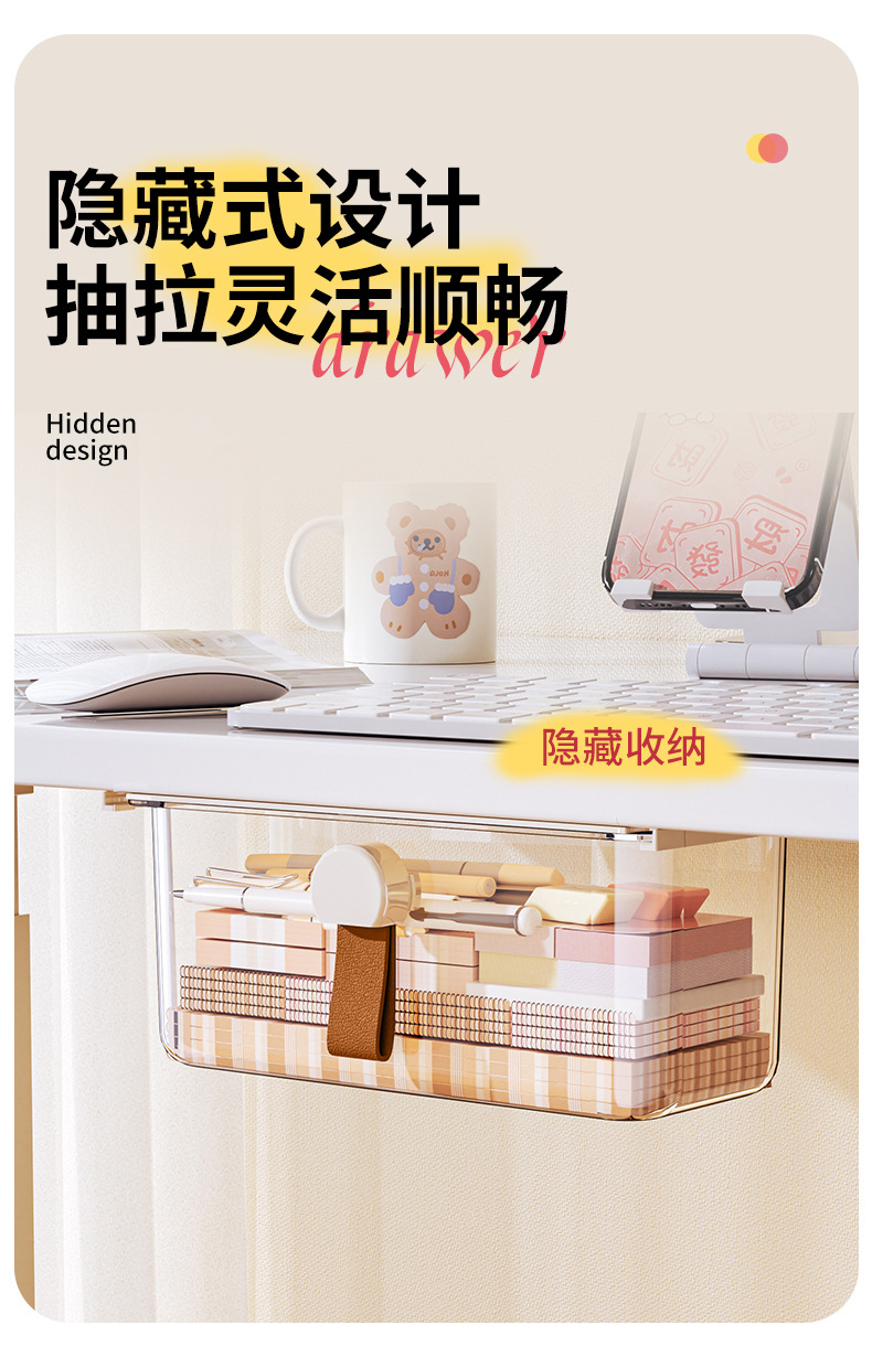 桌下隐形抽屉式收纳盒书桌文具桌面办公室工位整理置物架隐藏神器