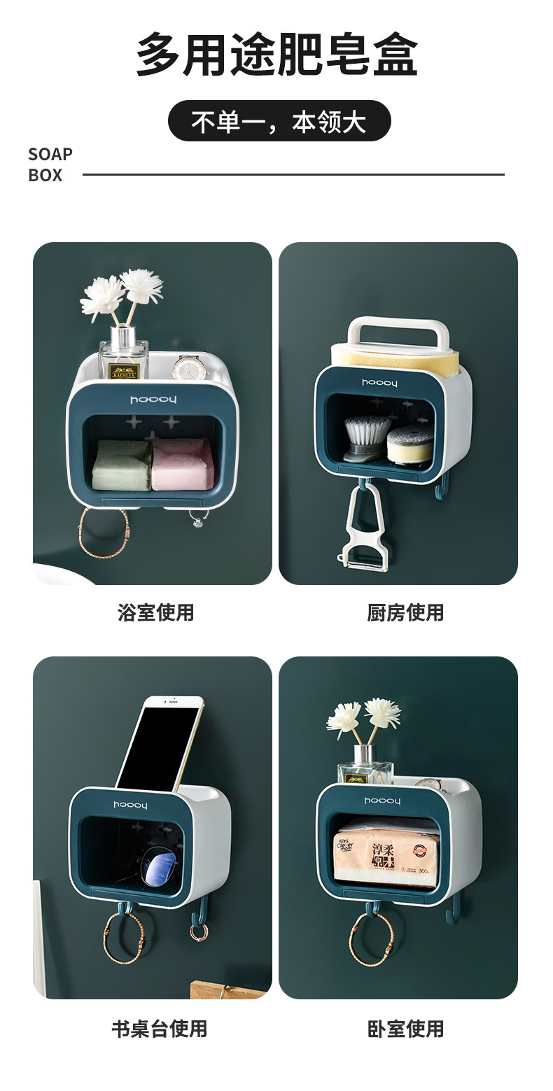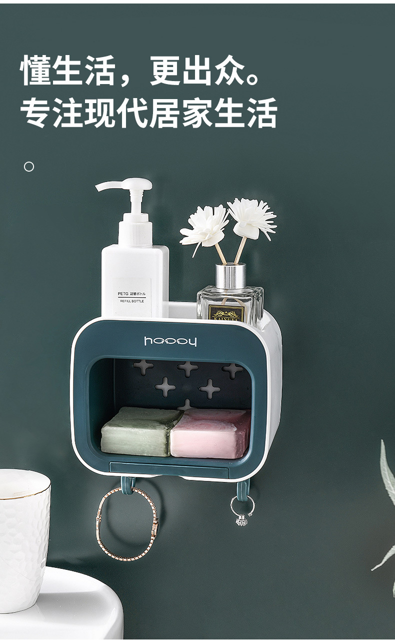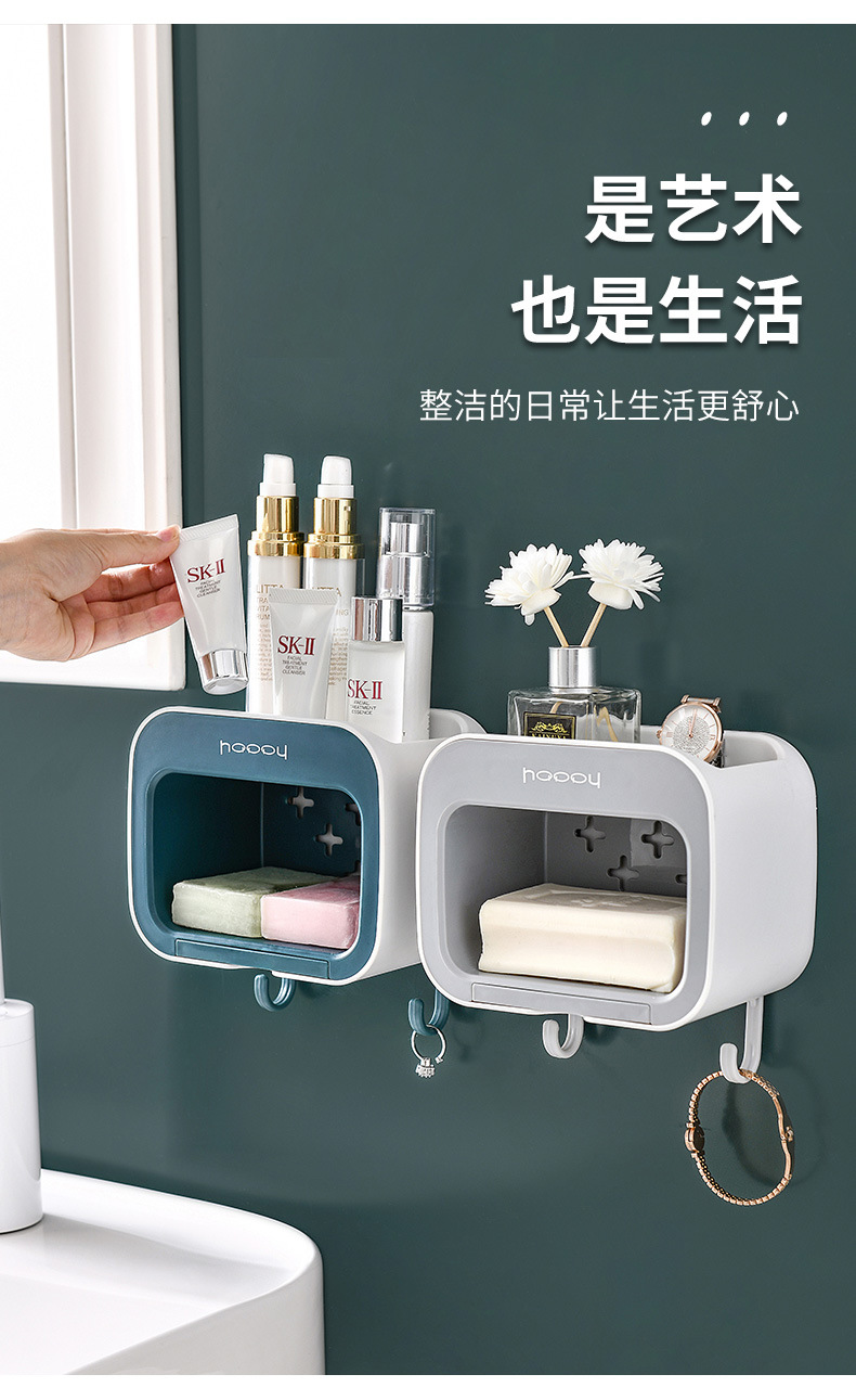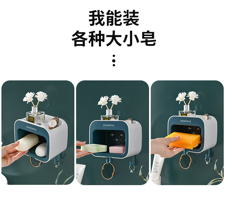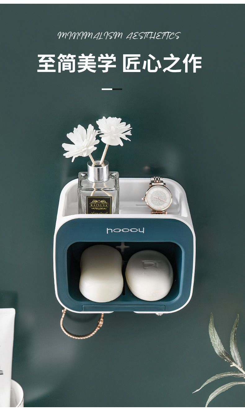 免打孔肥皂盒壁挂式带盖皂盒可沥水浴室置物架家用卫生间收纳架子