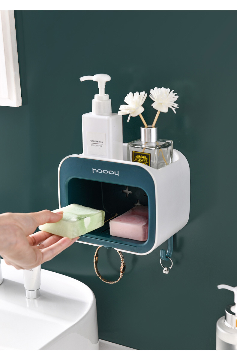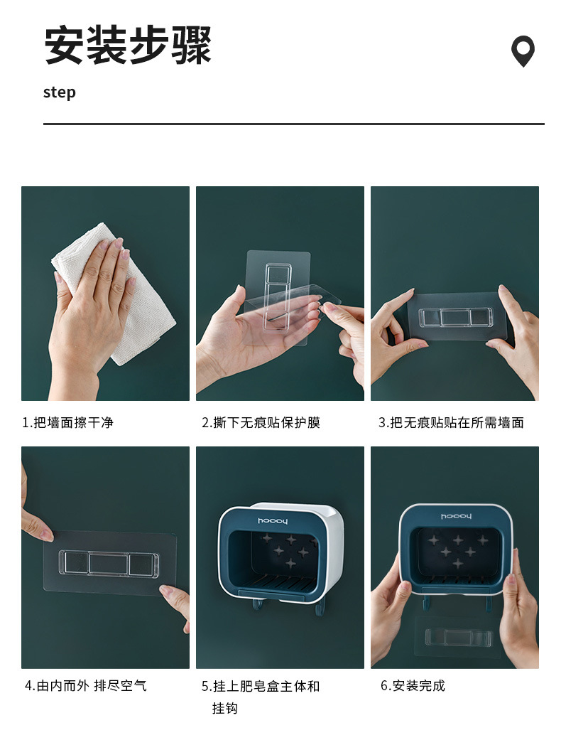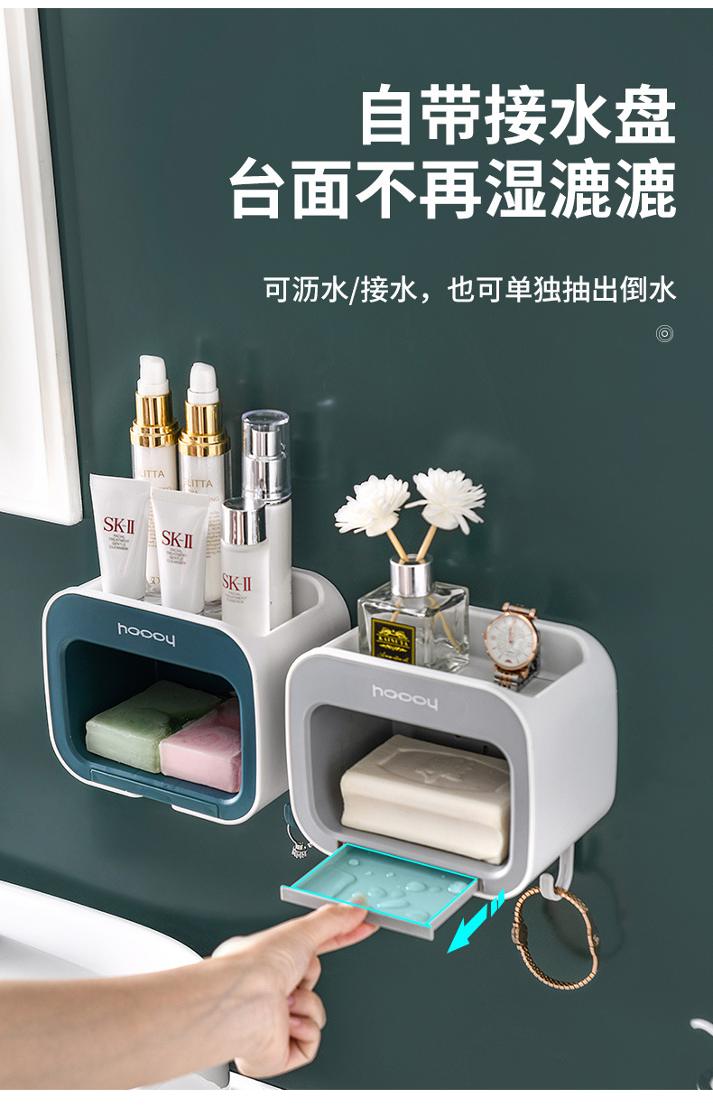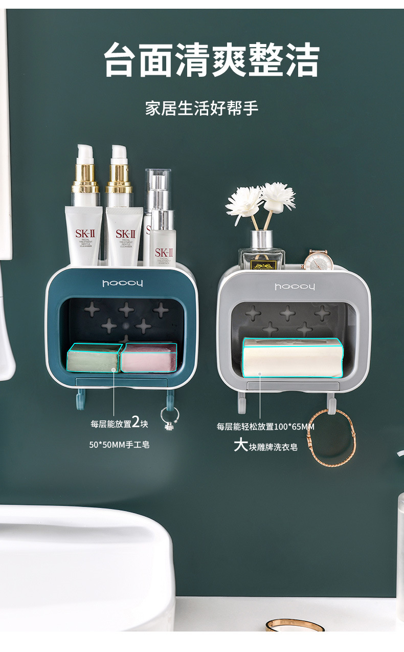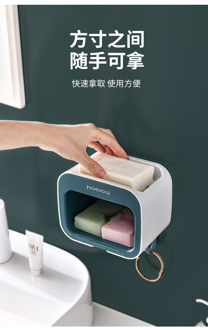 免打孔肥皂盒壁挂式带盖皂盒可沥水浴室置物架家用卫生间收纳架子