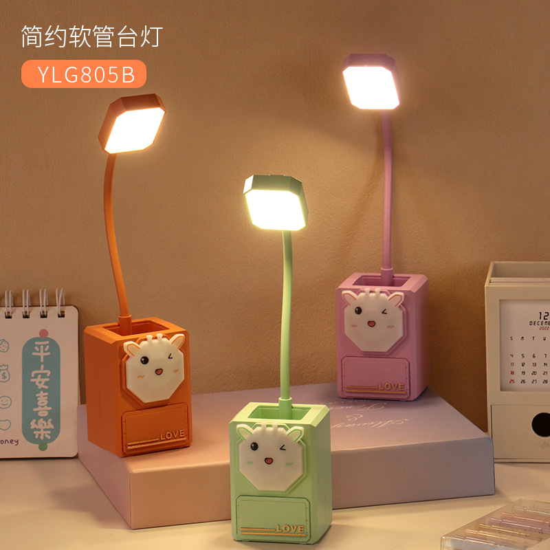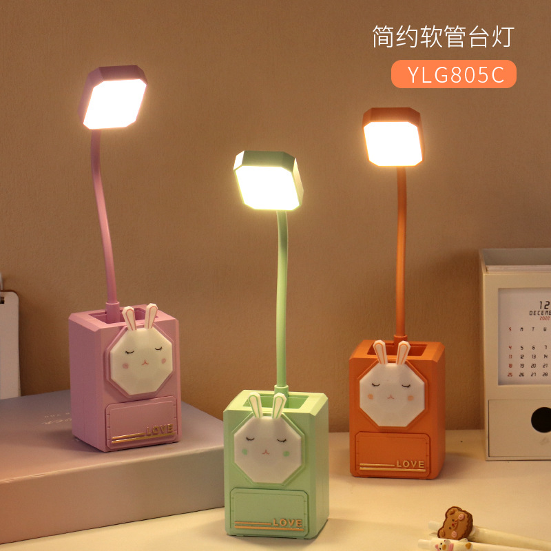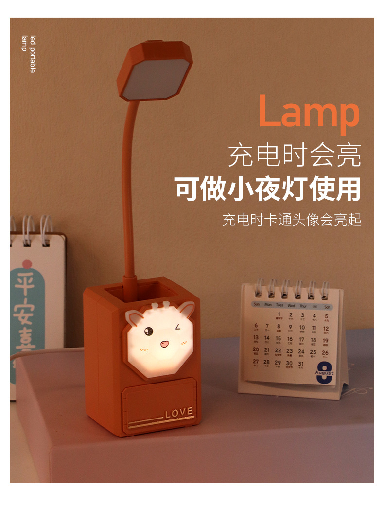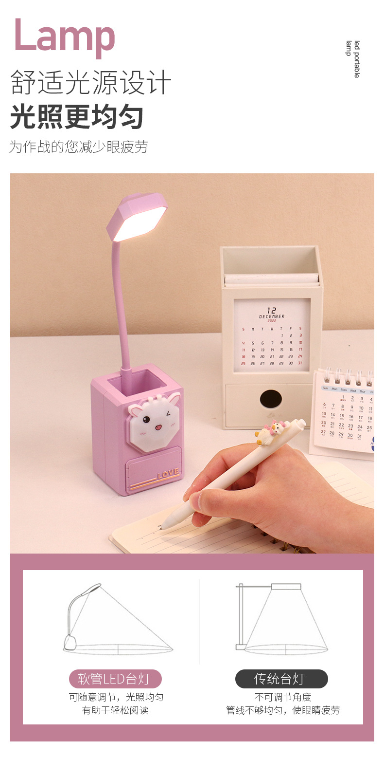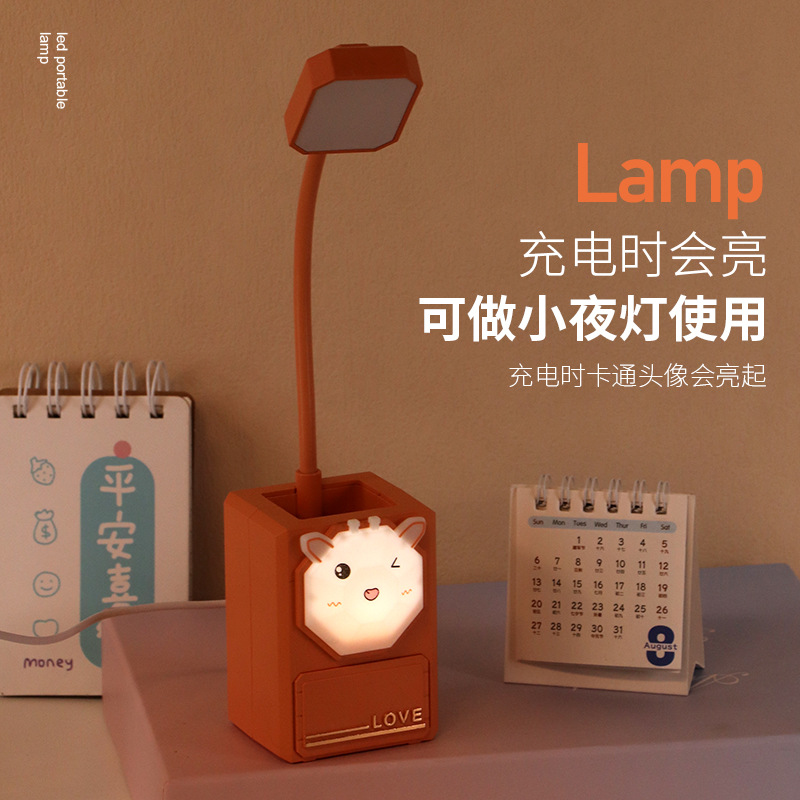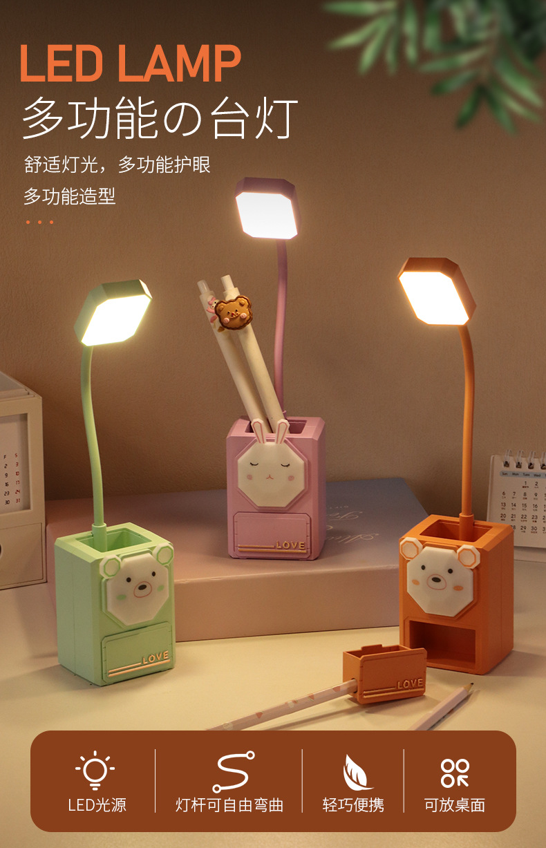 多功能卡通LED护眼小夜灯USB充电台灯学生文具小摆件铅笔削小台灯